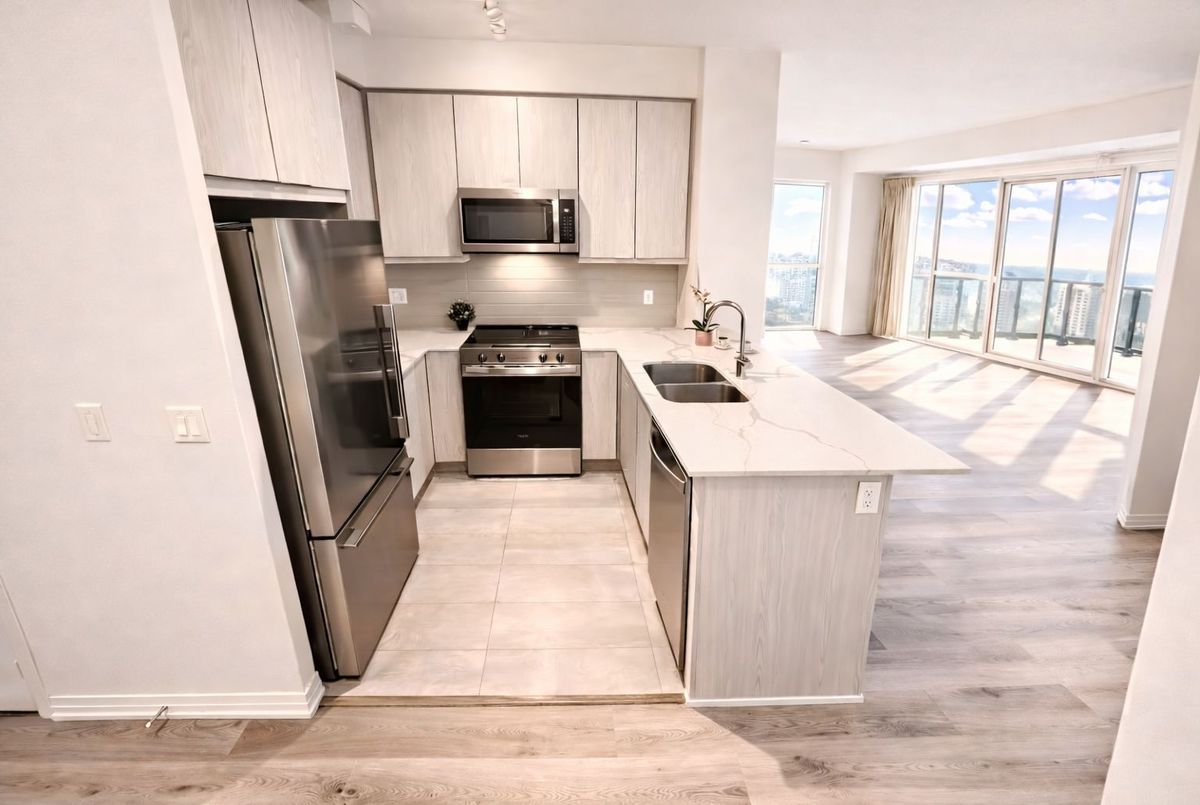 Video@MLS<>Welcome to the Luxury Gemma Condo (2026) by Pinnacle<>29th Floor Sunny Bright Amazing Corner Unit 2 Split Bedrooms with 2 Bathrooms<>Vacant Unit, Move in NOW<>South West Beautiful Lake and Green View, 900 Sqft + Balcony 81 Sqft, Hotel Style Design<>1 Parking included<>Free Hi-Speed Internet Included (Value Around $80/Month)<>Laminate Floor Thru-out<>9 Feet Ceiling, Many Windows Floor to Ceiling<>Modern U-Shaped Kitchen with Quartz Counter-top, Ceramic Floor, Backsplash, Hi-Quality S/S Appliances, Double Sink and Large Breakfast Bar<>Quartz Vanity Top in Bathrooms<>Master Bedroom with South View, 3-Pc Bathroom and W/I Closet<>2nd Bedroom with West View, Double Closets and Exclusive 4-Pc Bathroom<>Close to Bus, Plaza, Square One, Go Bus, Sheridan College, Utm, Go Train, Tnt, Walmart, Costco, Hwy 403 & Qew.