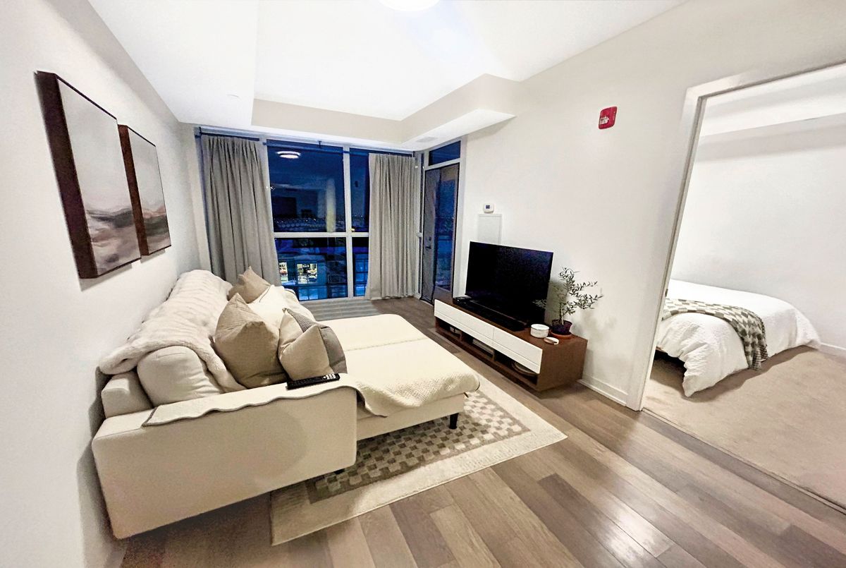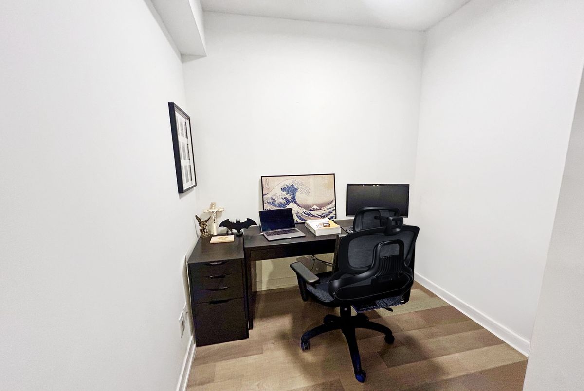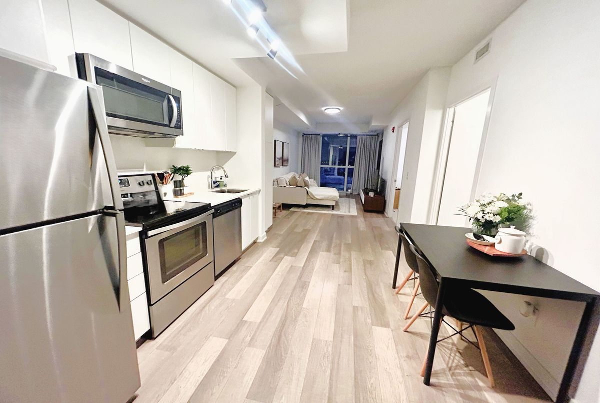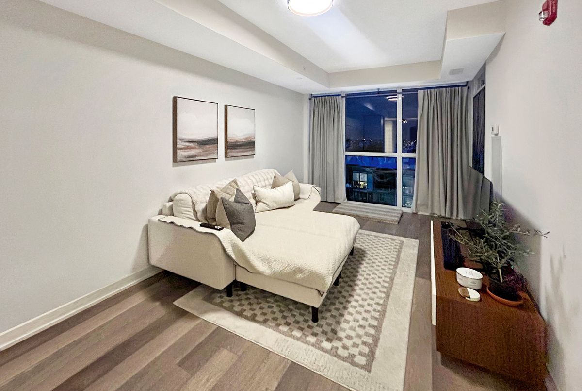 Welcome to the Penthouse top level at Link Condos, with a private balcony overlooking the courtyard and nature/ravine. Ideally situated in Burlington's highly sought-after Orchard community, surrounded by nature and convenience, perfectly blending urban sophistication with natural surroundings. This beautifully appointed 1 Bedroom + Den suite offers refined living in one of the city's most desirable neighbourhoods. Designed with both comfort and style in mind, the unit features 9-foot smooth ceilings, expansive windows that fill the space with natural light, and picturesque views overlooking the landscaped courtyard. The open-concept layout is enhanced by modern laminate flooring and a thoughtfully upgraded kitchen complete with quartz countertops, stainless steel appliances, and upgraded lighting-ideal for both everyday living and entertaining. The queen-sized primary bedroom offers a peaceful retreat with generous closet space, while the versatile den provides the perfect work-from-home office or flexible bonus area. A spacious 4-piece bathroom with linen closet and convenient ensuite laundry add to the home's functional appeal. One owned underground parking space is included, along with visitor parking for guests. Residents of Link Condos enjoy an impressive array of resort-inspired amenities, including a fully equipped fitness centre, sauna, steam room, hot tub, stylish party lounge, bike storage, outdoor terrace, and a beautifully landscaped courtyard with BBQ facilities-creating a lifestyle that balances relaxation and community. Ideally located just steps to the scenic trails of Bronte Creek Provincial Park, and minutes to shopping, schools, dining, and major commuter routes including Highway 407 and Appleby GO Station, this address offers the perfect blend of convenience and tranquility. An exceptional opportunity to enjoy upscale condo living surrounded by green space in Burlington's prestigious Orchard district.