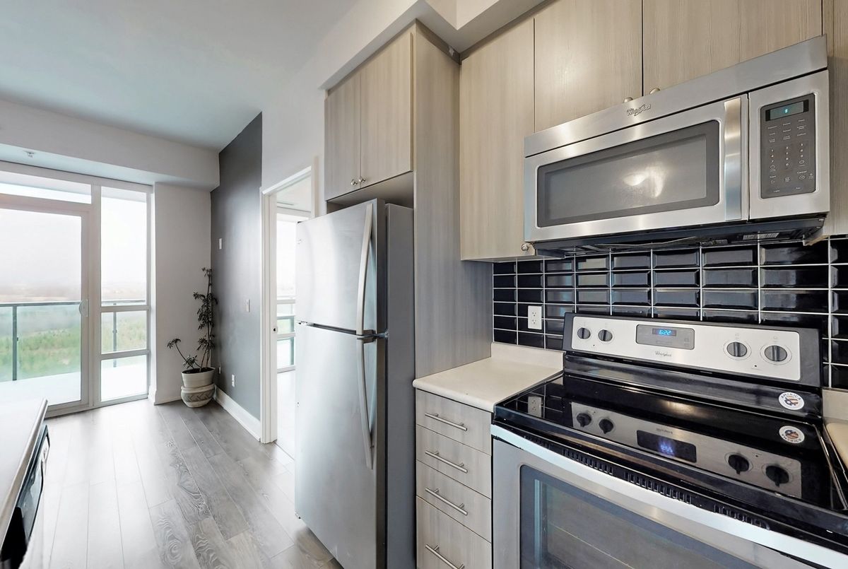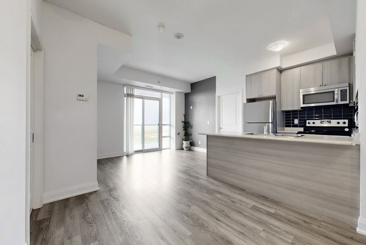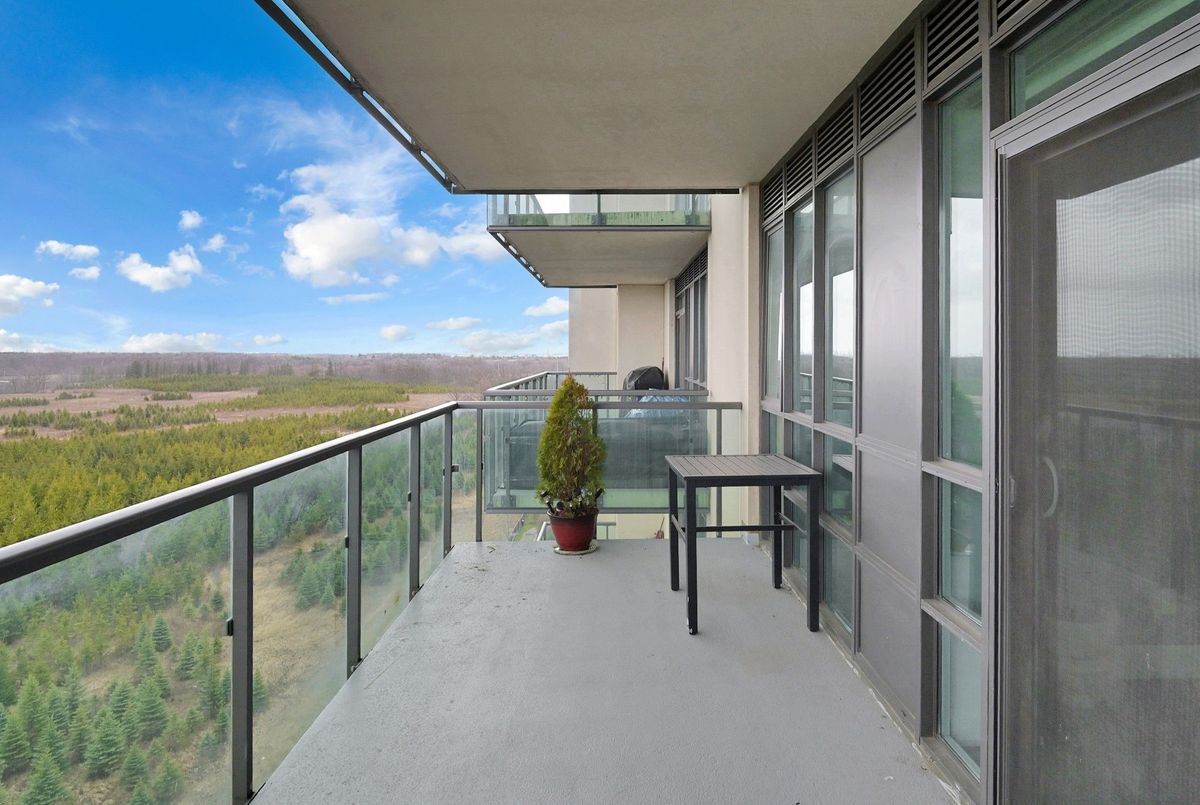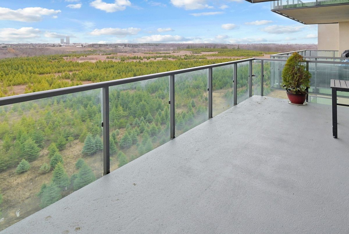 Welcome Home To This Spacious, Modern & Desirable 2 Bedroom, 2 Bathroom suite, Perfect Setting to Sit Back, Enjoy Sunrise in the background of Green Conservation area While Enjoying Your Morning Coffee. This bright, open-concept unit features 9' ceilings, floor-to-ceiling windows, modern finishes, Suite Includes, Stainless Steel Kitchen Appliances, Fridge, Stove, Dishwasher, Microwave, Clothes Washer & Dryer, Laminate Flooring Throughout, Convenient Walk Out To Private Balcony, Do Not Miss The Opportunity To Call This One Home. Enjoy the convenience of an underground parking spot, a storage locker, and access to premium building amenities like a fitness centre, party/meeting rooms, guest suites, and concierge service. Ideally located with quick access to Hwy 407/427, transit, schools, shopping, and Clairville Conservation, this condo blends modern comfort with everyday convenience.