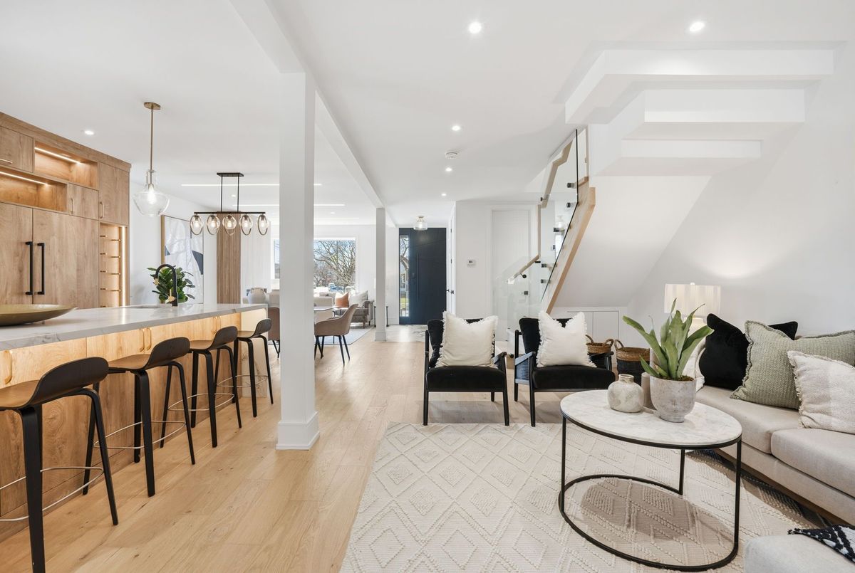 This newly completed top-up blends stunning contemporary design with modern family functionality. Upon entry, the sun-drenched great room makes a striking first impression with high ceilings & oversized windows. Framed by a gorgeous fluted fireplace, you're soon drawn into the heart of the home - the kitchen. Draped in stunning gold accents mixed w/ warm woods, the space is anchored by a magnificent oversized quartz island. Other features include premium appliances, a panelled double fridge/ freezer, wine display, dual sinks, and abundant storage. The kitchen area opens to both the living/dining room and the family room. Whether you're planning to host Christmas dinner by the fireplace, entertain 25 energetic 6-year-olds for a birthday party, or cook dinner and watch a movie, this space is the dream. The large main floor office has seamless access to the garage, side yard, and backyard deck. Drenched in sunshine, it provides an ideal WFH space or study area. Upstairs, the primary suite offers a true sense of retreat, privately set behind elegant, tall doors. Highlights include a generously sized bedroom, a walk-in closet w/ thoughtful custom organizers, and a 5 pc en-suite. The icing on the cake? A walkout to a private deck overlooking the garden for those times when you just need a few moments away from the happy chaos of the main floor! The 2nd, 3rd & 4th bedrooms all have en-suite bathroom access and are generously sized. An upstairs laundry area offers the ultimate in convenience. The basement of the home offers a legal 2-bedroom apartment (including a separate entrance), complete with a laundry room, new kitchen appliances, and a beautifully appointed bathroom. At over 1,000 sq ft, this is the perfect opportunity for rental income or the ideal home for grandparents downsizing and looking to stay close to family. This is the perfect family home located in a wonderful and welcoming community.