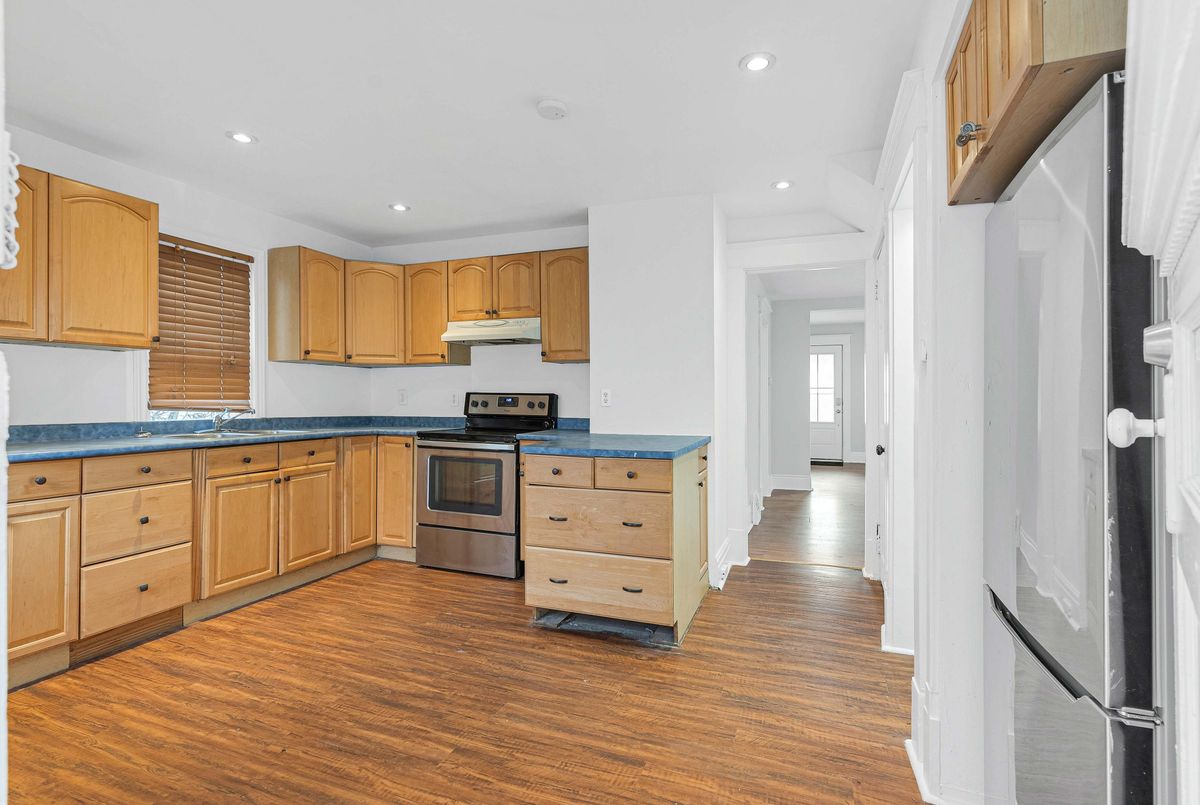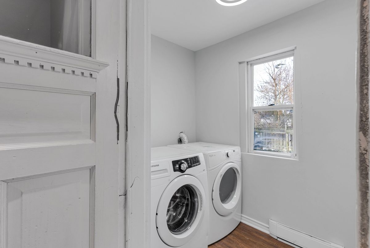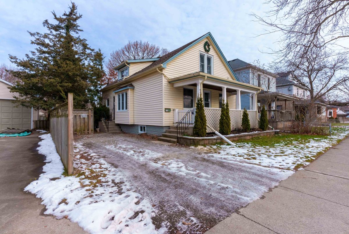 Perfect starter home or investment ! Second floor currently rented to single lady for 1155/ month . Main floor is vacant! Perfect opportunity for first time home buyers to help with mortgage payments, or for investors. In-law Suite with separate/exterior entrance. 2 Bedroom main floor features an eat-in kitchen, spacious and bright living/dining room and a 4pc bathroom, hardwood floors, character trim and laundry facilities off kitchen in enclosed back porch. Upper level features 2 bedrooms (one with stacking laundry), 3 pc bath, open living room/kitchen area. Unfinished basement with plenty of room for storage. Fenced in yard with patio area. Main floor freshy painted. Central air conditioning , forced air gas heat. Large fenced backyard with shed. New roof 2020. Centrally located in the heart of St. Catharines, minutes away from QEW access, bus routes, shopping, and entertaining/dining. **EXTRAS** 2 fridges, 2 stoves, washer and dryer, stickable washer and dryer