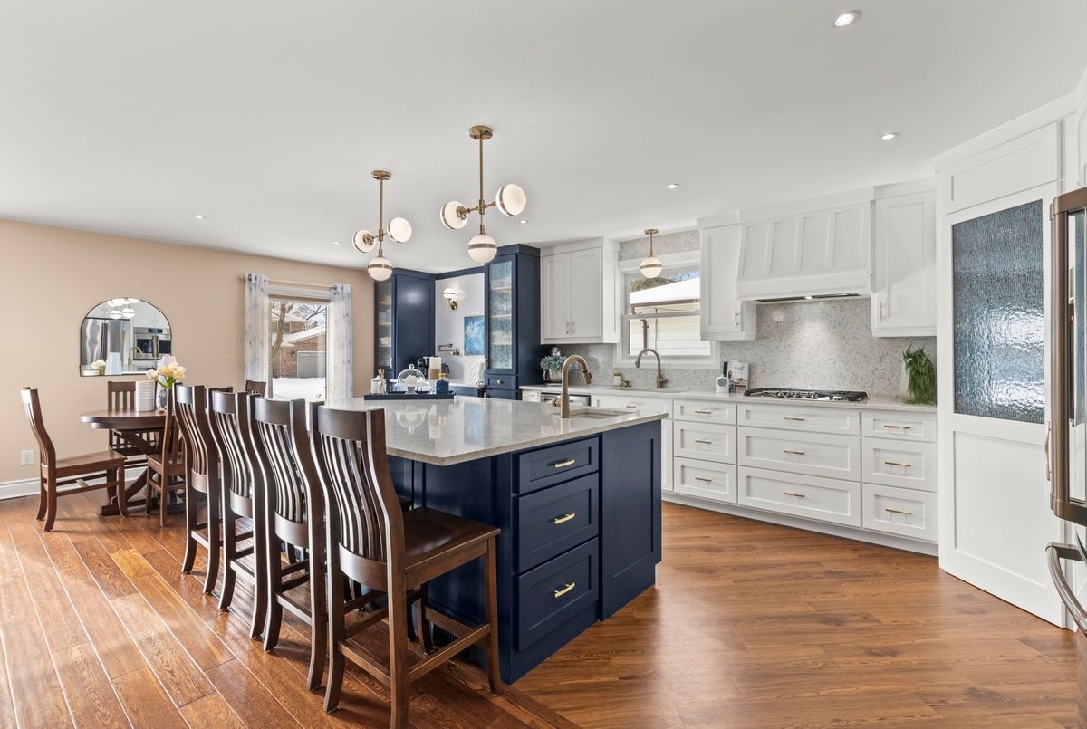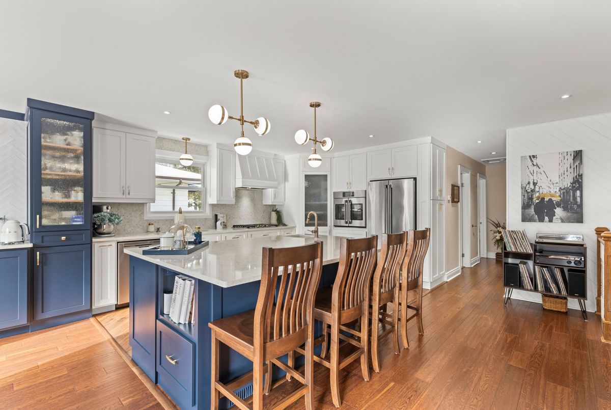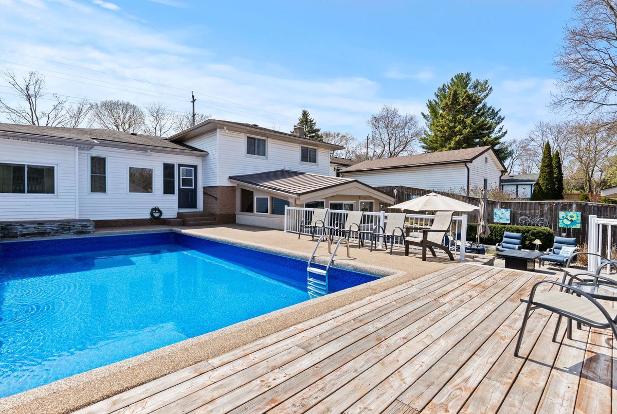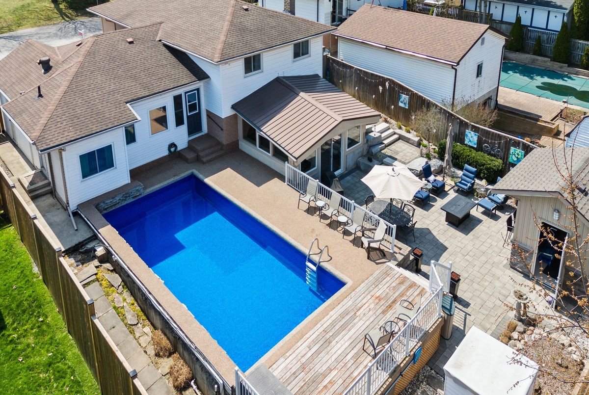 Prepare to be impressed - this is not your average home! The stucco exterior, double concrete driveway and attached garage set the stage for what you're about to see inside! Entering the home, a grand entrance with transom windows, coffered ceilings, and elegant light fixtures welcomes you into this one of a kind home. A standout feature is the main floor bedroom, complete with an en-suite bathroom and direct access to the pool area - perfect for guests, an in-law bedroom or as a private retreat - all without stairs. Moving up to the main level, the custom handcrafted kitchen is what you've always dreamed of! It features quartz countertops and backsplash, a walk-in pantry, dual sinks, a high-end Café line wall oven, a gas cooktop and even a pot filler above the coffee bar. The oversized island offers plenty of seating and also complements the nearby dining area. The kitchen opens to a light filled living area with hardwood floors, recessed lighting, and oversized windows. On this level you'll find two bedrooms (originally three). The primary bedroom was converted into a larger space with a walk in closet. The secondary bedroom is also generously sized and is currently being used as a craft room. A 4 piece bathroom completes this level. It doesn't stop here! The lower level features a grand rec room with heated tiled floors, gas fireplace, and a large walkout addition with patio doors leading to the backyard oasis. This level also includes a full secondary kitchen and a 4th bedroom making it perfect for entertaining multigenerational living. And then there's the incredible backyard - wow! Step outside to the entertainers dream, complete with amour stone walkways, interlocking patios, cabana bar with a power-opening door, built-in outdoor gas fireplace with direct gas line and a heated pool with a stone waterfall. Conveniently located near shops, restaurants, schools, and the 406 highway, this home is a rare find. Come experience it for yourself today!