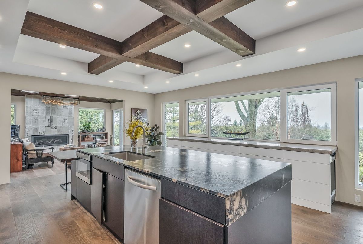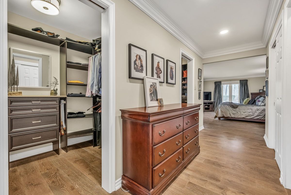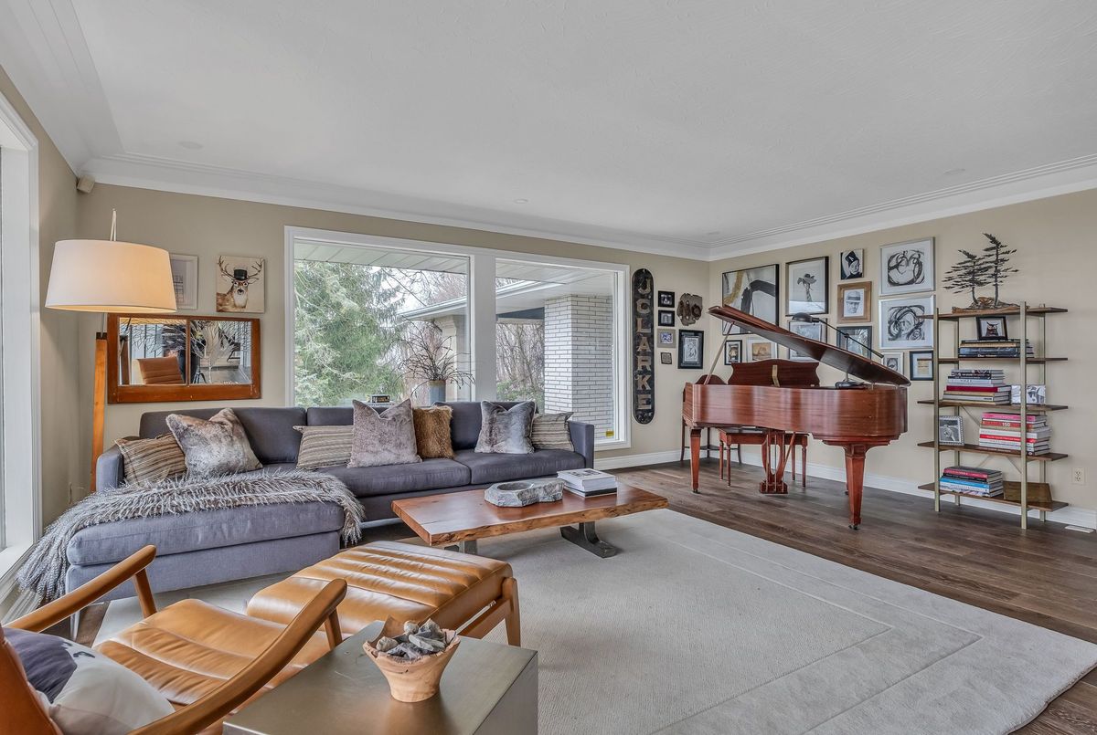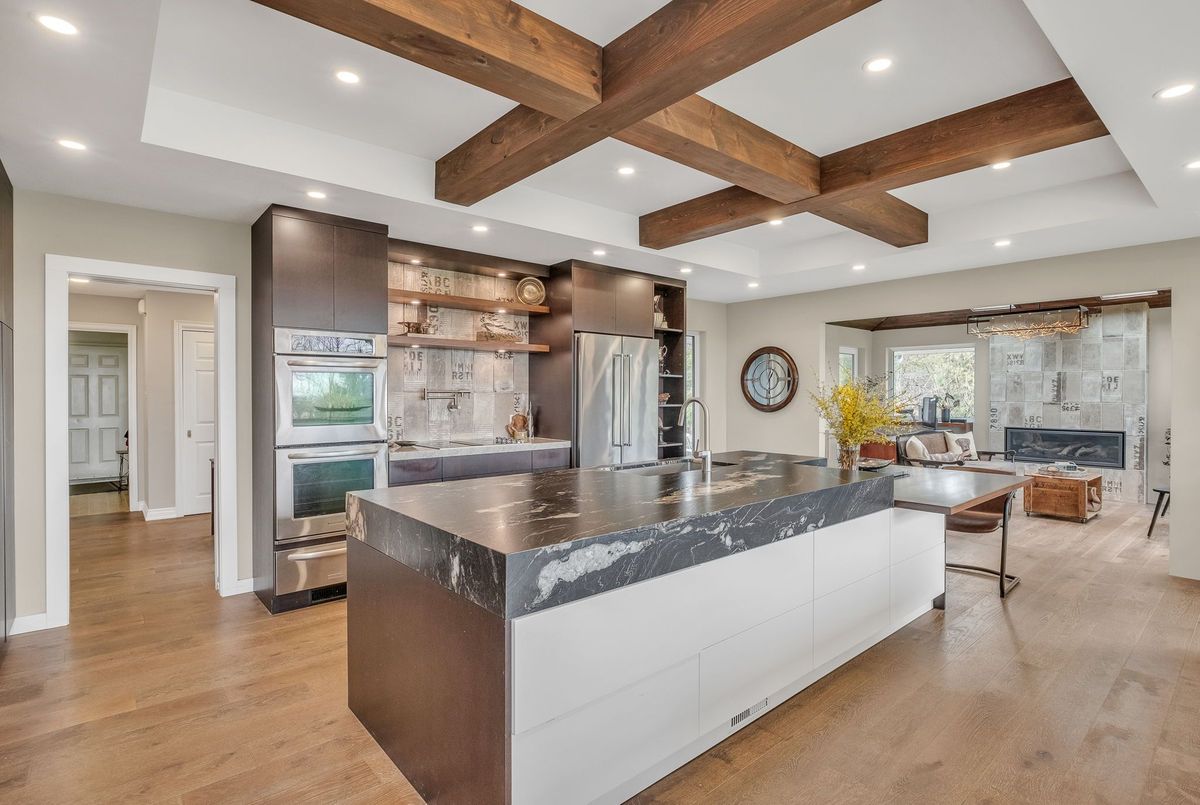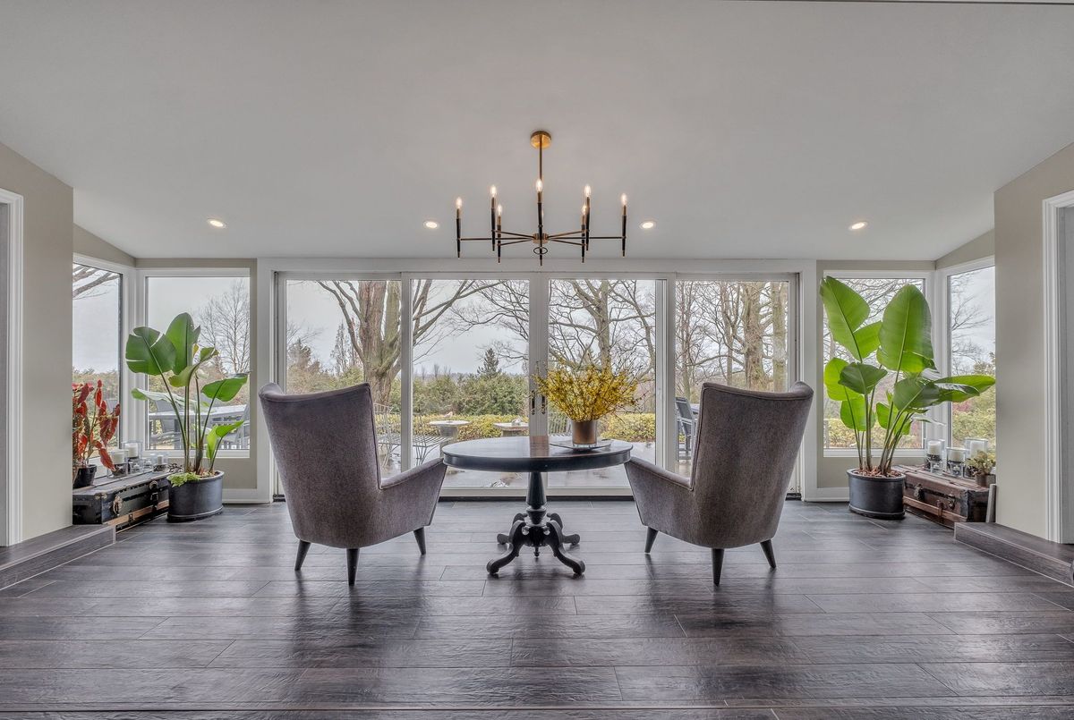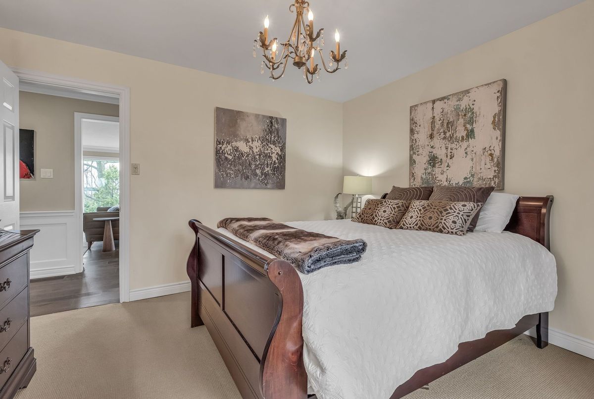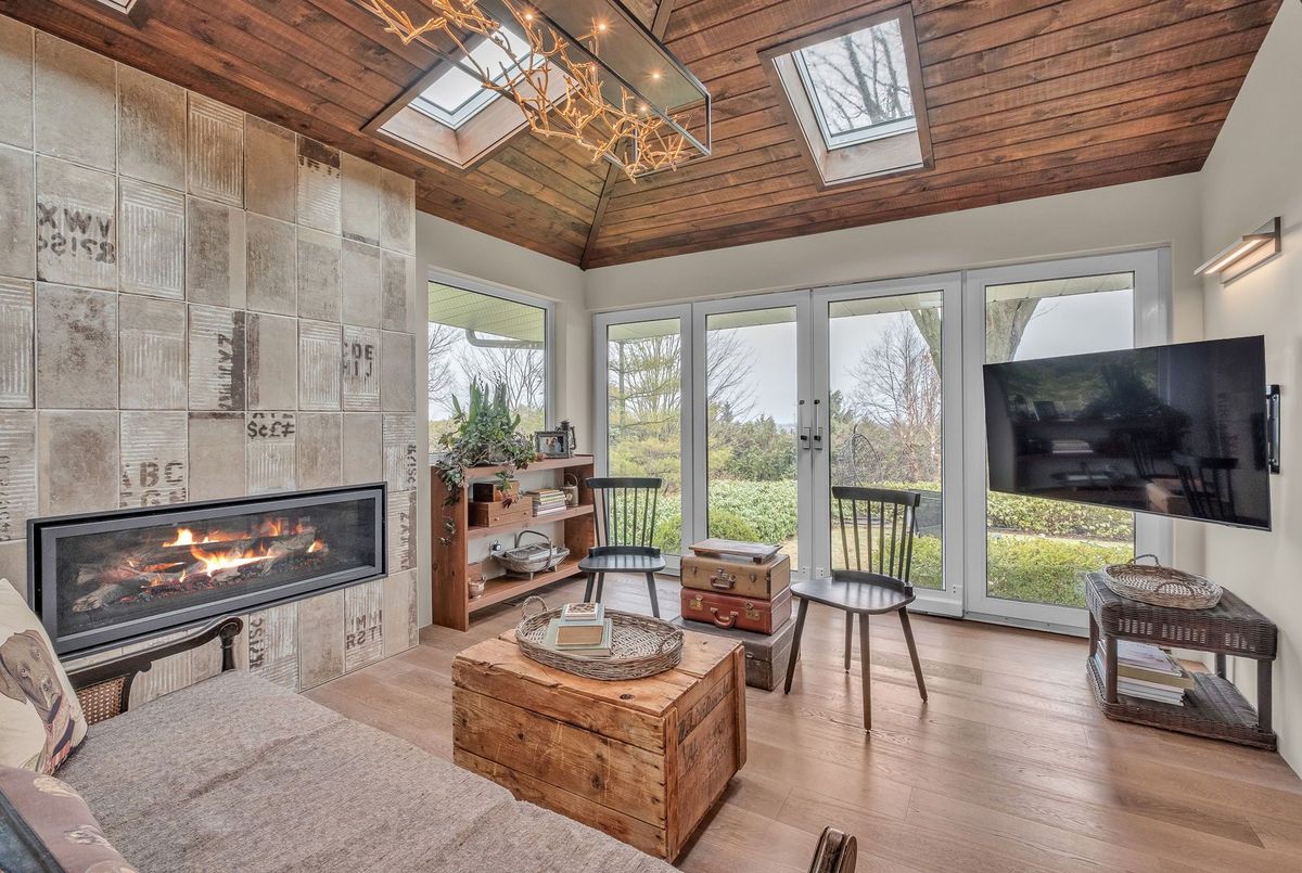 A Rare Mid-Century Retreat Tucked away on a tranquil 2-acre lot surrounded by towering mature trees, this classic mid-century bungalow offers a unique blend of timeless architecture and natural beauty. Every window provides a picturesque view of lush greenery, rolling terrain, and glimpses of the lake through the trees. The meticulously maintained gardens resemble a living arboretum, featuring rare native trees and perennial plantings that provide privacy and year-round low-maintenance charm.Originally built in 1969 on the historic Dungannon Estate, the home retains a piece of history with the original 1903 stone pillars gracing the porte-cochère at the end of a winding drive. Inside, an open-concept design bathed in natural light welcomes you, with floor-to-ceiling windows, hardwood floors, and a striking two-sided fireplace anchoring the main living area.The kitchen has been thoughtfully updated, blending modern functionality with sleek mid-century aesthetics. Warm wood accents clean architectural lines flow throughout, seamlessly connecting indoor and outdoor living. Multiple walkouts lead to expansive patios perfect for morning coffee or evening entertaining set against a backdrop of rolling hills and distant lake views.Since 2018, the home has undergone a custom-designed renovation featuring nearly 4,000 sq. ft. of refined main-floor living space. Highlights include radiant heated floors in the sunroom and primary bathroom, double furnaces, and a whole-home 22kW Generac generator for peace of mind.A private path winds through the trees to a charming guest houseideal as a visitor retreat, home office, or creative studio complete with heat, running water, and an attached double garage. The main residence also includes an oversized attached garage, providing ample storage and utility.Located just minutes from Highway 401, with convenient access to hospitals, shopping,, this property offers the rare combination of privacy, convenience, and architectural integrity. ...