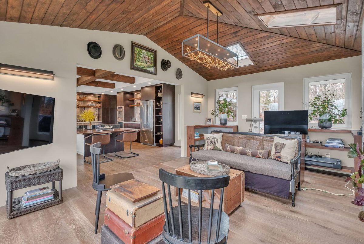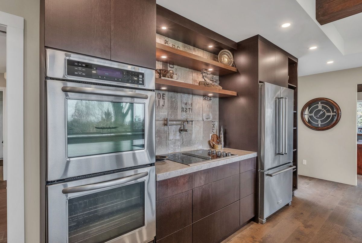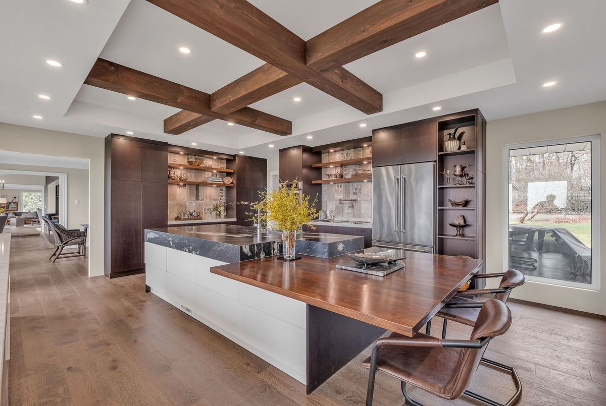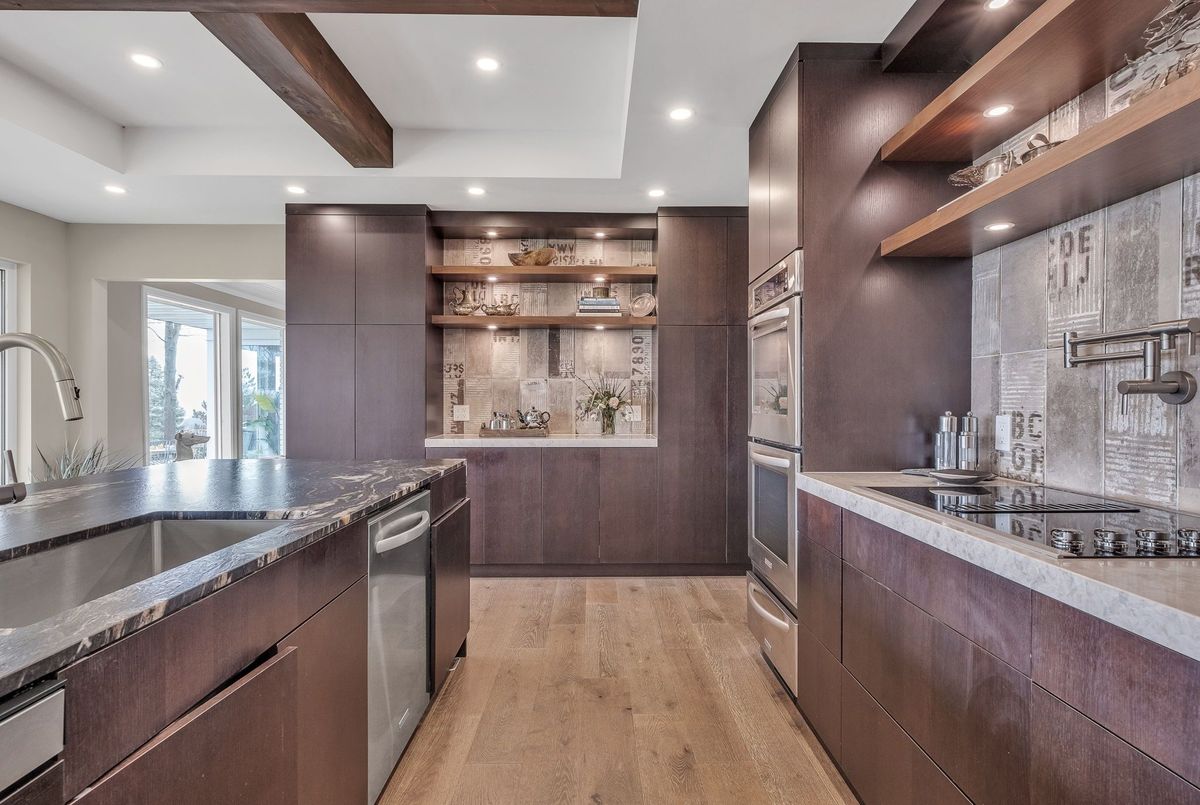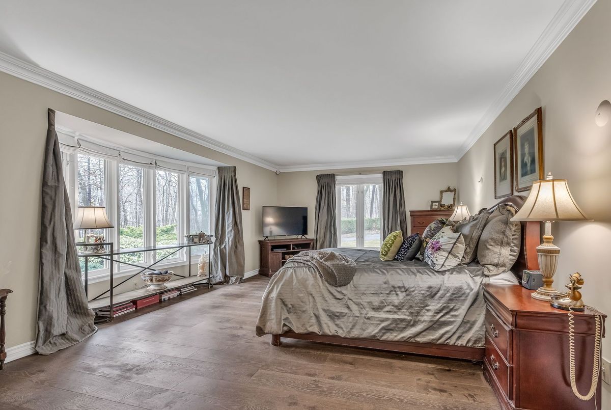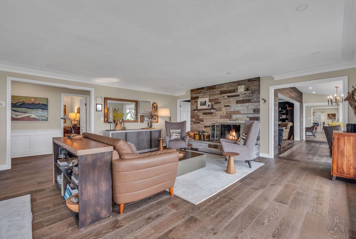 A Rare Mid-Century Retreat Tucked away on a tranquil 2-acre lot surrounded by towering mature trees, this classic mid-century bungalow offers a unique blend of timeless architecture and natural beauty. Every window provides a picturesque view of lush greenery, rolling terrain, and glimpses of the lake through the trees. The meticulously maintained gardens resemble a living arboretum, featuring rare native trees and perennial plantings that provide privacy and year-round low-maintenance charm.Originally built in 1969 on the historic Dungannon Estate, the home retains a piece of history with the original 1903 stone pillars gracing the porte-cochère at the end of a winding drive. Inside, an open-concept design bathed in natural light welcomes you, with floor-to-ceiling windows, hardwood floors, and a striking two-sided fireplace anchoring the main living area.The kitchen has been thoughtfully updated, blending modern functionality with sleek mid-century aesthetics. Warm wood accents clean architectural lines flow throughout, seamlessly connecting indoor and outdoor living. Multiple walkouts lead to expansive patios perfect for morning coffee or evening entertaining set against a backdrop of rolling hills and distant lake views.Since 2018, the home has undergone a custom-designed renovation featuring nearly 4,000 sq. ft. of refined main-floor living space. Highlights include radiant heated floors in the sunroom and primary bathroom, double furnaces, and a whole-home 22kW Generac generator for peace of mind.A private path winds through the trees to a charming guest houseideal as a visitor retreat, home office, or creative studio complete with heat, running water, and an attached double garage. The main residence also includes an oversized attached garage, providing ample storage and utility.Located just minutes from Highway 401, with convenient access to hospitals, shopping,, this property offers the rare combination of privacy, convenience, and architectural integrity. ...