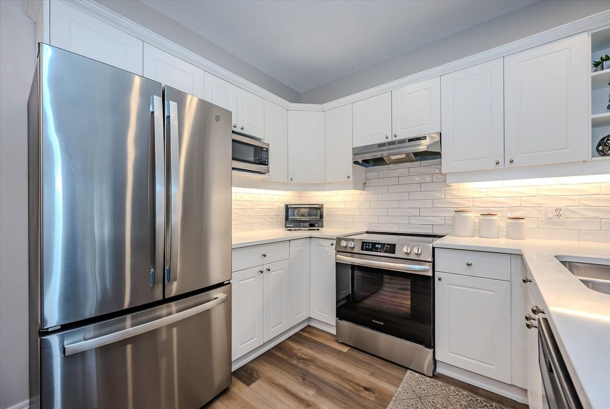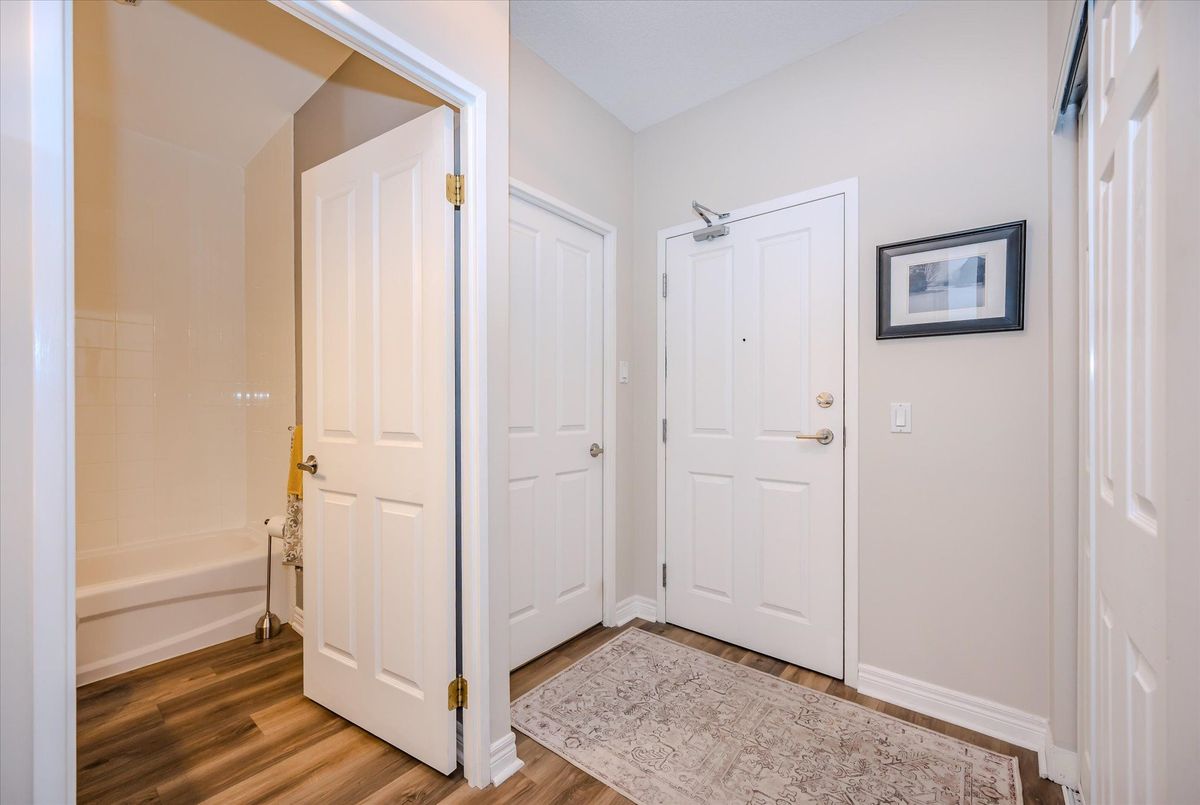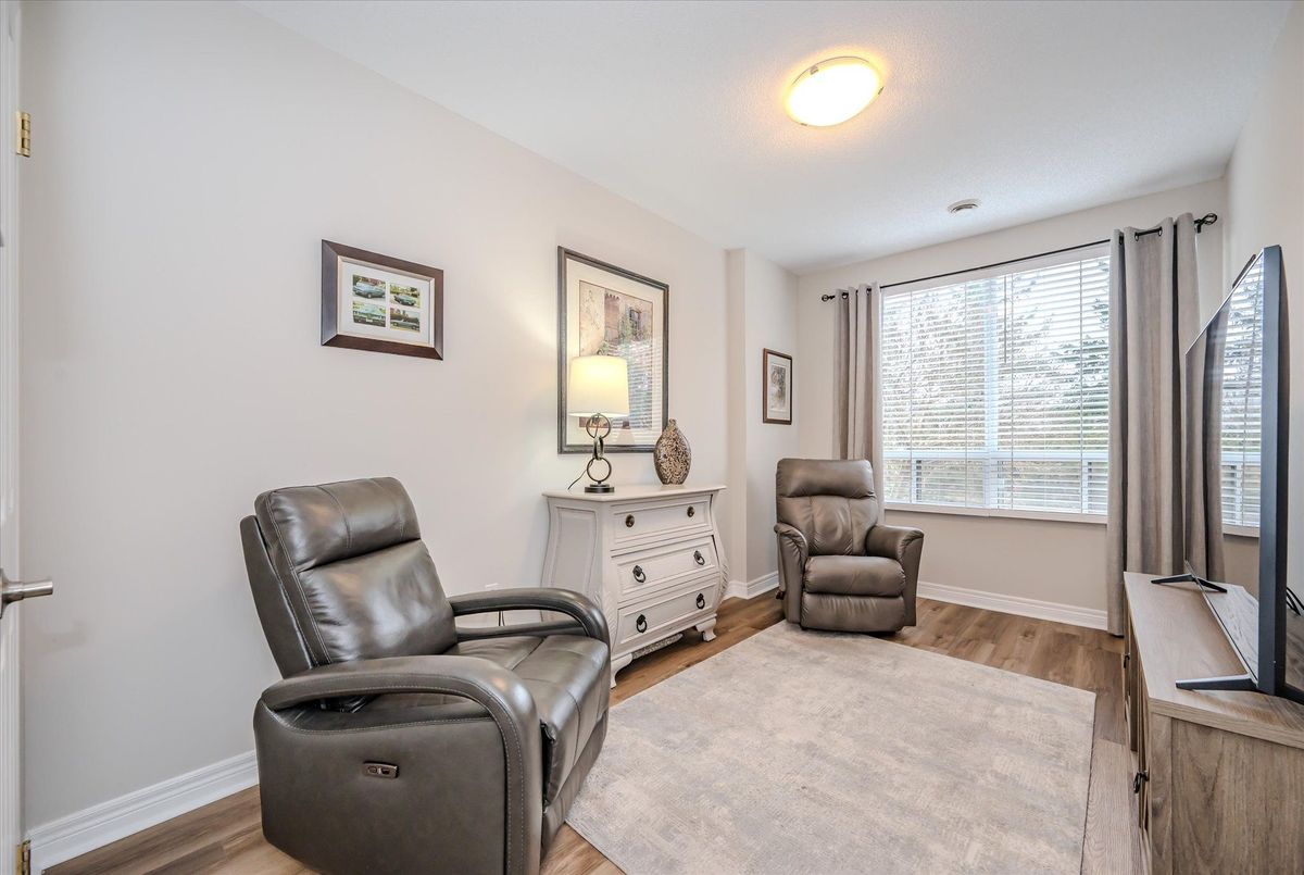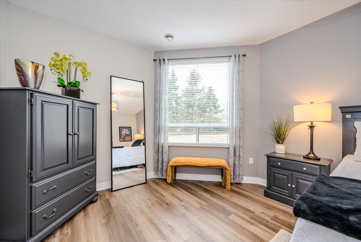Experience the best of downtown convenience with a touch of nature in this exceptional 1200 sqft 2 Bedroom, 2 Bathroom Ground-Level Garden Suite. Located in a highly respected, well-managed building, this condo offers a rare blend of privacy, comfort, and effortless livingperfect for down sizers or professionals seeking a peaceful retreat with urban amenities at their doorstep. Step inside to discover a bright, open-concept layout, with luxury vinyl tile flooring throughout. The space has been tastefully updated and is well appointed with classic neutral finishes.The 2023 updated kitchen boasts Quartz Countertops, a stylish Backsplash, and Modern Appliances, making meal preparation a pleasure. The spacious living area extends seamlessly to an open Balcony overlooking beautifully Landscaped Gardens, creating the feel of a private backyard without the upkeep. Designed for ease and convenience, this suite Includes HEAT and WATER in the condo fees-along with secure Underground Parking. Amenities include an Exercise room, Community room and a Guest Suite can be booked for overnight company.Stroll through the garden or stop by the pergola to relax or use the community BBQ. The building is ideally situated within walking distance of the GO Train, public transit, shops, and dining, making it easy to stay connected while enjoying a low-maintenance lifestyle. Dont miss this rare opportunity to own a serene yet centrally located garden suite home. Book your private viewing today!