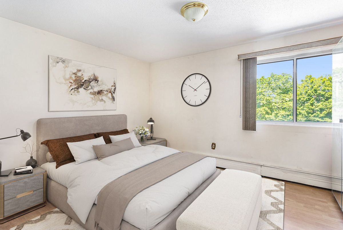 Charming 2-Bedroom Condo with Pool View in Amenity-Rich Community! Welcome to this delightful and well-maintained 2-bedroom, 1-bath condo nestled in a beautiful, mature neighbourhood. Overlooking the sparkling outdoor pool, this cozy unit offers a perfect blend of comfort, charm, and convenience. Residents enjoy a wealth of amenities including a games room, exercise room, guest suites, party room, library, and even a place of worship - all within the community! Conveniently located close to transit, this is an ideal home for those seeking lifestyle, location, and value. Don't miss this rare opportunity