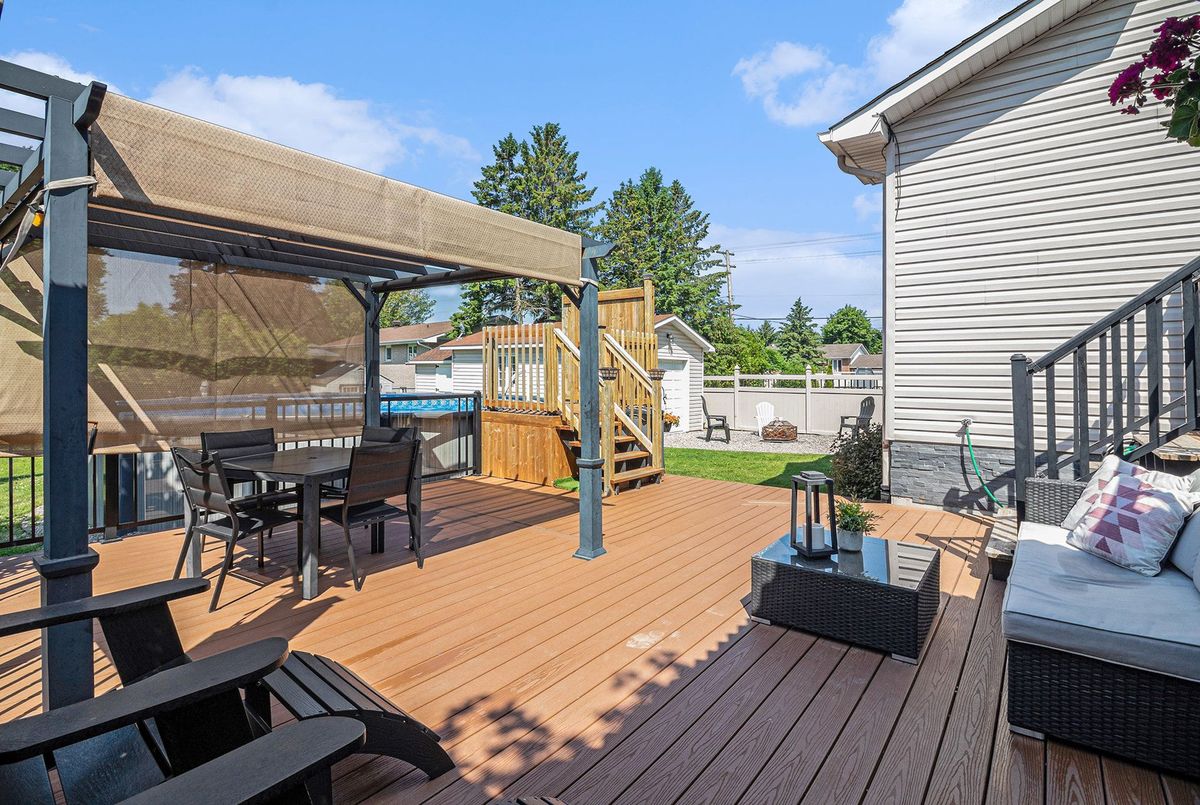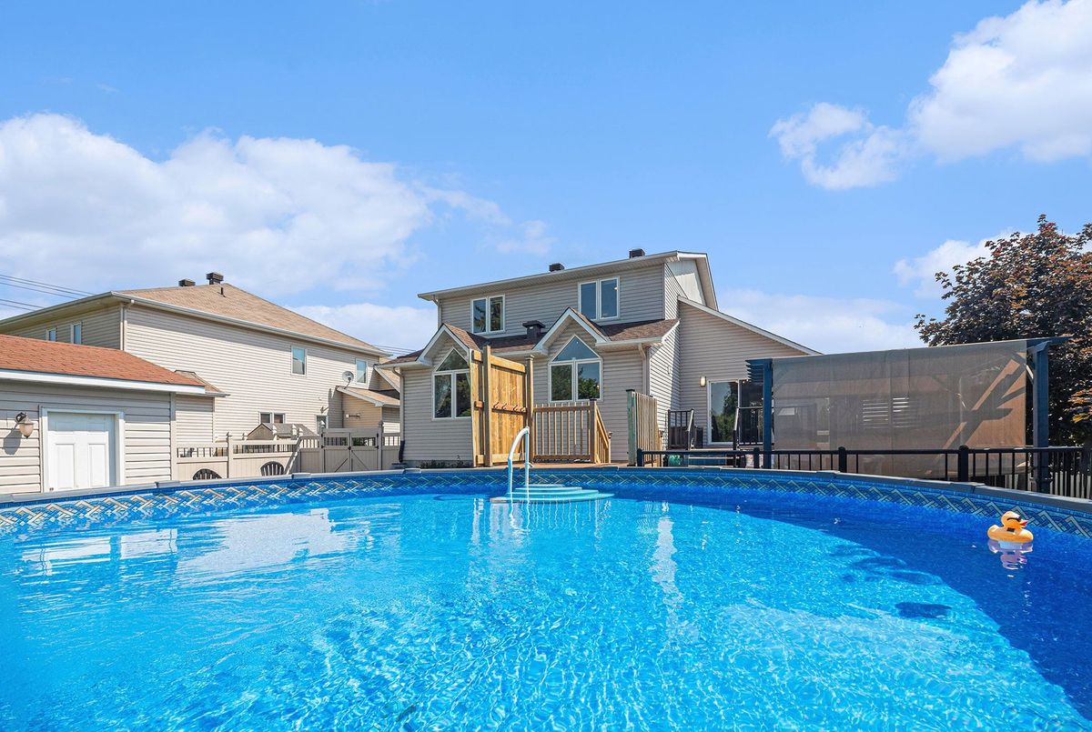 Welcome to this beautiful 3+2 bedroom home nestled near the heart of Embrun. Designed with comfort and versatility in mind, the spacious main floor boasts an open-concept layout featuring a sunlit living room, a generous dining area, and a stunning kitchen perfect for hosting and everyday life. A second family room and a large office/den offer even more room to relax or work from home in style. Upstairs, you'll find a luxurious sunken primary suite complete with a walk-in closet and a spa-inspired 4-piece ensuite. Two additional bedrooms share a full bathroom with dual sinks and a conveniently located laundry closet. The fully finished lower level expands your living space with another family room, two additional bedrooms, a full bath, and ample storage. Step outside into your personal backyard retreat, highlighted by a 26 ft heated pool, covered hot tub, expansive deck, and a fully fenced yard that is ideal for both entertaining and quiet evenings. A detached garage accessible from the side of the home and a garden shed add even more function to this already fabulous property. This home is packed with tasteful, thoughtful finishes that set it apart. Move-in ready and made for modern family living, don't miss the opportunity to make it yours!