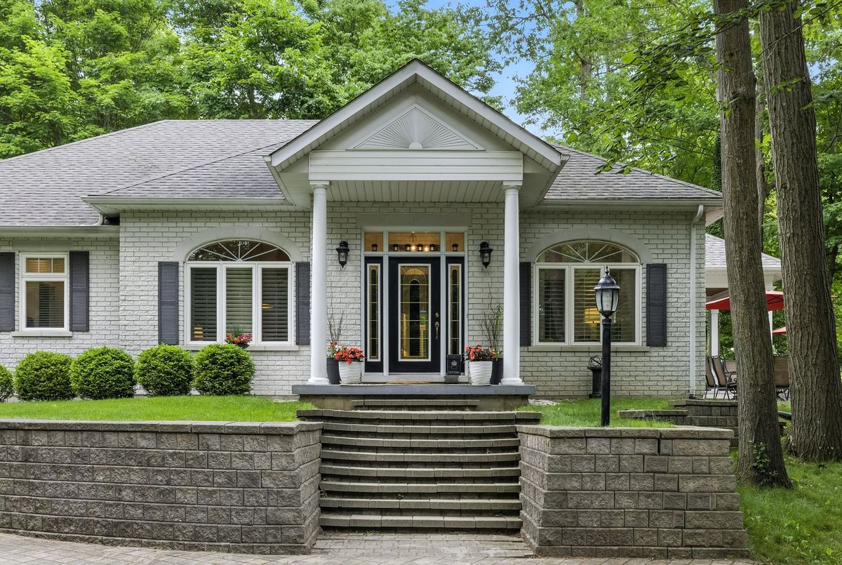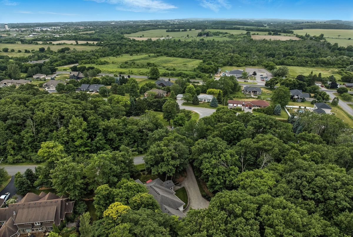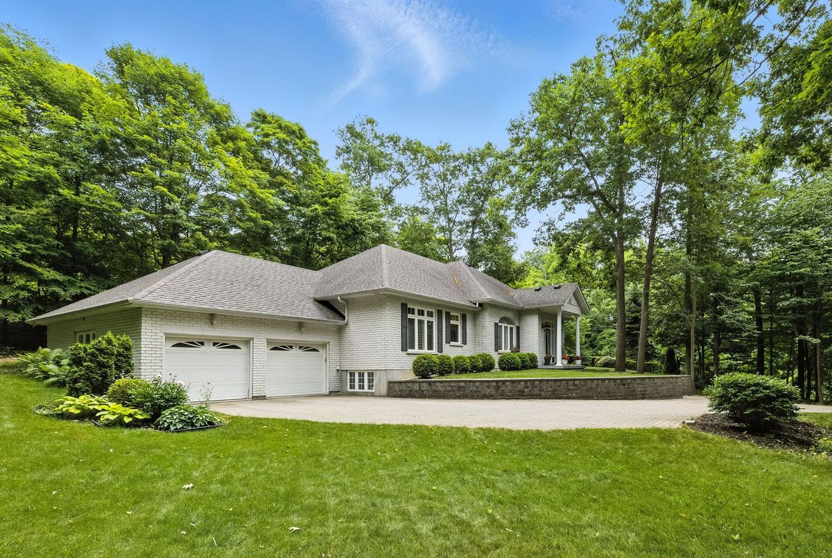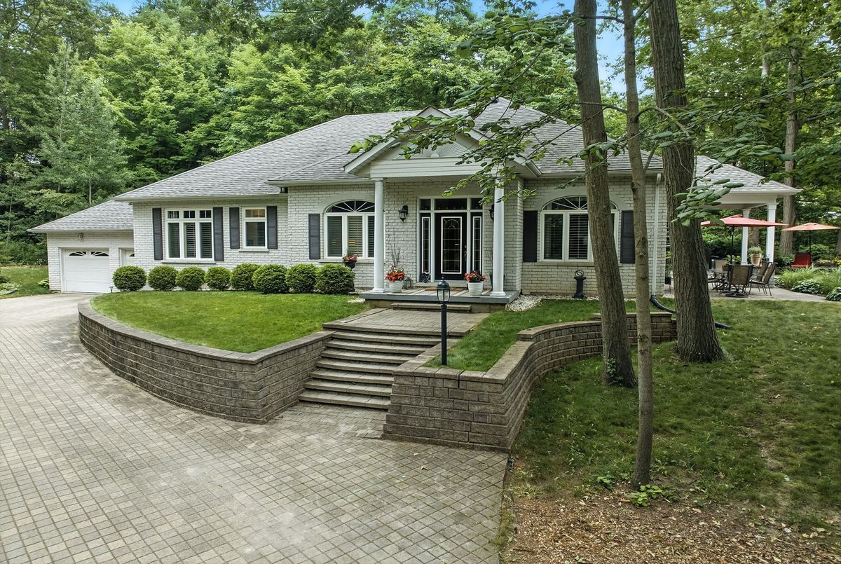 Hidden away on a quiet Court and completely surrounded by mature trees, this beautiful country property offers privacy, tranquility, and the convenience of being just 5 to 10 minutes from Cobourgs shopping, hospital, and other amenities. Immaculate landscaping and a winding brick driveway create a stunning first impression as you approach the all brick bungalow, with a grand, yet warm and welcoming entryway framed by a classic portico. This spacious, thoughtfully designed home features 3 bedrooms and 2 full bathrooms, including a partially finished basement with a den or 4th bedroom- ideal for guests, a home office, or hobby space. Inside, you'll find 10 ft ceilings, large windows, and a kitchen skylight that floods the home with natural light. The cherry hardwood floors and natural gas fireplace are just two of the many updates that add warmth and elegance throughout. The heart of the home, the kitchen, offers new quartz counters, luxury vinyl flooring and a walk-out to a covered patio perfect for entertaining or enjoying quiet evenings overlooking your serene surroundings. The primary suite includes two large double closets for ample storage and an exquisite 3 piece ensuite. The enormous, attached 2-car garage could easily park two large trucks or SUVs and still leave plenty of room for additional storage and/or a workbench. If you are looking for a luxurious, turnkey home in a rural setting while living just minutes away from all the urban amenities you need, then this could just be the property you've been waiting for!! ...