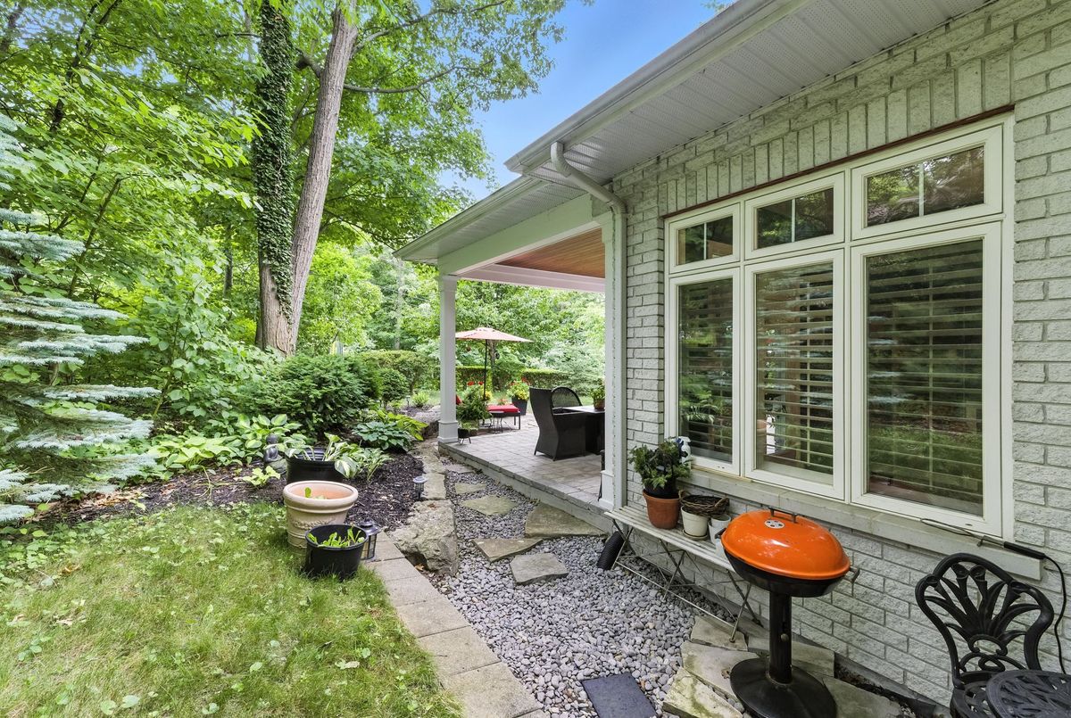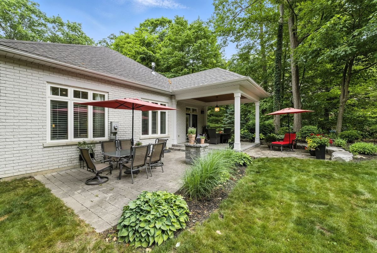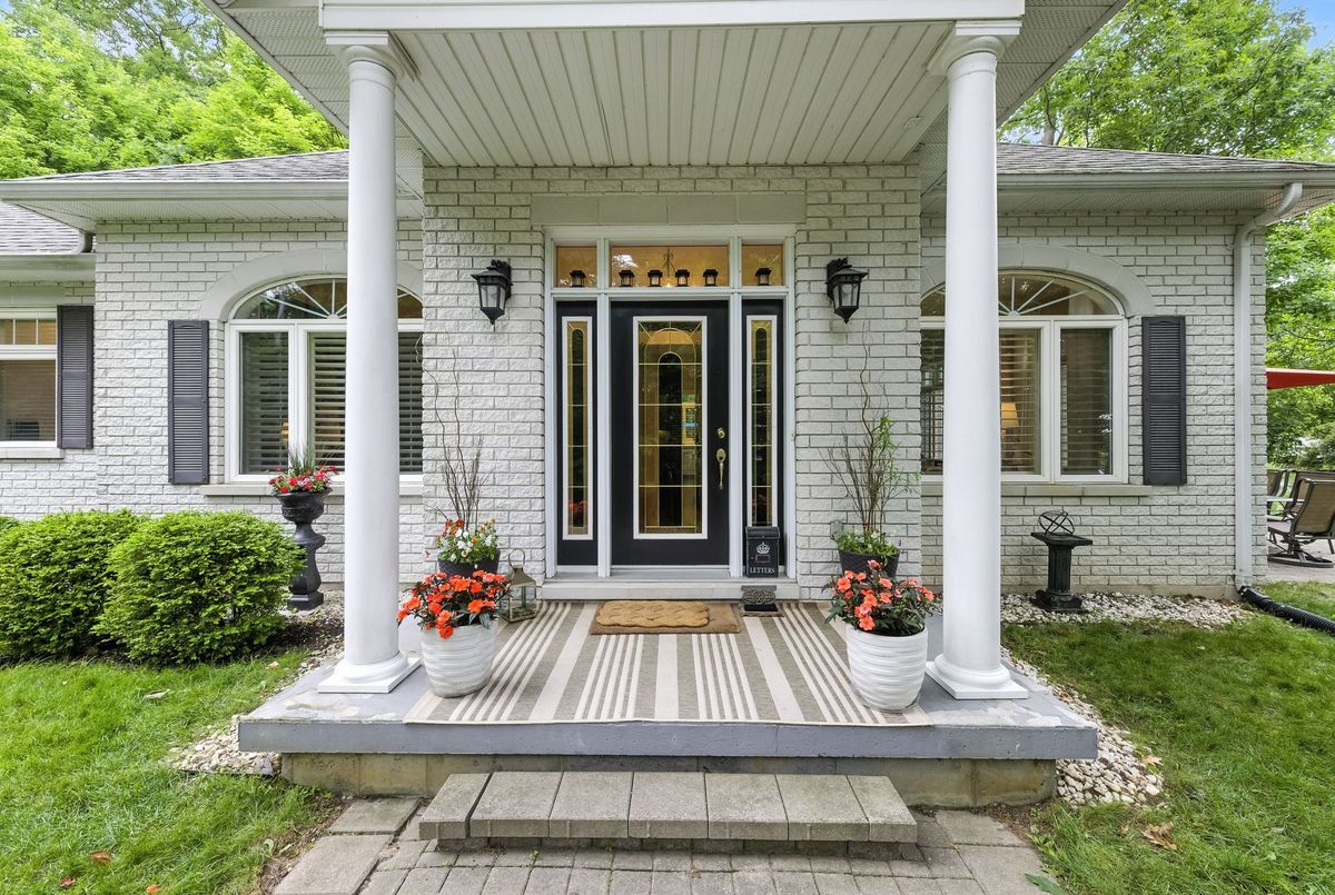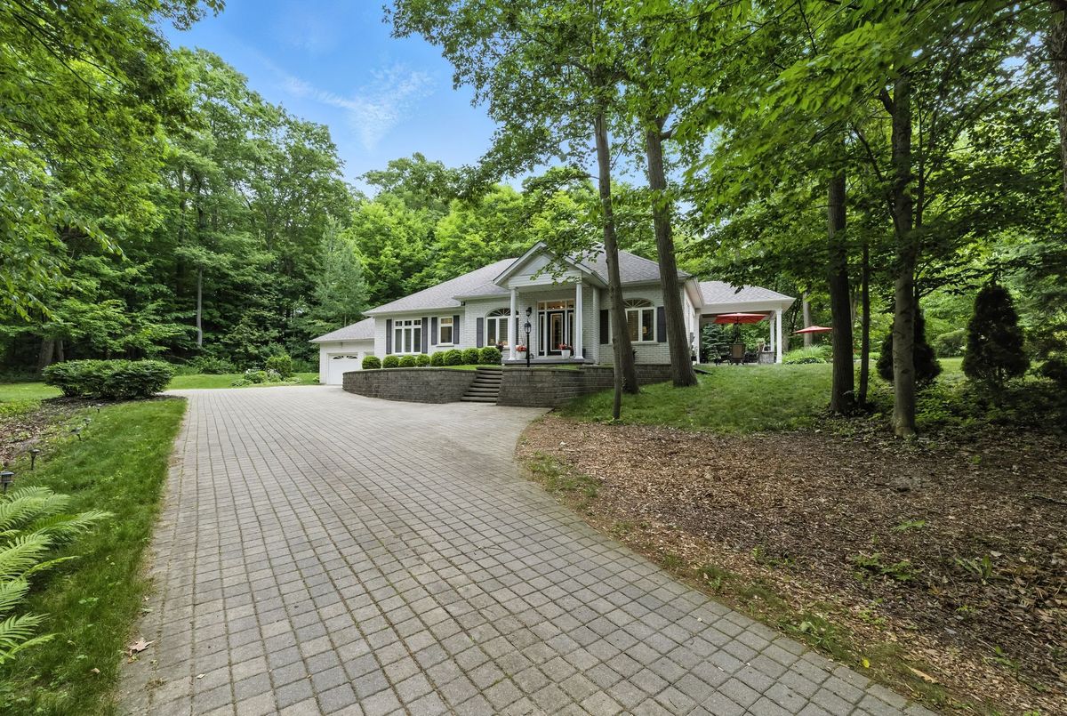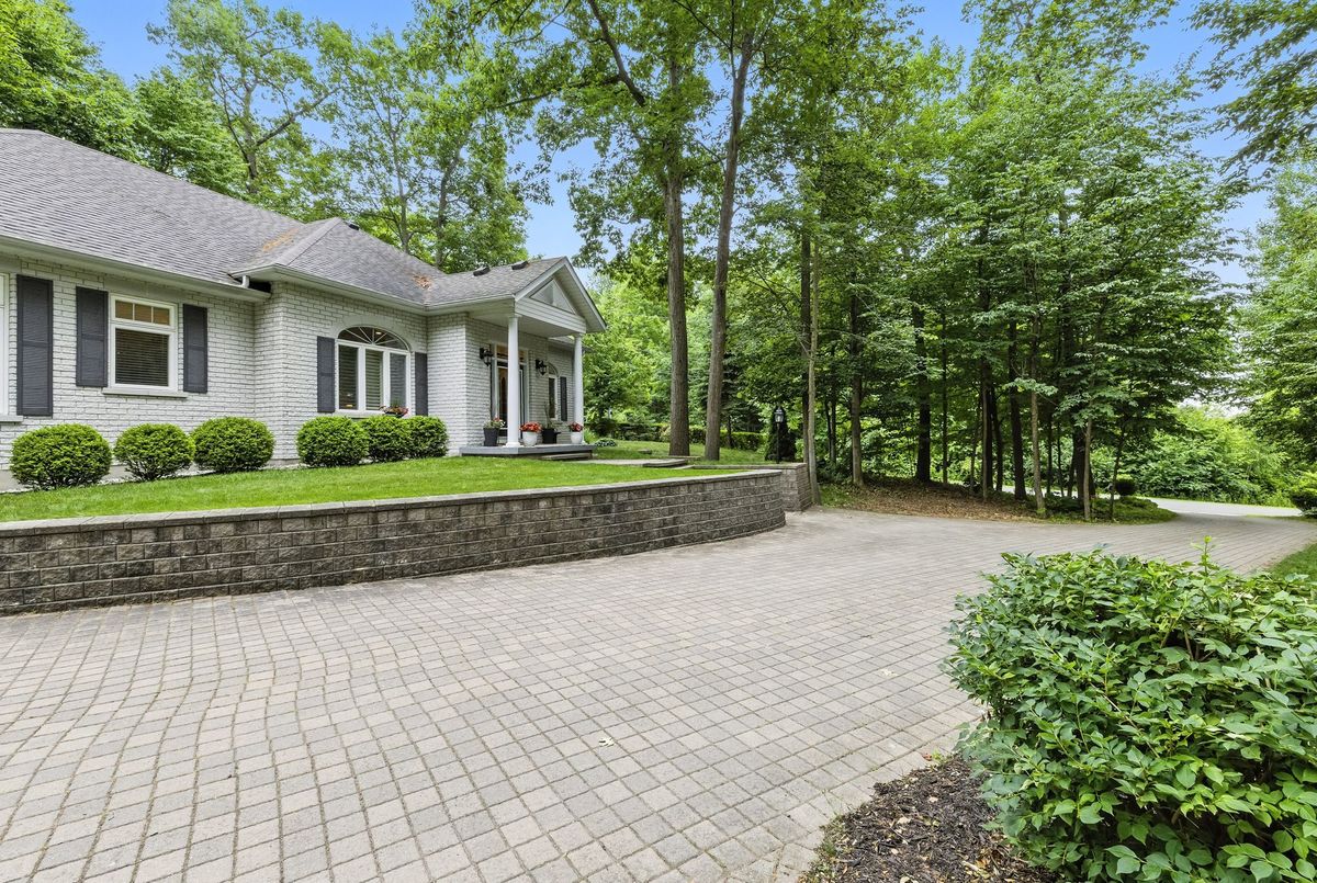 Hidden away on a quiet Court and completely surrounded by mature trees, this beautiful country property offers privacy, tranquility, and the convenience of being just 5 to 10 minutes from Cobourgs shopping, hospital, and other amenities. Immaculate landscaping and a winding brick driveway create a stunning first impression as you approach the all brick bungalow, with a grand, yet warm and welcoming entryway framed by a classic portico. This spacious, thoughtfully designed home features 3 bedrooms and 2 full bathrooms, including a partially finished basement with a den or 4th bedroom- ideal for guests, a home office, or hobby space. Inside, you'll find 10 ft ceilings, large windows, and a kitchen skylight that floods the home with natural light. The cherry hardwood floors and natural gas fireplace are just two of the many updates that add warmth and elegance throughout. The heart of the home, the kitchen, offers new quartz counters, luxury vinyl flooring and a walk-out to a covered patio perfect for entertaining or enjoying quiet evenings overlooking your serene surroundings. The primary suite includes two large double closets for ample storage and an exquisite 3 piece ensuite. The enormous, attached 2-car garage could easily park two large trucks or SUVs and still leave plenty of room for additional storage and/or a workbench. If you are looking for a luxurious, turnkey home in a rural setting while living just minutes away from all the urban amenities you need, then this could just be the property you've been waiting for!! ...