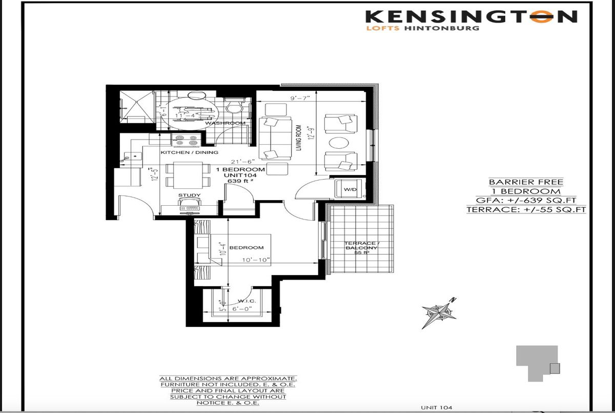Welcome to your modern urban retreat in the heart of Hintonburg. This beautifully designed, wheelchair-accessible one-bedroom, one-bathroom condo at Kensington Lofts includes ALL UTILITIES and features sleek finishes, smart functionality, and a rare private ground-floor terrace perfect for morning coffee or evening relaxation. Enjoy 10-foot ceilings, floor-to-ceiling windows, a bright open-concept layout, and a contemporary kitchen with stainless steel appliances, quartz countertops, and sleek, modern cabinetry cabinetry. The spacious bathroom, in-unit laundry, and generous walk-in closet add to the convenience, while a storage locker and access to boutique amenities like a rooftop terrace, pet wash station, and secure bike storage complete the package. Located just steps from Hintonburg's eclectic mix of cafés, shops, transit, and culture. This is stylish, low-maintenance city living at its best!