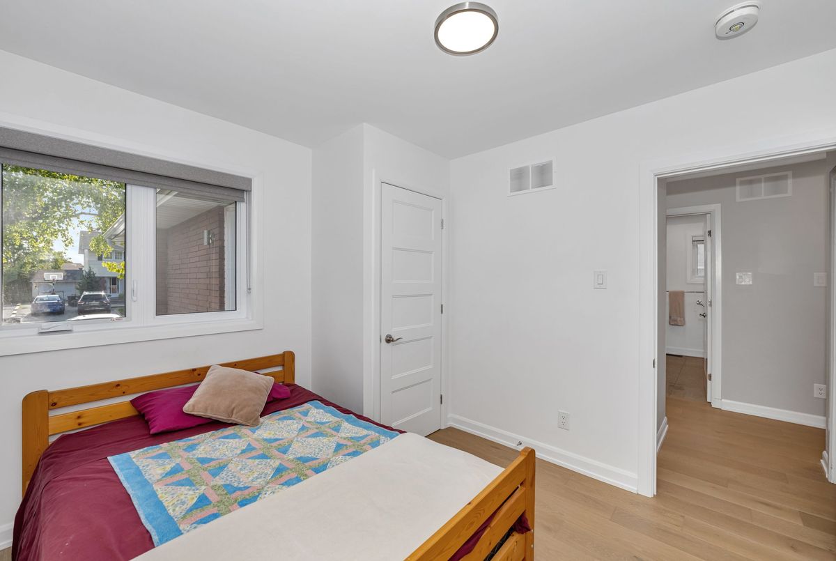 Welcome to 1229 Erindale Drive, a beautifully renovated 4-bedroom plus den detached bungalow located in the heart of the highly desirable Copeland Park community. Fully updated from top to bottom in 2021, this move-in ready home offers modern finishes, functional design, and excellent versatility for families or investors alike. Step inside to a bright and open-concept living and dining space, flooded with natural light from large windows with custom blinds. Hardwood flooring, pot lights, and a contemporary aesthetic set the tone for the entire home. The stunning kitchen is equipped with stainless steel appliances, custom cabinetry, and sleek quartz countertops ideal for both everyday living and entertaining. The main floor features three generous bedrooms and a stylish 3-piece bathroom with a double vanity and walk-in shower. Downstairs, a separate entrance leads to a fully finished lower level with a spacious rec room, oversized fourth bedroom, additional 3-piece bathroom, and a den with a kitchen rough-in and laundry hookup perfect for creating a nanny suite, in-law suite, or future duplex conversion. Enjoy the outdoors with a large, fully fenced private yard, and a freshly landscaped patio. A long laneway offers parking for multiple vehicles. Conveniently located near parks, schools, public transit, shopping, and all major amenities, with quick access to downtown Ottawa.