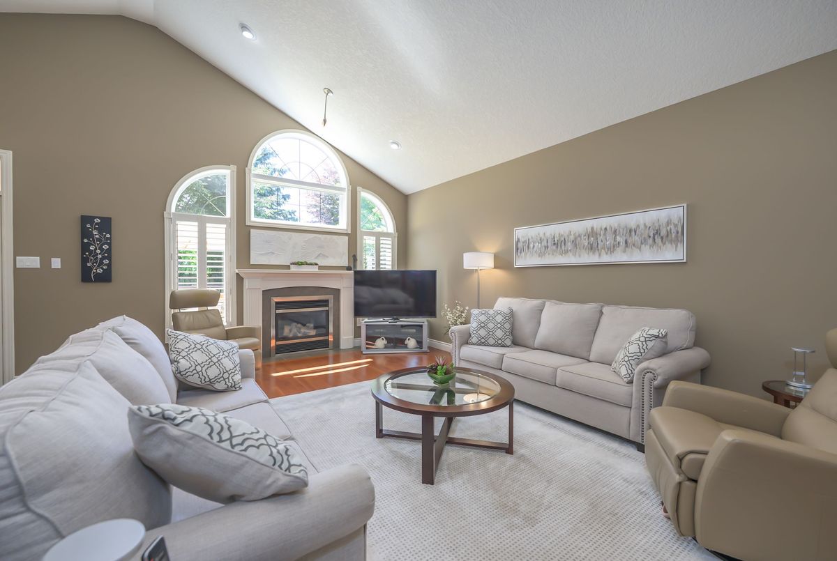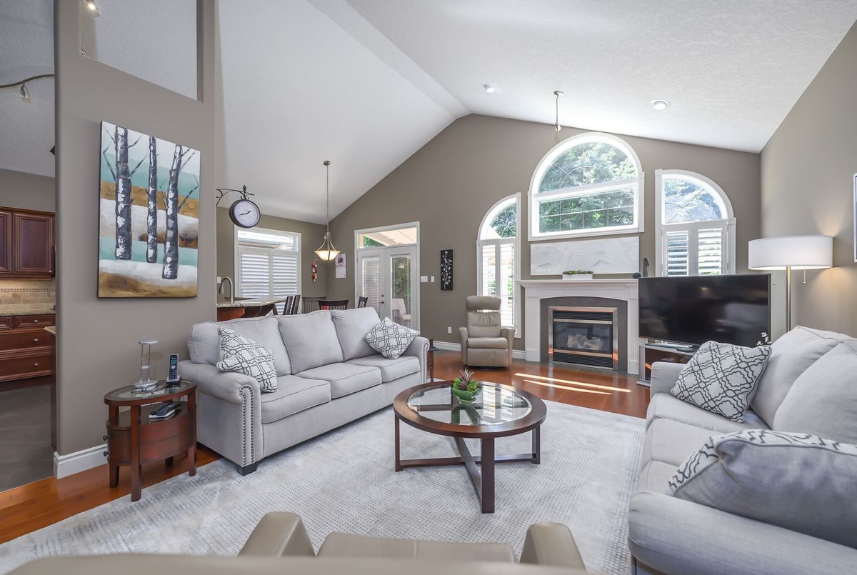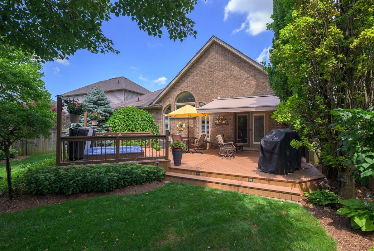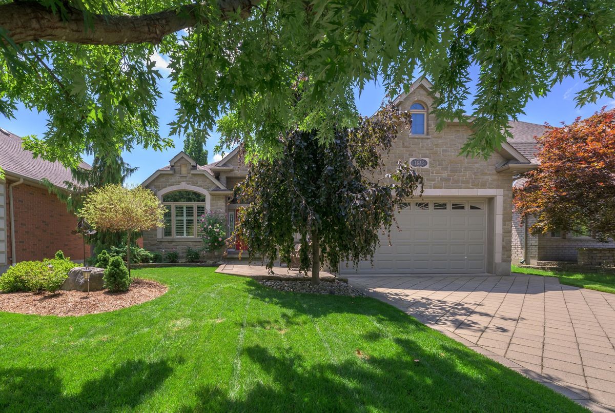 Welcome home in the highly sought after Riverbend! A rare opportunity for graciously appointed one-floor living in the area! Located on a quiet street, the all brick and stone exterior boasts a classic curb appeal! 1866 square feet on the bright main floor offering a designated office space behind french-glass doors, a classic dining area, a great open living space with a central gas fireplace that opens into the chef's kitchen, and a primary bedroom with an ensuite. Grand arched entryways and cathedral ceilings elevate and impress! The Kitchen boasts granite surfaces, high-end stainless-steel appliances and peninsula seating. The Primary bedroom features a tray ceiling and 3-piece ensuite. Gleaming hardwood throughout the common spaces and tile in the kitchen. 4pc common bath on the main. Bright and spacious finished lower level offers a large rec area with central gas fireplace, two additional bedrooms with bright windows and a 3pc common bath. The yard offers a perfect nester's retreat with an oversized multi-tier deck, hot tub, shed, sprawling perennial gardens and mature trees offering excellent shade and privacy throughout the year including Beach, Magnolia, Mulberry, Linden and Spruces. Breathtakingly lush atmosphere. Nearby trails, newer amenities, shopping, fantastic schools and close to the West 5.