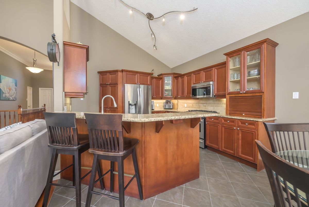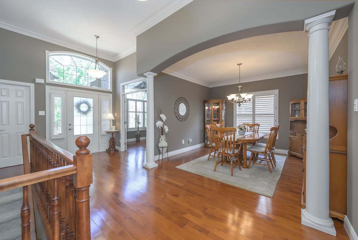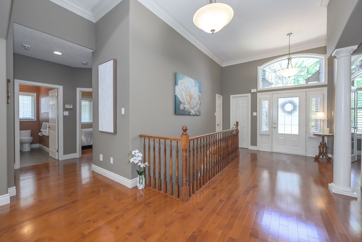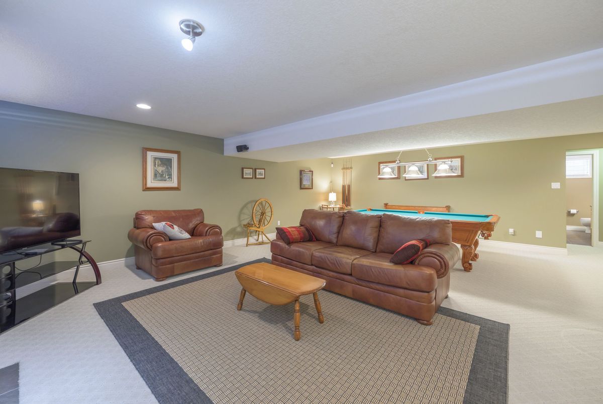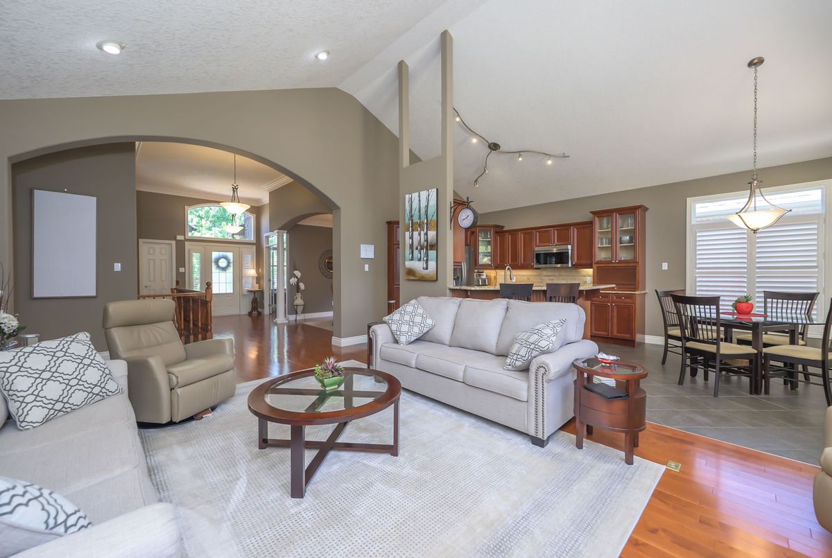 Welcome home in the highly sought after Riverbend! A rare opportunity for graciously appointed one-floor living in the area! Located on a quiet street, the all brick and stone exterior boasts a classic curb appeal! 1866 square feet on the bright main floor offering a designated office space behind french-glass doors, a classic dining area, a great open living space with a central gas fireplace that opens into the chef's kitchen, and a primary bedroom with an ensuite. Grand arched entryways and cathedral ceilings elevate and impress! The Kitchen boasts granite surfaces, high-end stainless-steel appliances and peninsula seating. The Primary bedroom features a tray ceiling and 3-piece ensuite. Gleaming hardwood throughout the common spaces and tile in the kitchen. 4pc common bath on the main. Bright and spacious finished lower level offers a large rec area with central gas fireplace, two additional bedrooms with bright windows and a 3pc common bath. The yard offers a perfect nester's retreat with an oversized multi-tier deck, hot tub, shed, sprawling perennial gardens and mature trees offering excellent shade and privacy throughout the year including Beach, Magnolia, Mulberry, Linden and Spruces. Breathtakingly lush atmosphere. Nearby trails, newer amenities, shopping, fantastic schools and close to the West 5.