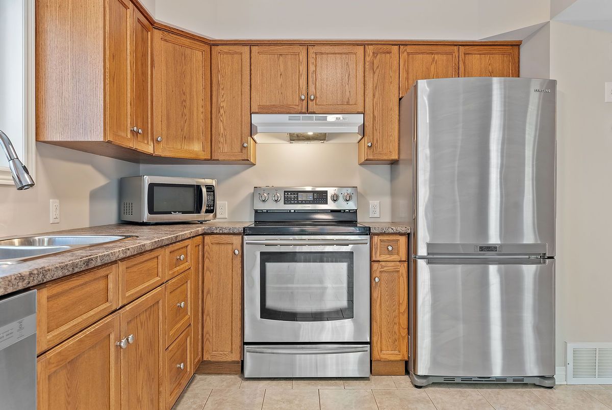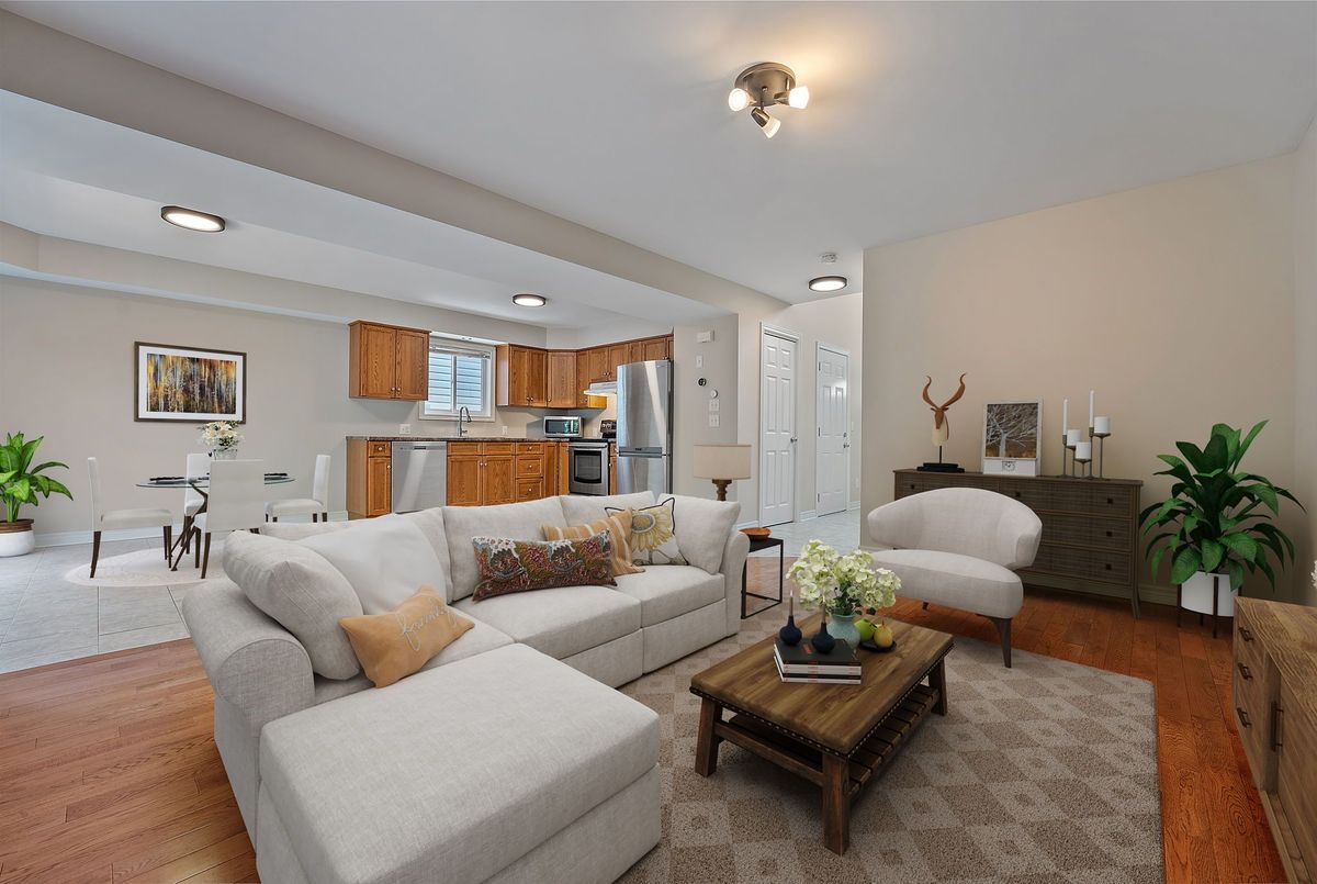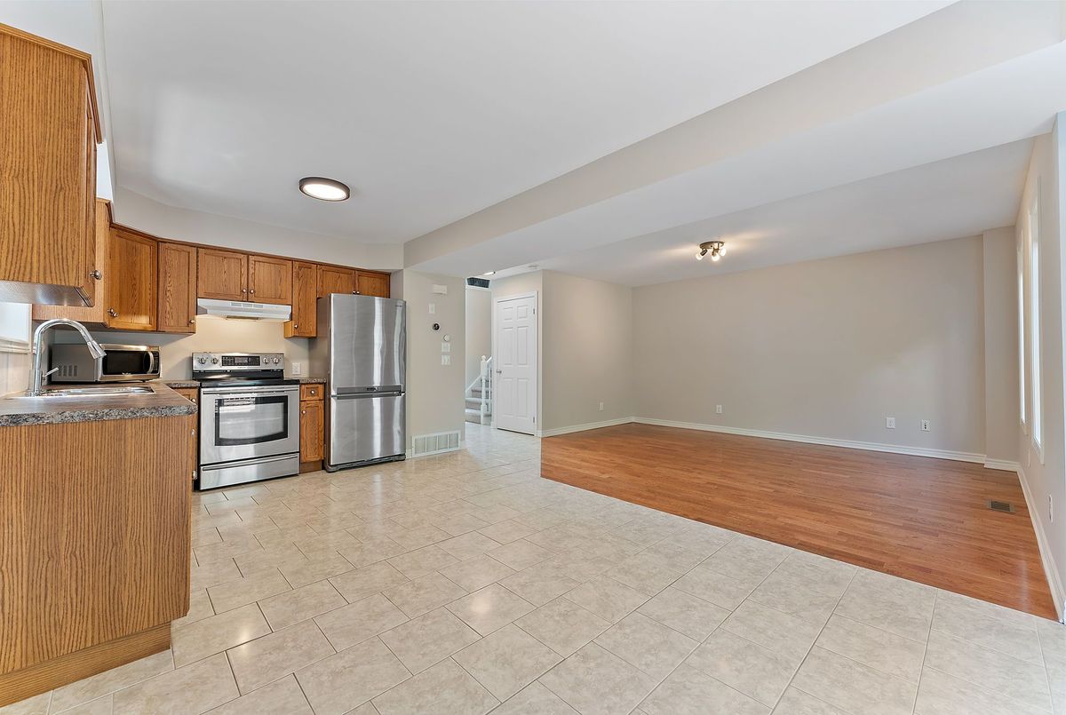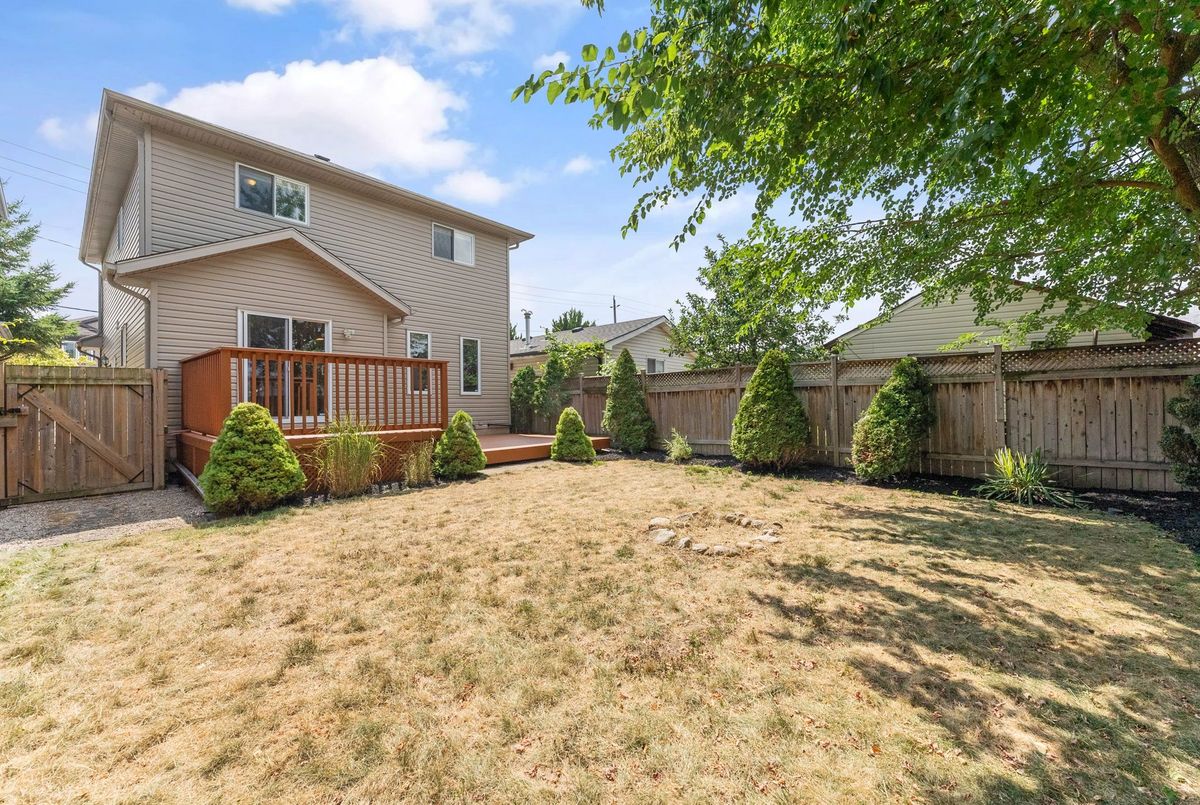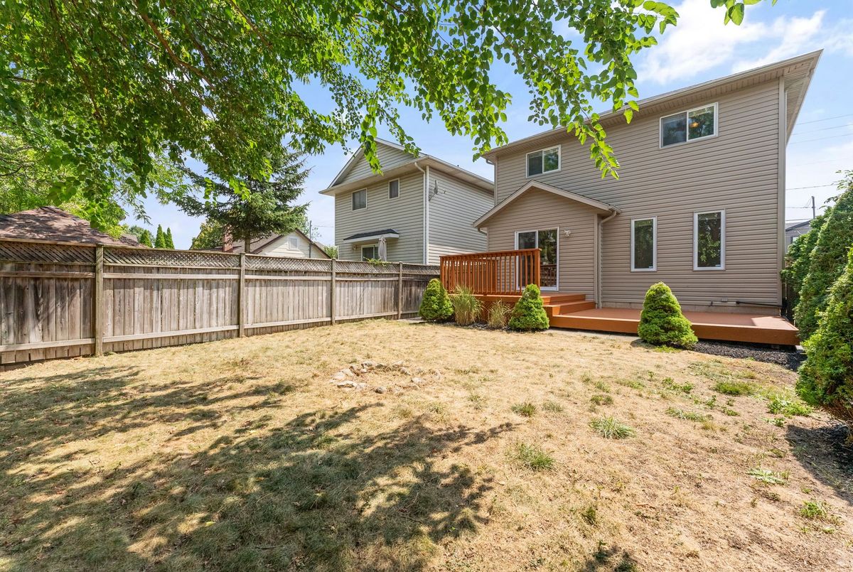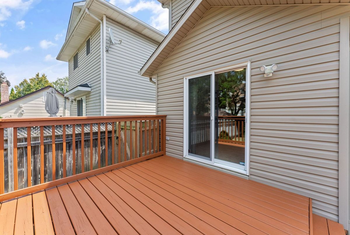 This modern 1473 square foot two-storey home is move-in ready and thoughtfully designed to meet your needs from day one! The attached garage includes direct access from the front foyer and a convenient side entrance, making everyday routines effortless. Private driveway and plenty of street parking for you and your guests. Inside, a striking two-storey front entry with tiled flooring opens into a spacious, open-concept kitchen and living area with hardwood floors. The kitchen is outfitted with hardwood cabinets and sleek stainless steel appliances. It leads to a double-level deck through sliding patio doors, perfect for hosting summer gatherings or enjoying quiet evenings outdoors. The fully fenced backyard provides ample room for gardening, play, or relaxation. Downstairs, the finished basement offers a generous rec room with endless possibilities. Envision a games area, a cozy media lounge, or a home theatre setup. A full basement bathroom and smart storage options add practicality to this inviting space. Upstairs, natural light fills the second floor, where you'll find three large bedrooms, each with a huge double closet, plus a spacious open foyer and two linen closets for added convenience. Series 800 doors and crisp white trim throughout the home highlight its clean, contemporary design and generous proportions.  This home combines thoughtful layout, stylish finishes, and everyday comfort in one exceptional package. Take the next step!  Book a showing and see why this home is a standout choice!