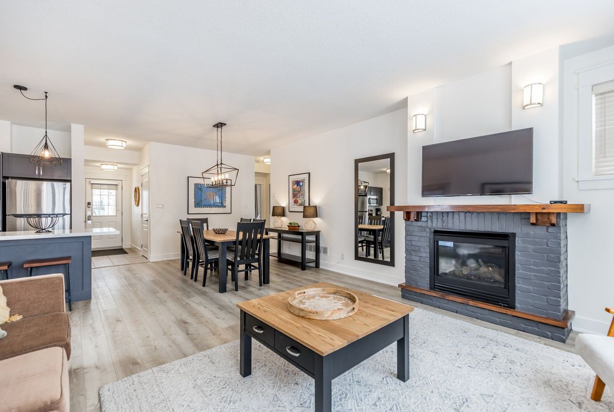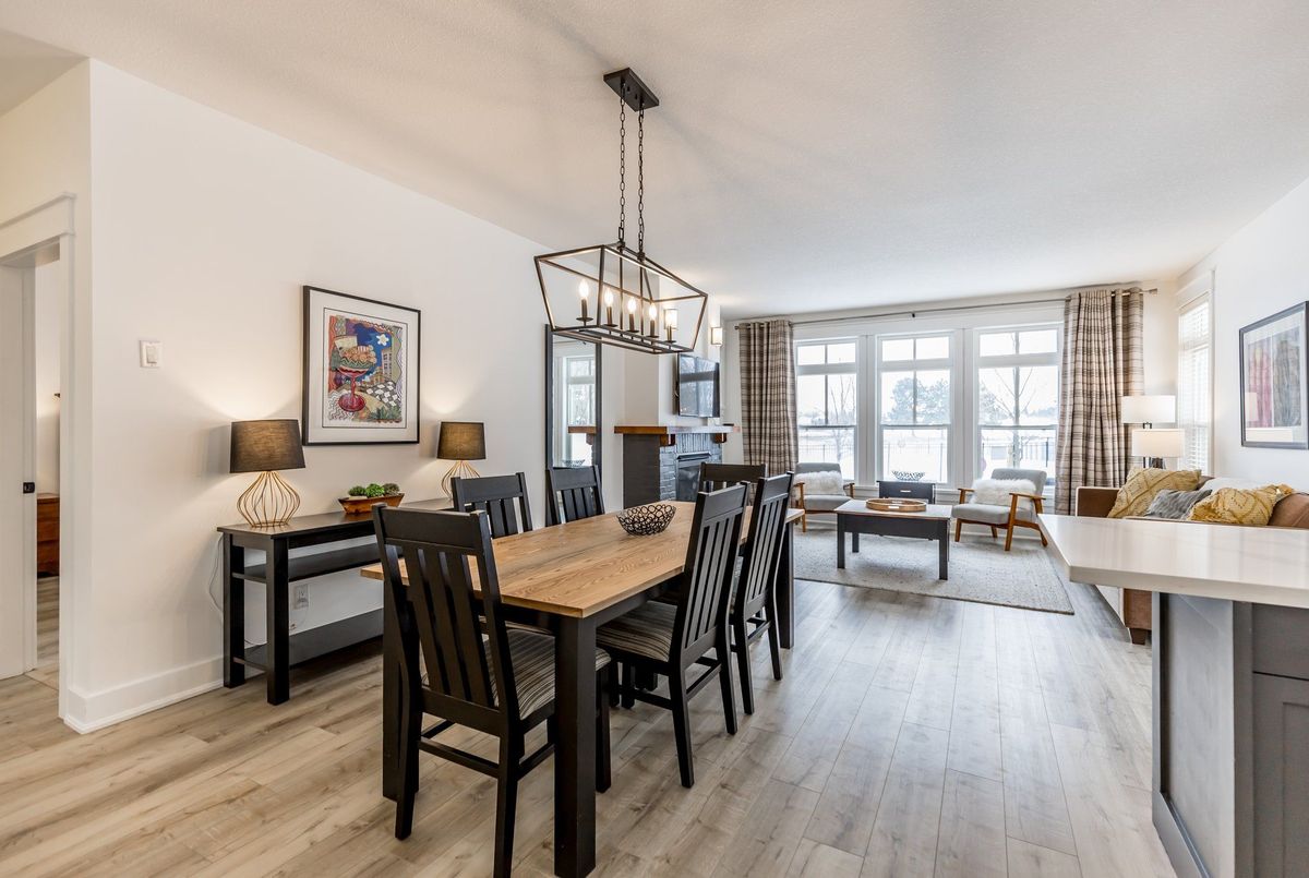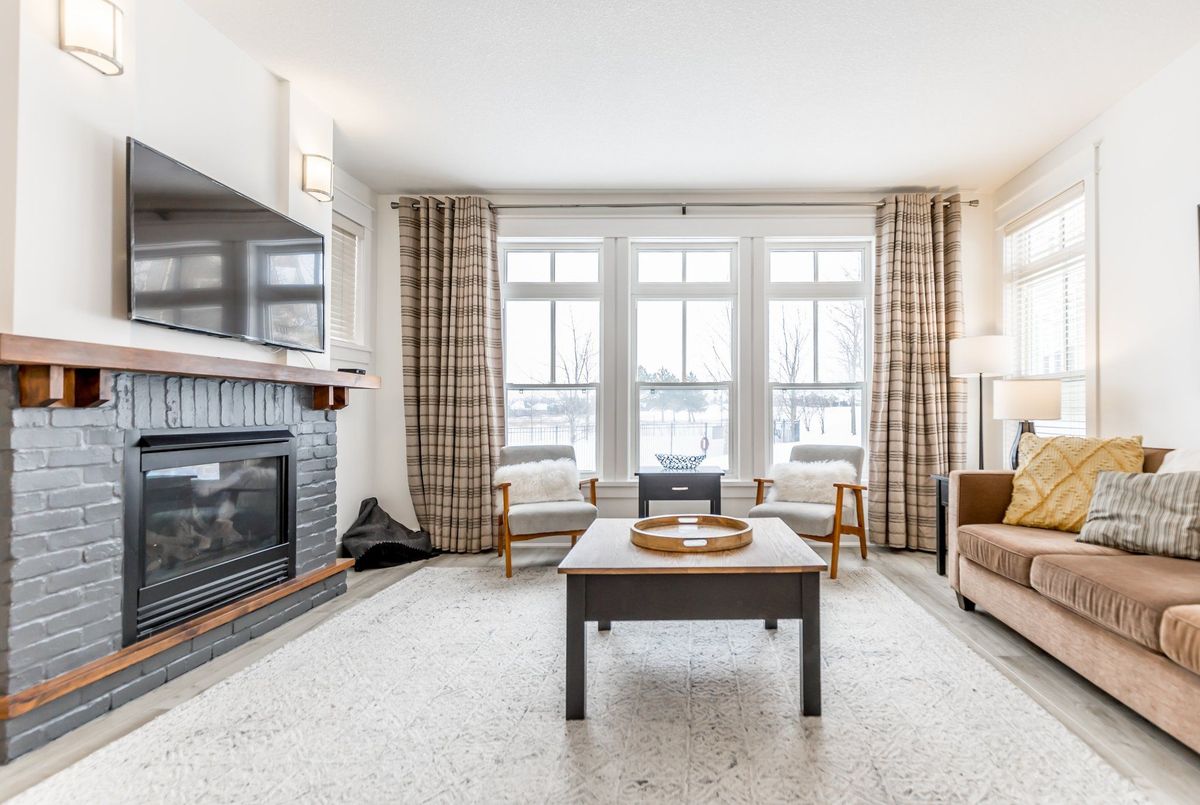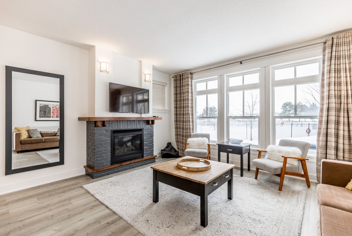 Experience True Four-Season Living at Blue Mountains Rivergrass Community! Welcome to this beautifully updated ground-floor end unit in the highly sought-after Rivergrass community at Blue Mountain. Fully furnished and move-in ready, this turnkey property is the perfect blend of personal retreat and smart investment opportunity. Whether you're seeking a year-round residence, a weekend getaway, or a profitable short-term rental, this unique unit offers flexibility and ease. As part of the rental program, owners can earn up to $60,000 annually in gross income with full property management services including booking, guest communication, cleaning, and maintenance. Simply let the team know when you want to enjoy it yourself, and they'll have everything ready for your arrival. Inside, you'll find a bright, open-concept layout with 2 spacious bedrooms, 2 full bathrooms, and generous living spaces. The south-facing living room features oversized windows and a cozy gas fireplace, perfect for après-ski relaxation. The adjacent dining area flows seamlessly into the modern kitchen ideal for entertaining or family meals. Step outside to your wraparound patio, perfect for BBQs and unwinding any time of year. Just steps away are the year-round hot tub and seasonal outdoor pool, offering resort-style amenities right at your doorstep. Additional highlights include: Private exterior storage closet, only a 10-minute walk to Blue Mountain Village, shuttle service available directly from your door, close proximity to Monterra Golf, Blue Mountain Resort, and the private Blue Mountain Beach Club. This is the closest unit to the Blue Mountain shuttle stop, making it even more convenient for guests and owners alike.