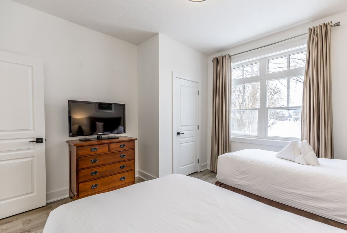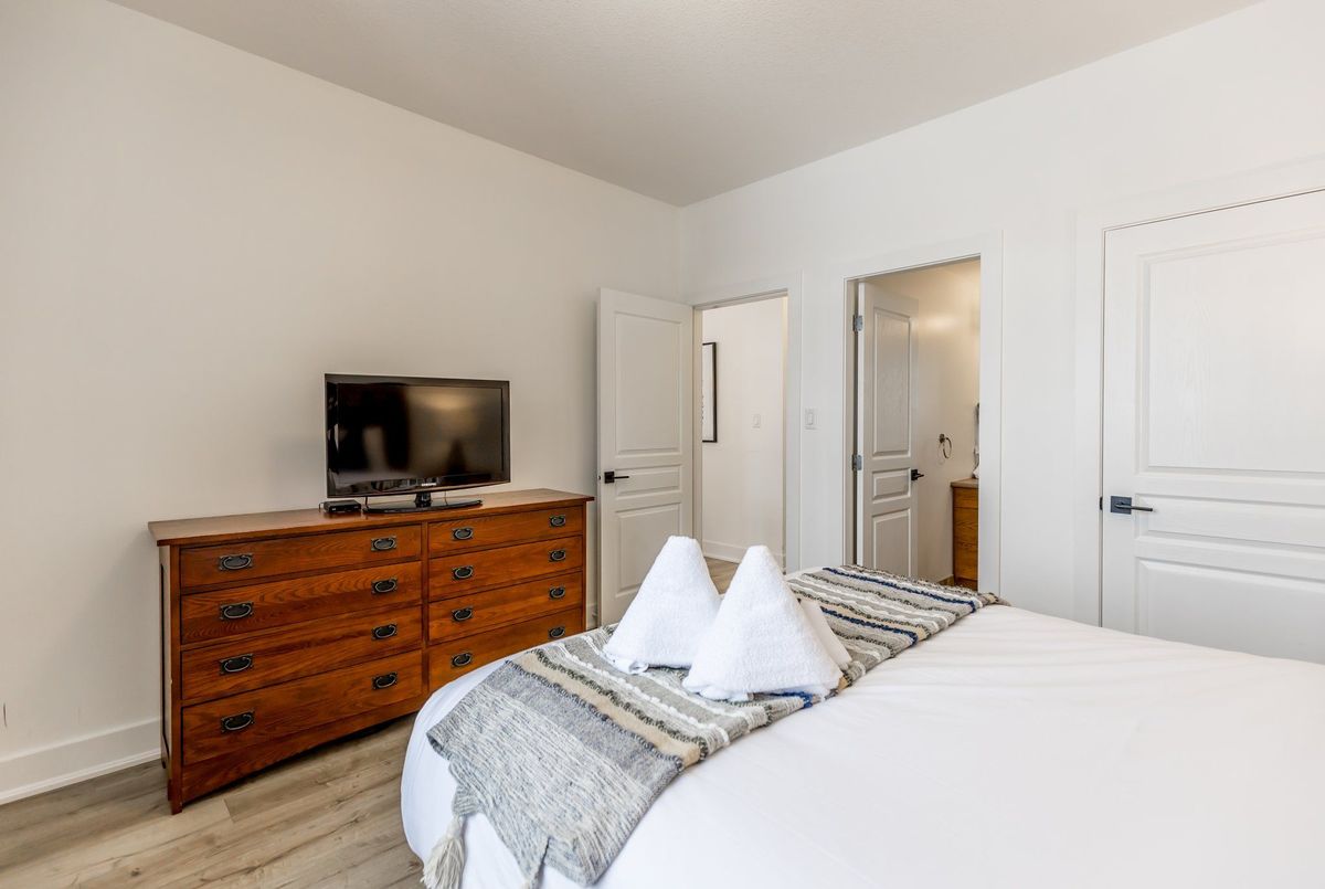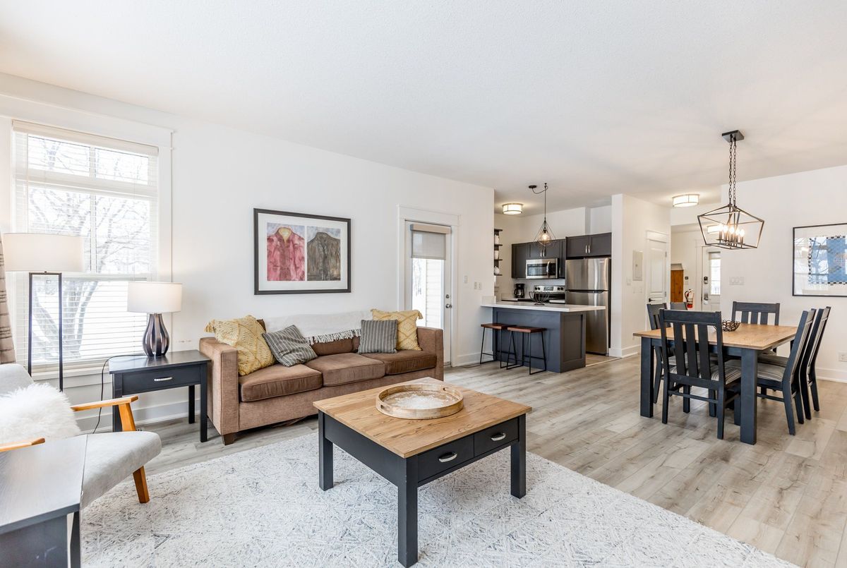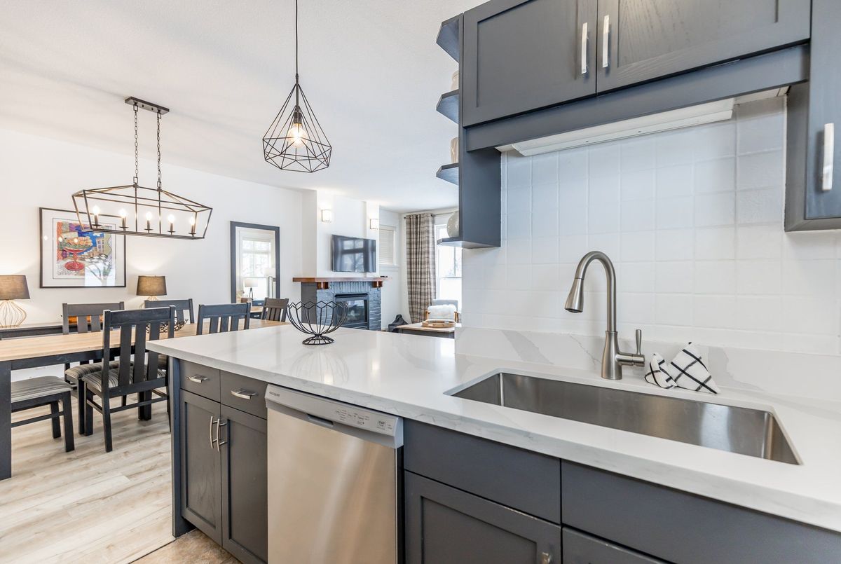 Experience True Four-Season Living at Blue Mountains Rivergrass Community! Welcome to this beautifully updated ground-floor end unit in the highly sought-after Rivergrass community at Blue Mountain. Fully furnished and move-in ready, this turnkey property is the perfect blend of personal retreat and smart investment opportunity. Whether you're seeking a year-round residence, a weekend getaway, or a profitable short-term rental, this unique unit offers flexibility and ease. As part of the rental program, owners can earn up to $60,000 annually in gross income with full property management services including booking, guest communication, cleaning, and maintenance. Simply let the team know when you want to enjoy it yourself, and they'll have everything ready for your arrival. Inside, you'll find a bright, open-concept layout with 2 spacious bedrooms, 2 full bathrooms, and generous living spaces. The south-facing living room features oversized windows and a cozy gas fireplace, perfect for après-ski relaxation. The adjacent dining area flows seamlessly into the modern kitchen ideal for entertaining or family meals. Step outside to your wraparound patio, perfect for BBQs and unwinding any time of year. Just steps away are the year-round hot tub and seasonal outdoor pool, offering resort-style amenities right at your doorstep. Additional highlights include: Private exterior storage closet, only a 10-minute walk to Blue Mountain Village, shuttle service available directly from your door, close proximity to Monterra Golf, Blue Mountain Resort, and the private Blue Mountain Beach Club. This is the closest unit to the Blue Mountain shuttle stop, making it even more convenient for guests and owners alike.