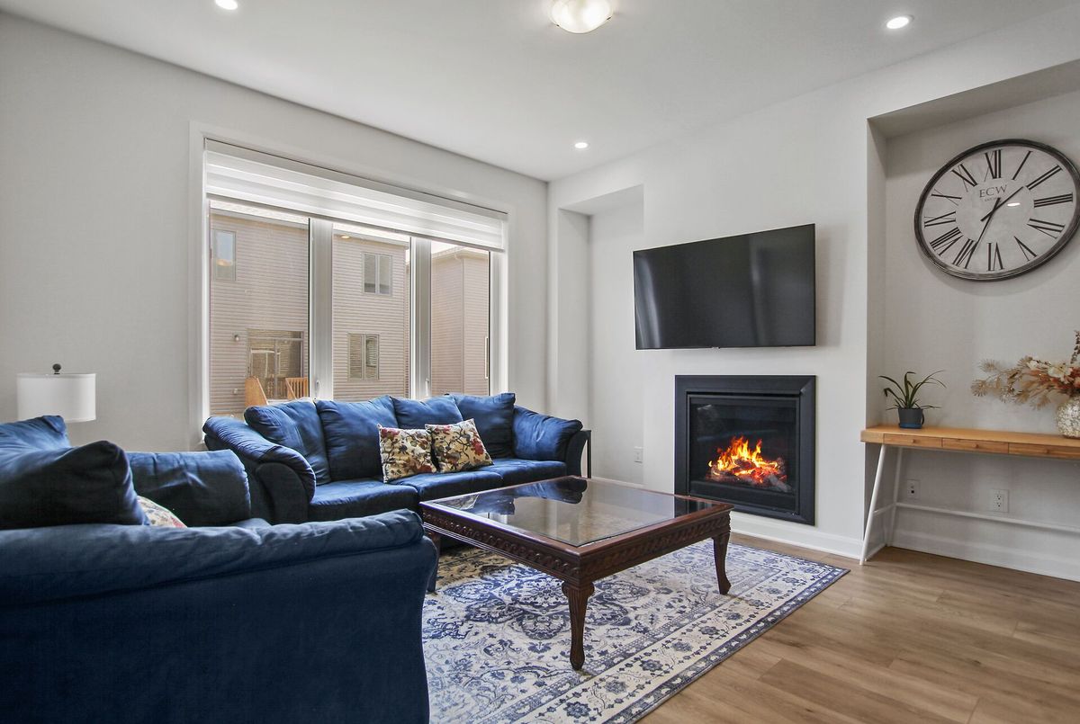Beautiful four bedroom, four bathroom single-family home in a vibrant Kanata North community close to parks, schools, and amenities. This spacious home features a large foyer with walk-in closet and powder room, quality hardwood floors throughout the main level, open-concept living and dining areas with gas fireplace, and a generous eat-in kitchen. Upstairs boasts a large primary suite with hardwood floors, walk-in closet, and ensuite with glass shower and vanity, plus three additional bright bedrooms with ample closet space and a main bath with tub shower and ceramic surround. Convenient second-floor laundry with front-facing machines. The finished basement includes a large rec room, den, and storage, an ideal layout for growing families in a sought-after location.