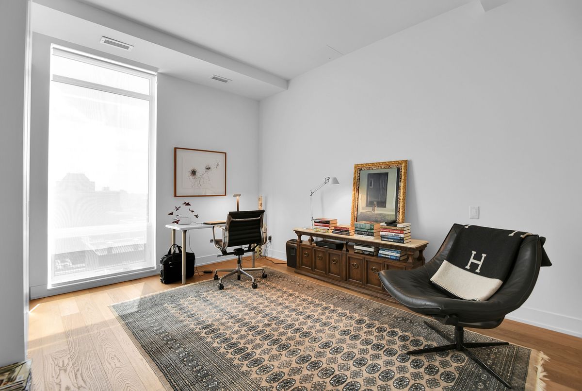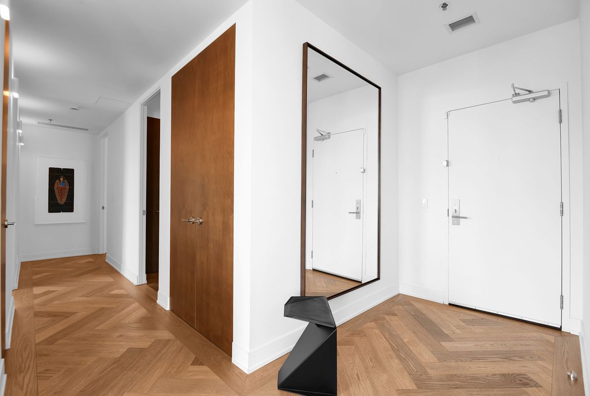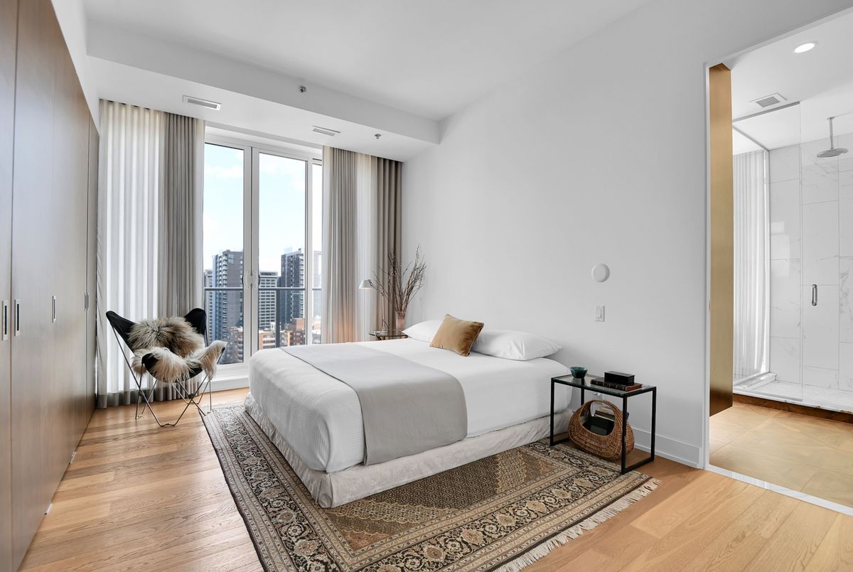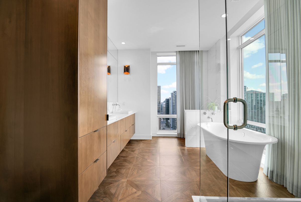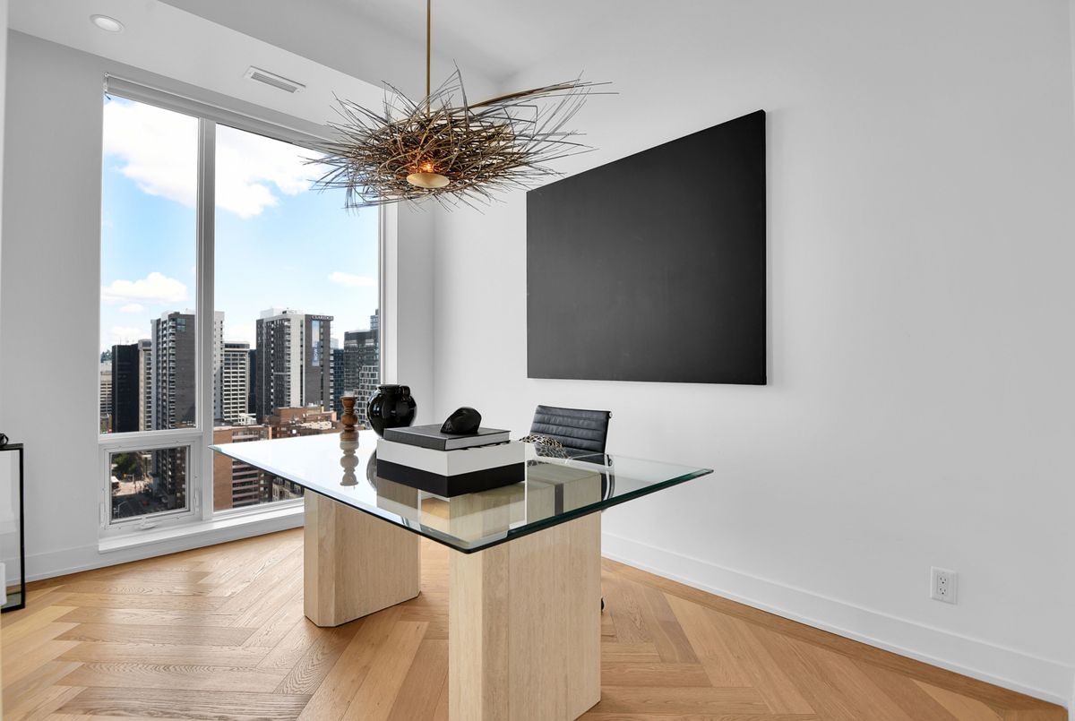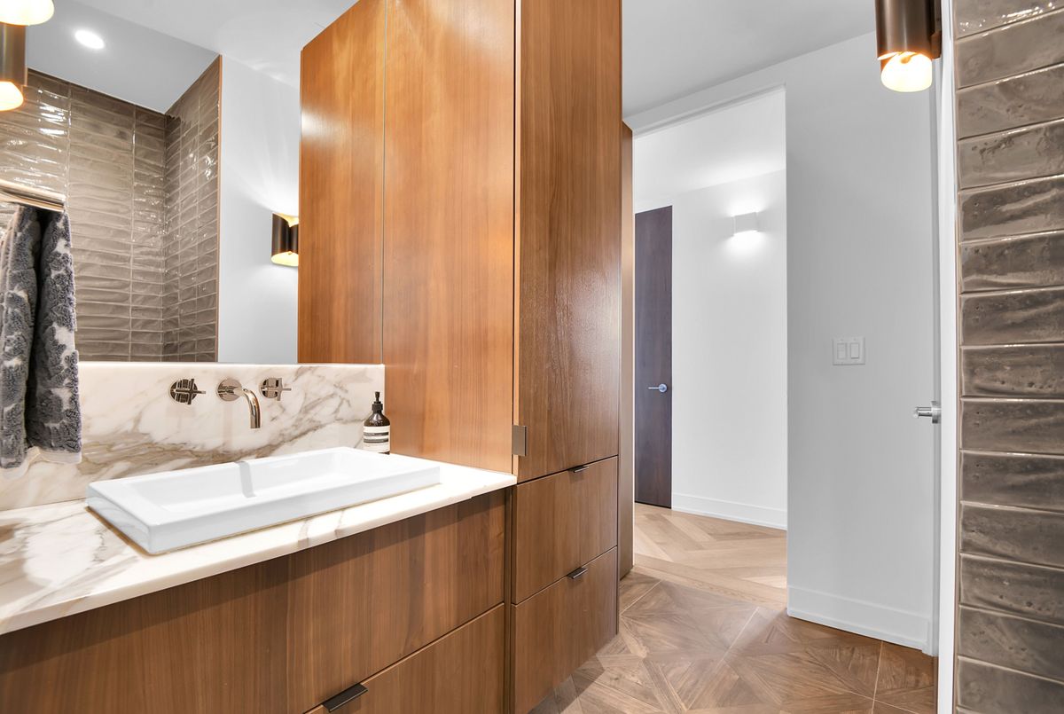 Perched high above the city with extensive private outdoor space, this one-of-a-kind condo with a phenomenal sky terrace offers panoramic views of the Ottawa River, Parliament Hill, the Supreme Court, and the Gatineau Hills. From golden sunsets to views of iconic Canadian architecture, the backdrop here is nothing short of extraordinary. The expansive terrace is designed for true outdoor living, complete with a built-in barbecue and separate dining and lounging areas. Thoughtful landscaping creates privacy, while framing sweeping vistas. Inside, the residence is equally remarkable. Sophisticated herringbone white oak wood floors, soaring 8-foot-high door frames, and custom walnut doors set an unmistakable tone of sophistication. The open living room flows seamlessly into the dining space and a jaw-dropping kitchen anchored by a 13-foot long centre island with marble counters and backsplash. High-end appliances including a full 24-inch refrigerator and separate freezer, induction cooktop and professional hood fan make this space a dream for both entertaining and everyday living. There is also a stunning feature built-in coffee bar with storage. The private quarters in this condo are just as refined. The primary suite features a wall of custom walnut closets, a second walk-in closet, and its own balcony. The ensuite bathroom is spa-like, with a soaking tub, walk-in glass shower, and double vanity. A second bedroom, with direct ensuite access to a convertible powder/full bathroom. With two parking spaces (both with EV chargers), two storage lockers - including one conveniently located near the unit - and only two residences on the floor, this condo offers both exclusivity and ease. Every detail has been meticulously designed for modern luxury living.