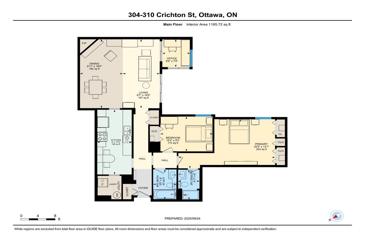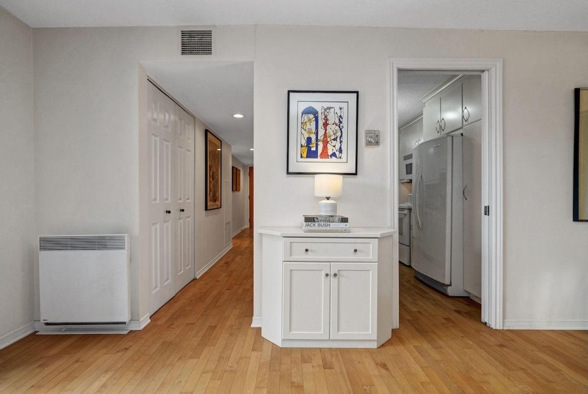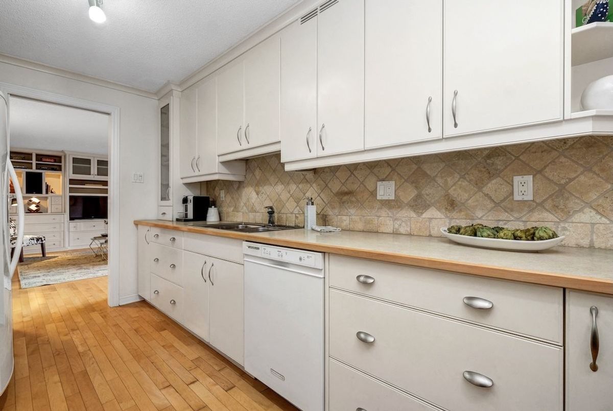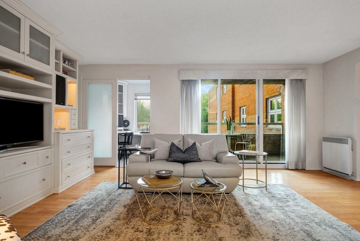 Ideally located across the street from the NCC Park, the Rideau River and steps to Beechwood Avenue in the historical district of New Edinburgh, this turn-key 1322 sq.ft 2bed+den/2bath condominium is the perfect fit for the walkable rightsizer who wants a livable apartment, a functional L-Shape floor-plan, in a low-rise intimate concrete brick building, with timeless finishes, large living spaces and lovely west views of the courtyard and greenspace across the street. Warm and inviting front foyer. Bright and airy open-concept main living area with hardwood floors, wall-to-wall west-facing windows, custom built-ins with recessed lighting, cozy wood burning fireplace, and patio door leading to oversized covered balcony with stunning sight-lines. Lovely den alcove perfect solution for the home office with built-in desk and storage. Renovated eat-in kitchen with timeless cabinetry, ceramic backsplash, and tons of storage and counter space. Spacious primary bedroom with south exposure, wall-to-wall closets with custom shelving solutions, and an updated 3-piece ensuite with glass enclosed walk-in shower and oversized vanity with stone countertops. Well-proportioned secondary bedroom. Renovated second full bathroom with soaker tub with ceramic tile surround and large vanity. Practical laundry room with extra storage. Multiple closets in hallways for all storage needs. Central A/C. 1 underground parking with direct access to storage locker. Pet friendly building. Leave the car at home, take a stroll along the River, spoil your dog at Stanley Park, walk down Beechwood Avenue where there's an abundance of local shops, restaurant and tasteful retail options, go for a bike ride onto Ottawa's expansive bicycle path network, and then come home to your quiet abode.