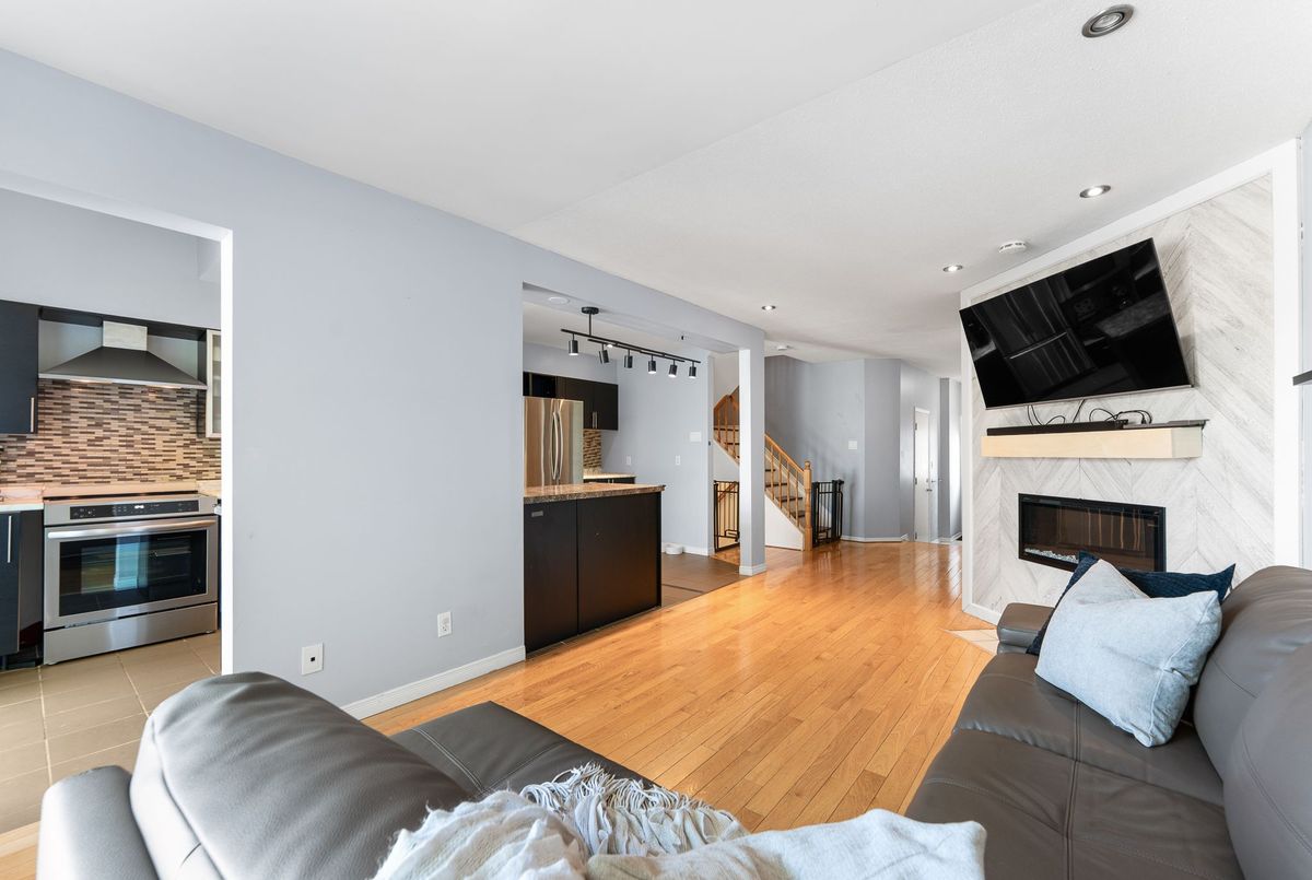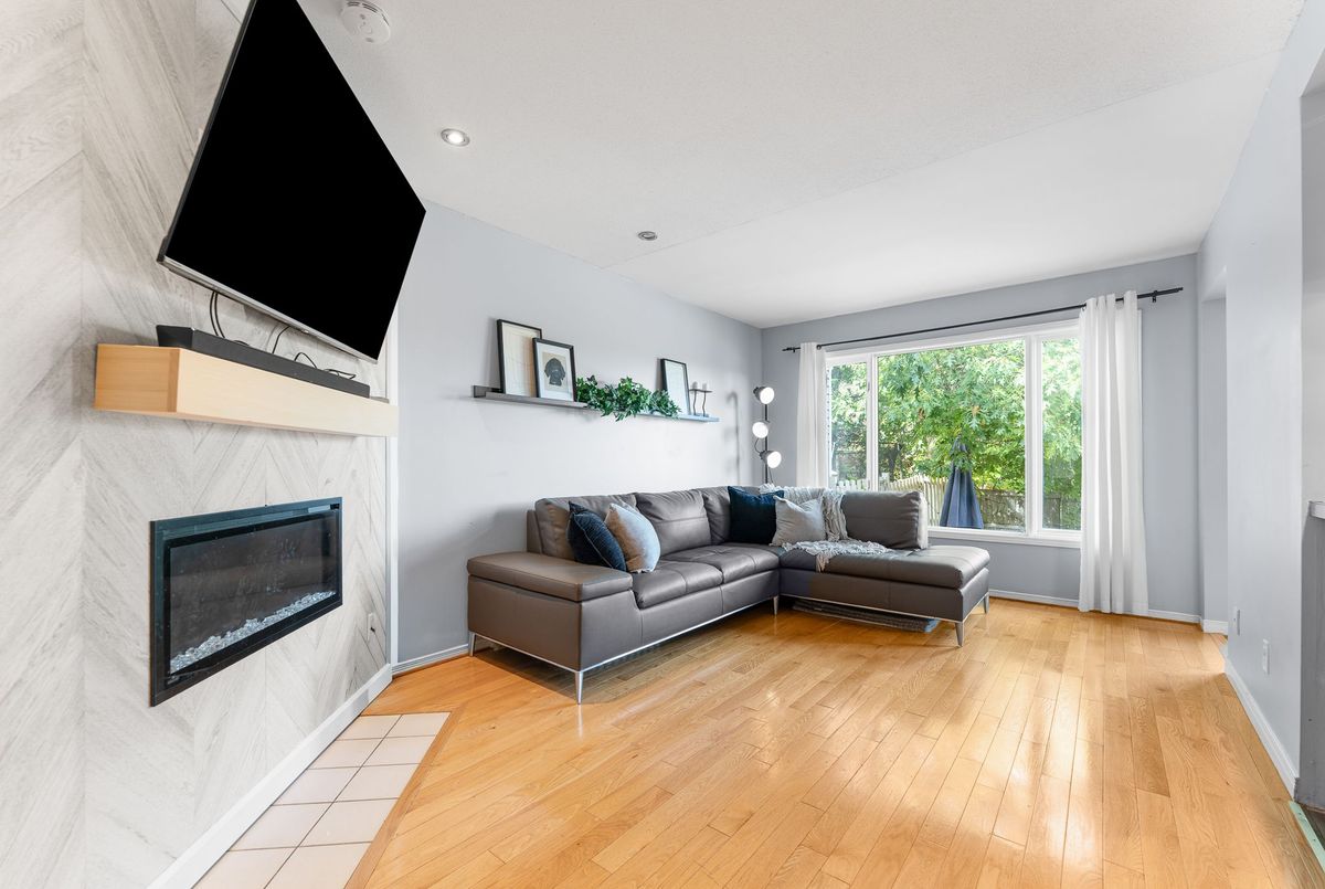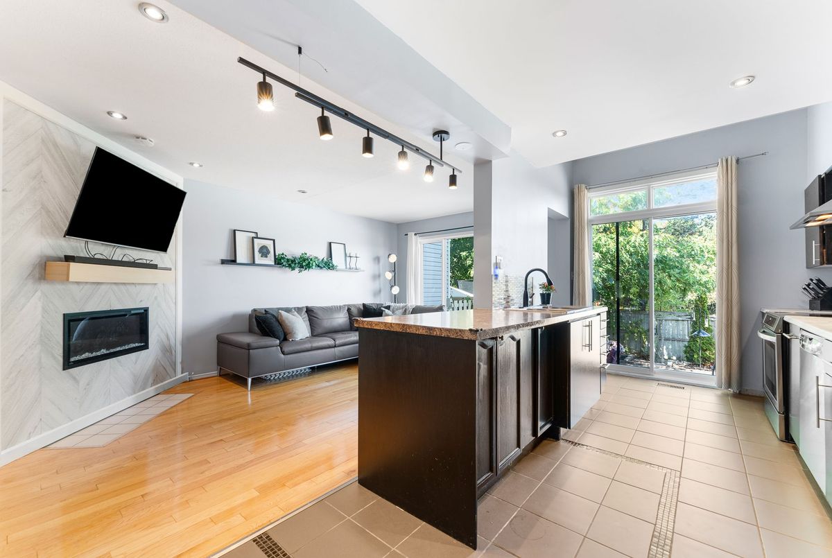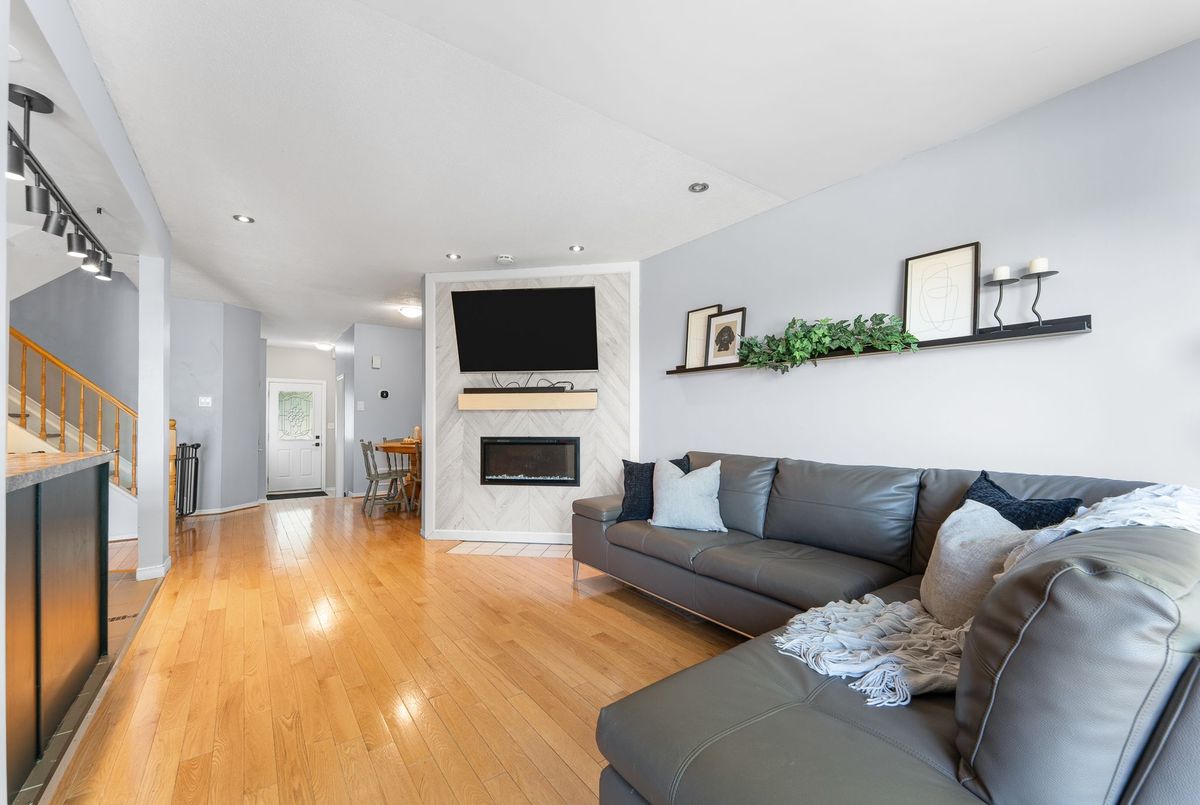 Welcome to this well-situated 3-bedroom, 2.5-bath townhome in the heart of Kanata. Perfectly located near transit, schools, shopping, and everyday conveniences, this home offers both comfort and potential. The open-concept main floor features a bright living and dining area, complete with an updated fireplace that adds warmth and character. The functional kitchen overlooks the space, making it easy to stay connected while entertaining. Upstairs, the spacious primary bedroom includes a 4pc ensuite and walk-in closet, complemented by two additional bedrooms and a full bathroom. The lower level offers storage and a versatile recreation room ideal for a home office, playroom, or media space. Enjoy added privacy with no rear neighbours and a low-maintenance yard.