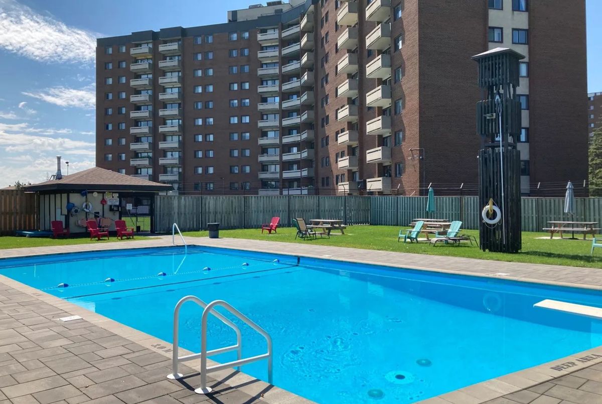 Spacious corner unit on the 8th floor of a well-managed building directly across from Andrew Haydon Park and the Ottawa River. This 2-bedroom condo features a functional layout with a large living/dining area, separate kitchen, and two well-sized bedrooms. The condo fee covers heat, hydro, water, building insurance, underground parking, and storage locker excellent value for owners or investors. Residents enjoy access to a rooftop terrace with sweeping river views, an outdoor pool, sauna, guest suites, workshop, fitness room, pool/dart room, bike storage, car wash, and convenient laundry facilities on every floor. With nearby shopping at Bayshore, public transit, bike paths, and quick highway access, this location offers a great balance of lifestyle and convenience.