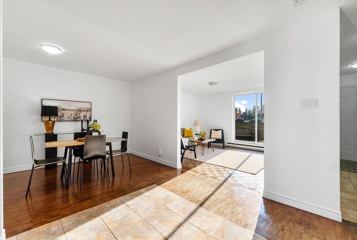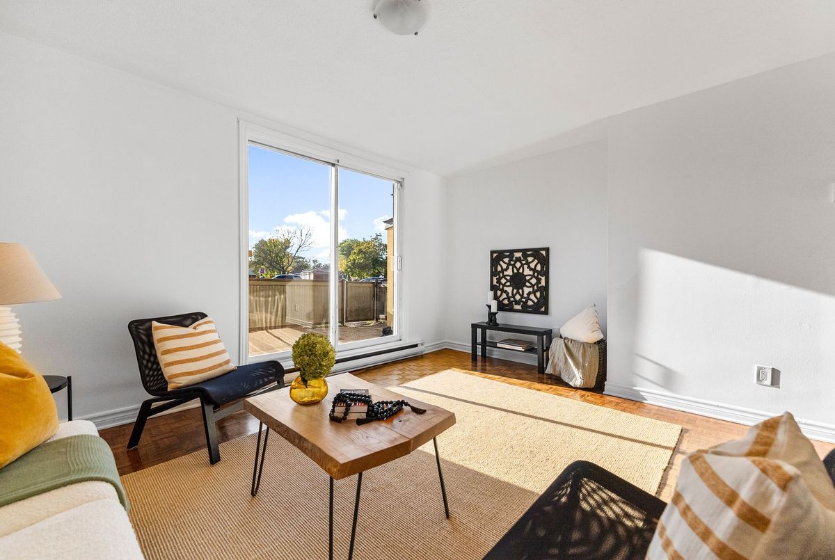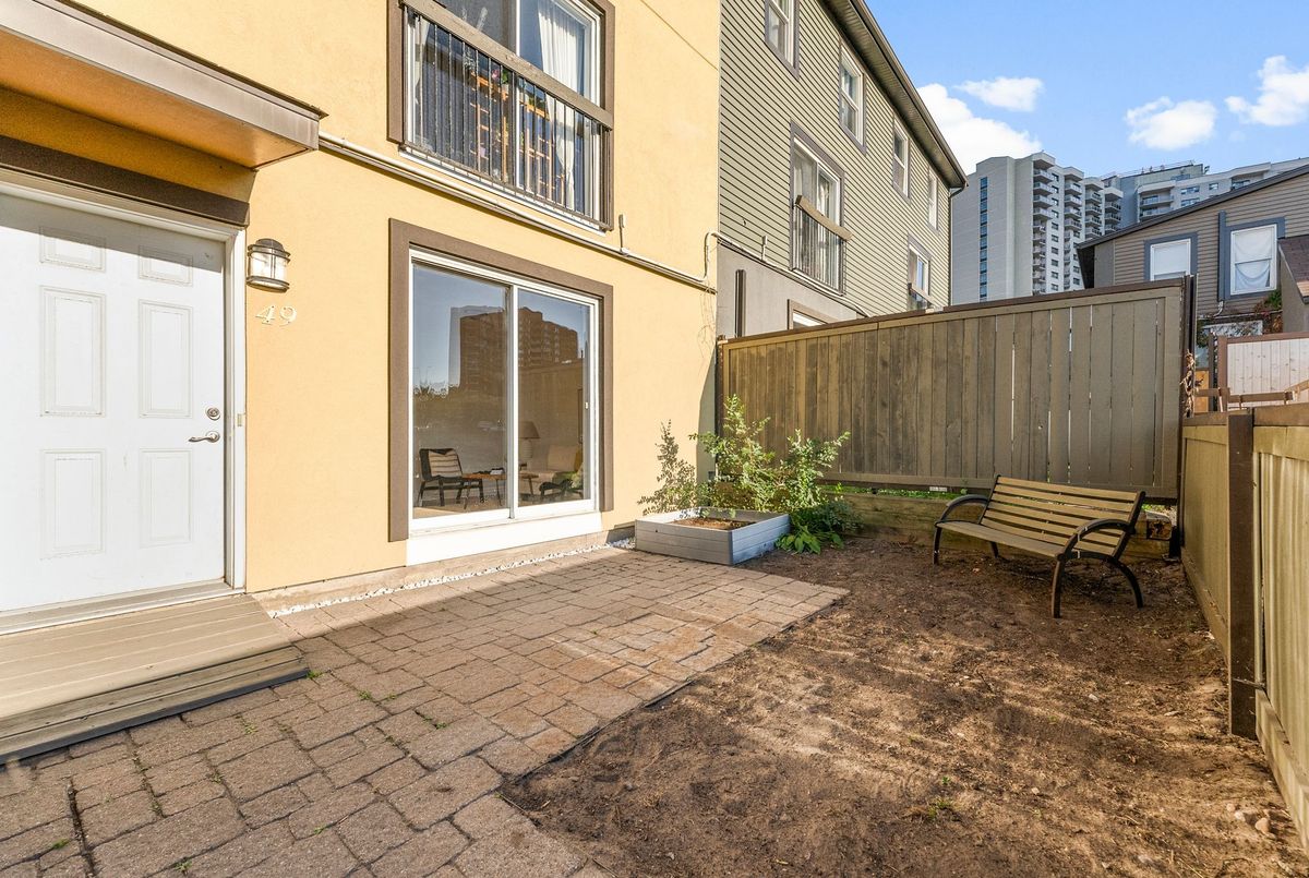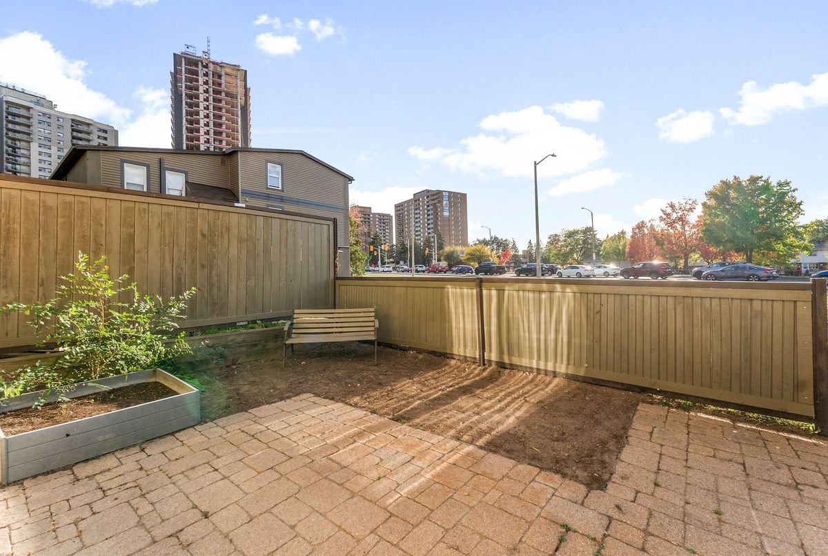 Attention First Time Buyers, Investors, downsizer's, or anyone seeking low-maintenance living in a convenient, central location. Freshly painted and well maintained ground level condo is move in ready! Step inside from the fenced patio area to ceramic tiled flooring and entrance closet nicely separated from the living area. This foyer opens to the well sized kitchen with its ample cabinets and perfect space for a future breakfast island! A large dining area nicely off the kitchen as well as a large living area - perfect open concept with a bit of separation! The updated 4-piece bathroom conveniently located across from the two bedrooms; primary bedroom with a wall of closets and secondary bedroom also includes a large closet. Warm toned flooring throughout the living spaces and ceramic tile in the wet areas, makes it a low maintenance unit. A suprisingly sized separate laundry room with newer appliances oversized - great for its added storage. A "flex" room off the laundry area that can serve as a craft space, home office, gaming nook, or extra storage whatever fits your lifestyle best; is an extra bonus space! Sliding patio doors lead to a private, fenced-in patio partially landscaped awaiting your personal vision. There is exterior storage just outside the unit for bikes, tools, or seasonal items. Enjoy the best of both worlds: a quiet setting with no units directly in front, yet only steps from amenities, public transit, and minutes to the Queensway. With lots of visitor parking and one dedicated parking spot included, this home truly checks all the boxes for easy, enjoyable living at an affordable price.