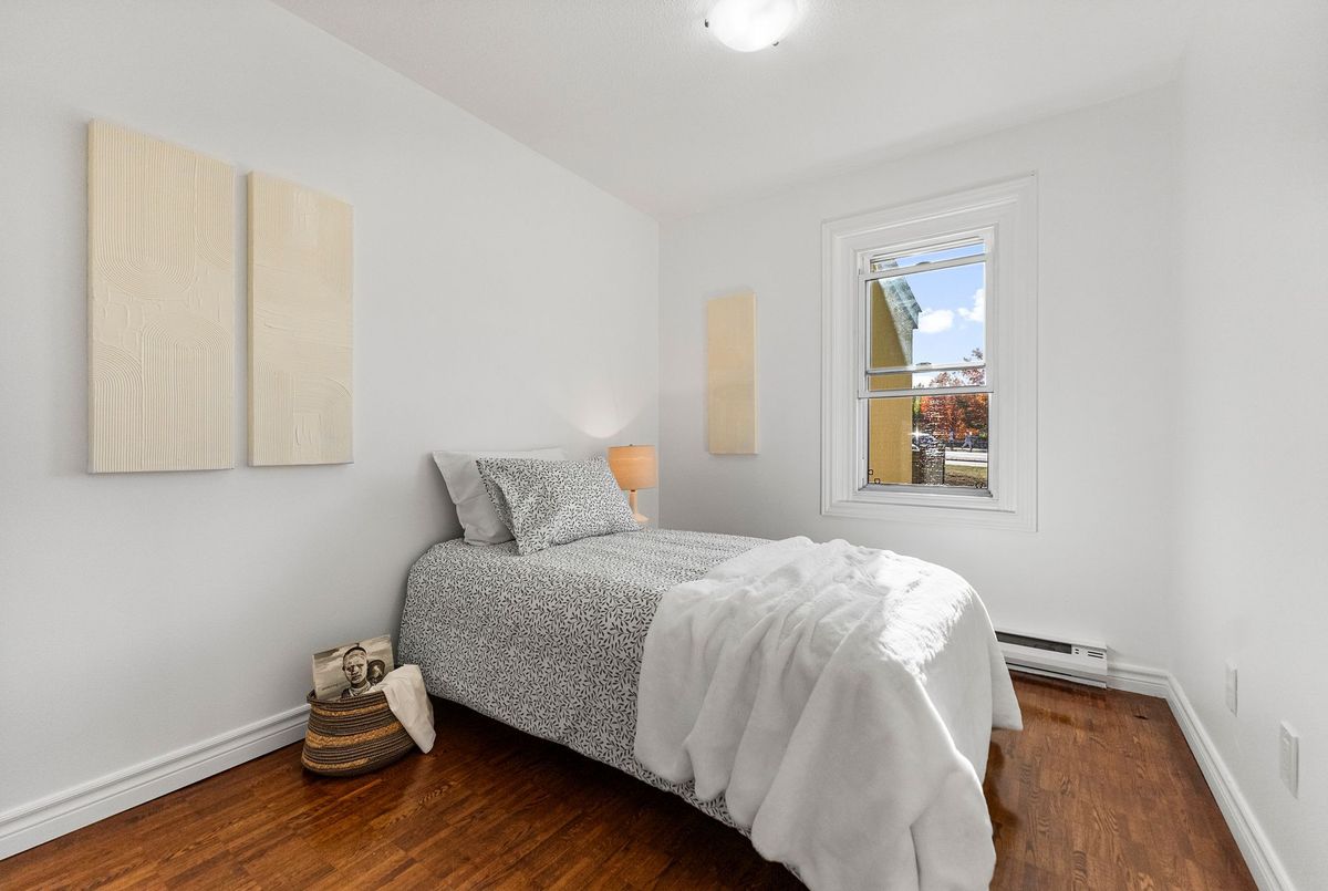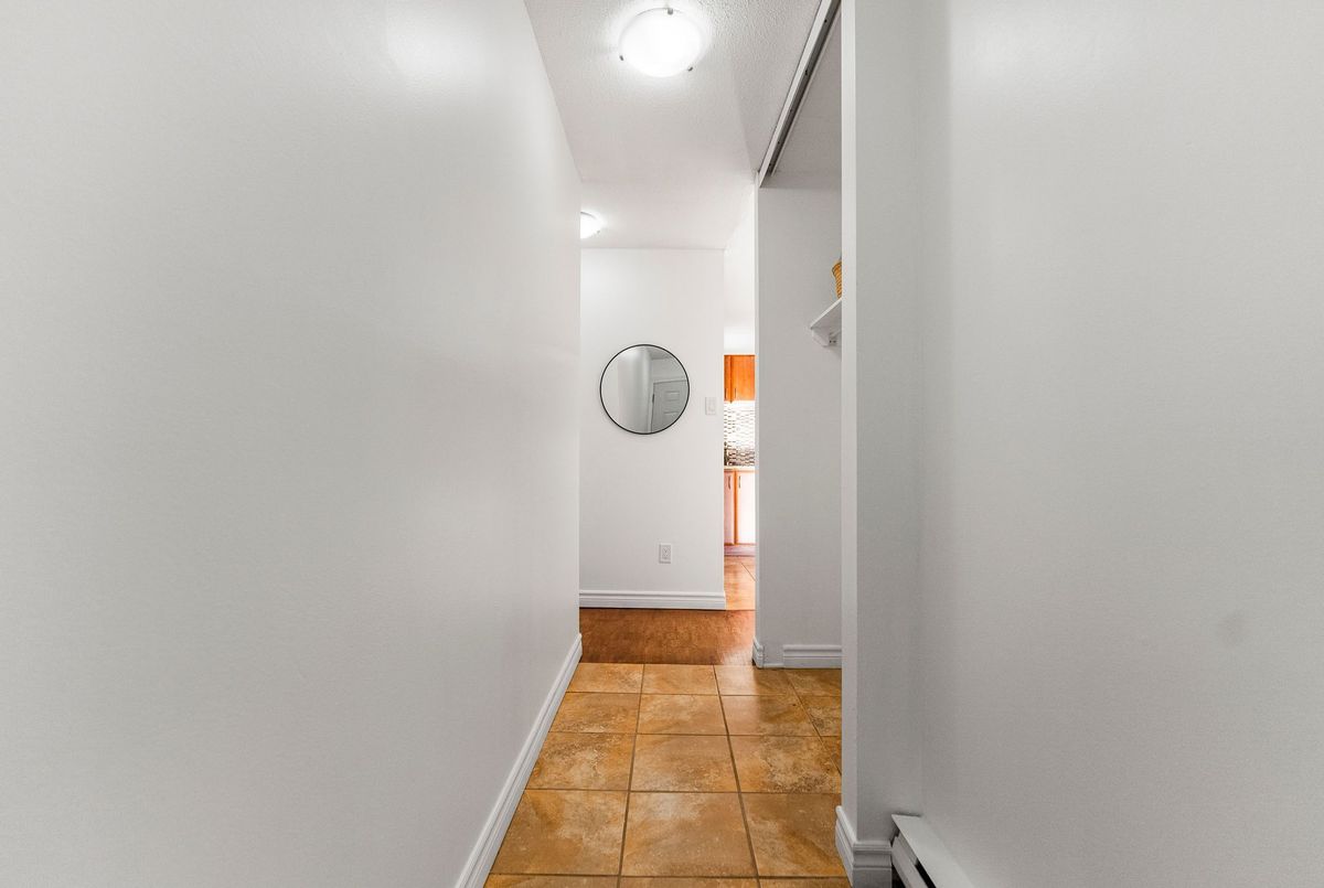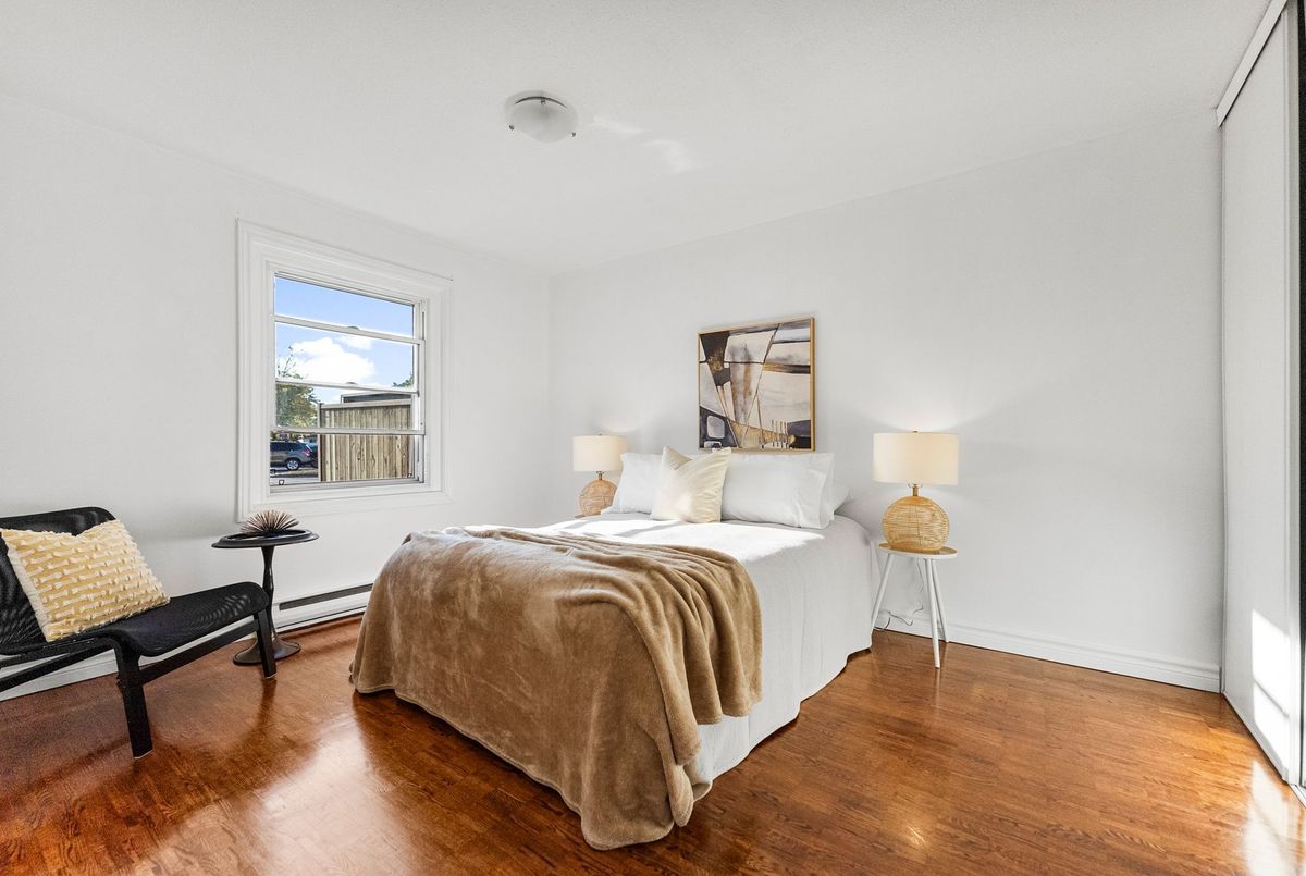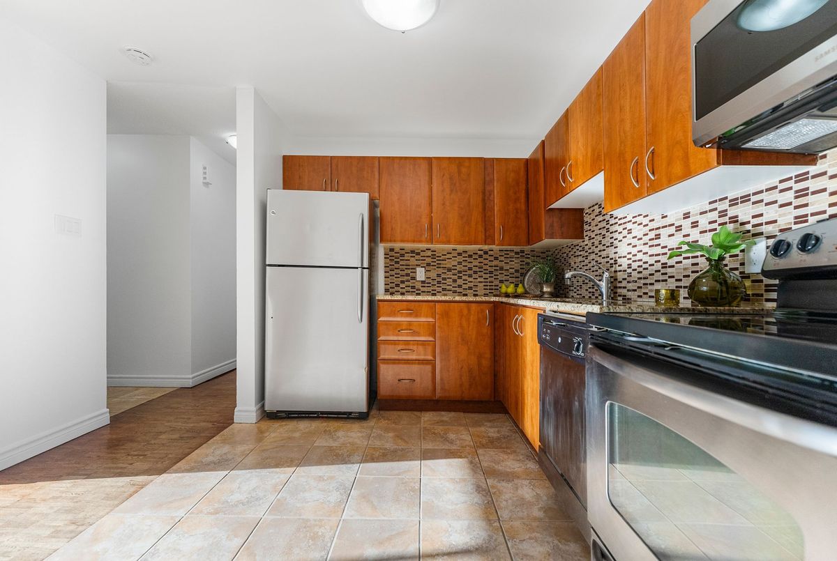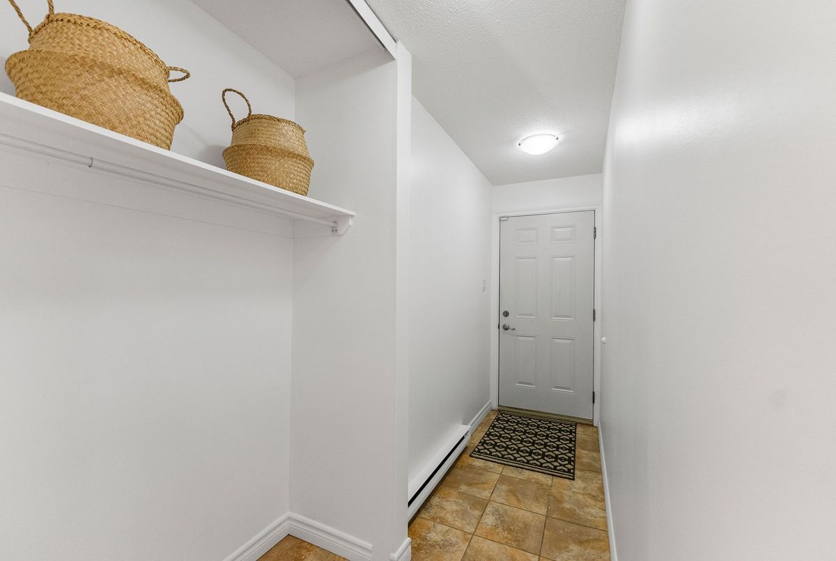 Attention First Time Buyers, Investors, downsizer's, or anyone seeking low-maintenance living in a convenient, central location. Freshly painted and well maintained ground level condo is move in ready! Step inside from the fenced patio area to ceramic tiled flooring and entrance closet nicely separated from the living area. This foyer opens to the well sized kitchen with its ample cabinets and perfect space for a future breakfast island! A large dining area nicely off the kitchen as well as a large living area - perfect open concept with a bit of separation! The updated 4-piece bathroom conveniently located across from the two bedrooms; primary bedroom with a wall of closets and secondary bedroom also includes a large closet. Warm toned flooring throughout the living spaces and ceramic tile in the wet areas, makes it a low maintenance unit. A suprisingly sized separate laundry room with newer appliances oversized - great for its added storage. A "flex" room off the laundry area that can serve as a craft space, home office, gaming nook, or extra storage whatever fits your lifestyle best; is an extra bonus space! Sliding patio doors lead to a private, fenced-in patio partially landscaped awaiting your personal vision. There is exterior storage just outside the unit for bikes, tools, or seasonal items. Enjoy the best of both worlds: a quiet setting with no units directly in front, yet only steps from amenities, public transit, and minutes to the Queensway. With lots of visitor parking and one dedicated parking spot included, this home truly checks all the boxes for easy, enjoyable living at an affordable price.