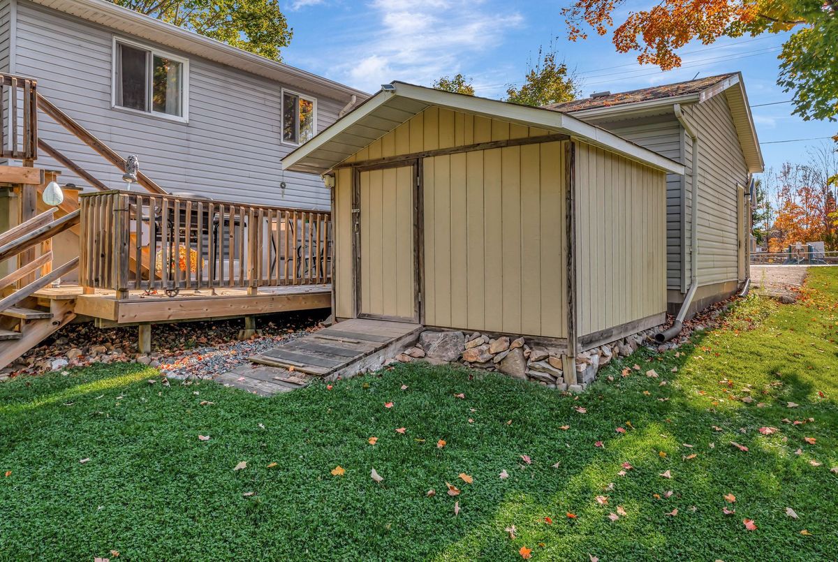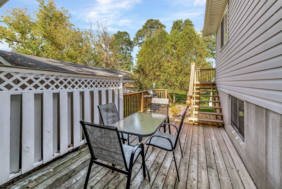 This meticulously maintained property is located in Madoc and is within walking distance to all amenities in the heart of the village, including a daycare and public school closeby, perfect for families. This home offers a bright and spacious foyer leading to a semi-open concept layout on the main level, which features 3 bedrooms and 1 bathroom. The main area is enhanced by hardwood flooring and wood trim work, creating a welcoming living space ideal for both everyday living and entertaining. The primary bedroom links to the main bathroom for functionality and includes direct access to a sunroom overlooking your private backyard space. The lower-level rec room features a gas fireplace and offers additional living space with a fourth bedroom and a second bathroom, ideal for guests or family use. Outdoors, you have a bright welcoming porch with manicured front lawn or enjoy the two-tier deck out back overlooking your green space bordered by a mature cedar fence line and no immediate rear neighbours. A paved driveway provides ample parking for 4 vehicles leading to the attached garage. The home has been freshly painted throughout, updated mechanical systems and water treatment systems offer peace of mind and makes this property move-in ready.