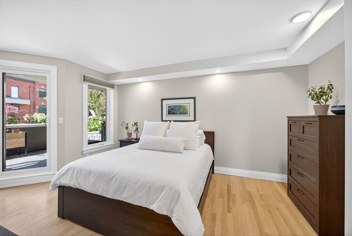 Urban Living in the Golden Triangle! Outstanding location, overlooking the Rideau Canal. Move right into this amazingly large, sun filled condominium has undergone a complete renovation, no detail was overlooked. Immaculate and stylish, this unit is a stunner! Low rise building, designed by Barry Hobin and rarely for sale. Offering a perfect setting for both the discerning urban professional or those seeking the joys of retirement living. Approx. 1500 sq. ft, designed to embrace the surrounding beauty with an array of windows spanning south, and west, ensuring a constant infusion of natural light throughout the day. The flowing layout balances formal and casual living, from the fireplace warmed, living-dining room to the spacious, stylish and beautifully renovated kitchen. The kitchen design cleverly incorporates a quartz topped island, perfect for hosting/entertaining storage/counter and cooking space. The spacious principal suite has a full ensuite, featuring heated floors and walk in shower with lovely glass doors. Large walk-in closet offers amazing storage with full wall of built-in shelving and another full wall of hanging options. A spacious additional bedroom/den, perfect for guests and a renovated full bath, heated floors, complete the wing. In unit laundry with additional storage. A rare combination of great space, natural light and a prime location this home offers the best of Ottawa's urban lifestyle. This is the complete package - with large bedroom suites + 2 stylishly renovated bathrooms, hardwood floors, fireplace, 3 terraces, 1 underground parking & storage locker. With a Bike Score of 99 and Walk Score of 98 (Walker's Paradise), this residence defines convenience and lifestyle. Steps from the Rideau Canal, Elgin Street restaurants and cafés, Farm Boy, the NAC, and Parliament Hill, everything you need is at your doorstep including the LRT and footbridge to the University of Ottawa. Move in ready, immaculate, an exceptional space! 24 hours irr