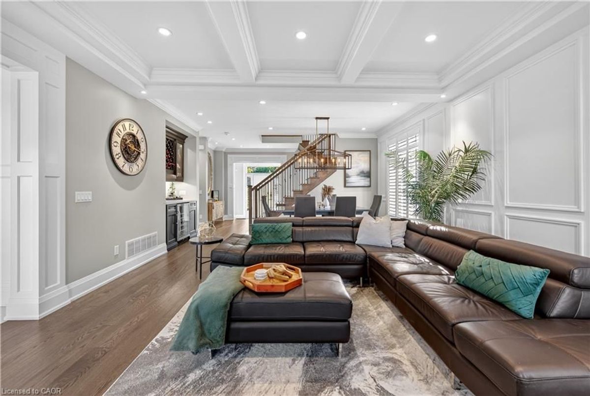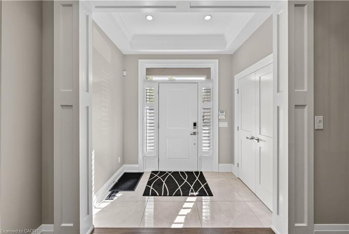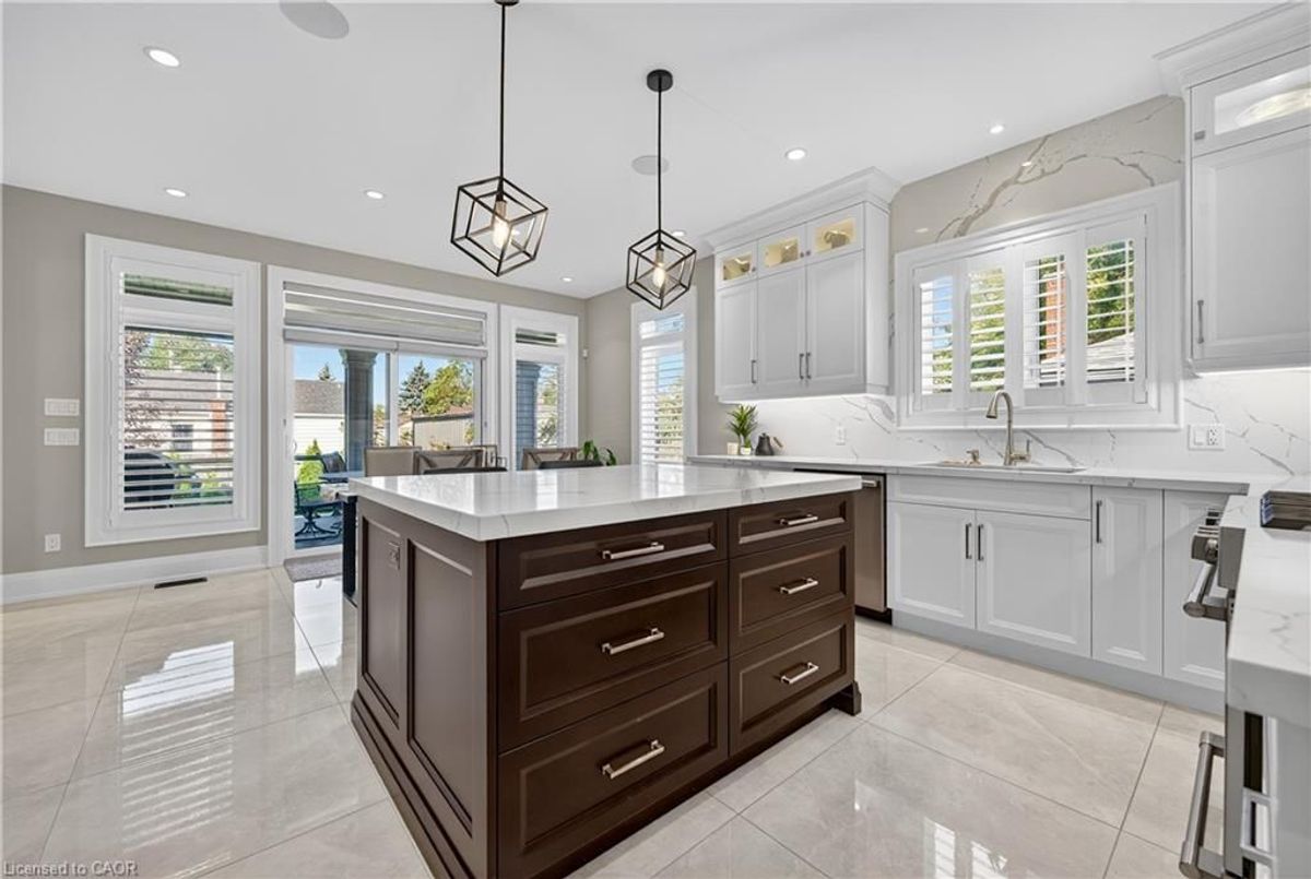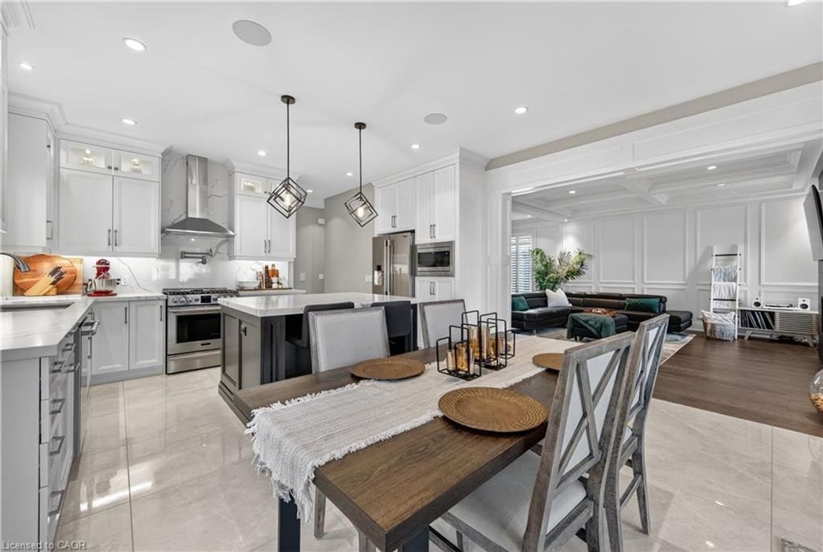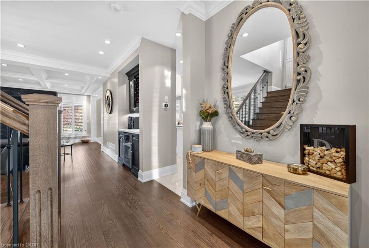 Prepare to be impressed by this meticulously crafted, fully custom 3-bedroom, 2.5-bathroom residence offering 2,531 sq ft of luxurious living on a generous 50x108 ft lot. From the moment you arrive, the home's full brick and stone façade, arched windows, and covered porch speak to the quality and pride of ownership throughout. Inside, every detail is elevated - engineered hardwood and porcelain tile span the entire home. Solid wood interior doors, coffered ceilings, pot lights (including on all 4 sides of the home's exterior), and crown moulding define each space with sophistication. The kitchen is an entertainer's dream, complete with custom cabinetry, quartz countertops, high-end appliances, in-ceiling speakers, and a spacious island. It opens effortlessly to a dining area and large living room anchored by a floor-to-ceiling stone gas fireplace and built-in wet bar. The primary suite is a sanctuary, offering a large walk-in closet with custom cabinetry and a dedicated makeup station. The ensuite bath includes a double vanity, quartz countertops, and a private water closet. Upstairs bathrooms also feature quartz surfaces and private toilet rooms for added convenience. A wide staircase enhances flow, and thoughtful extras include central vac with in-wall hose systems on every level, closet lighting throughout, and California shutters. Step outside to a covered back porch and fully fenced backyard where freshly planted cedars promise enhanced privacy in the seasons to come. The unfinished basement - with its own private side entrance and insulated subfloor - offers endless possibilities. With a double-car garage and four-car driveway, this property checks every box for luxury, comfort, and long-term livability.