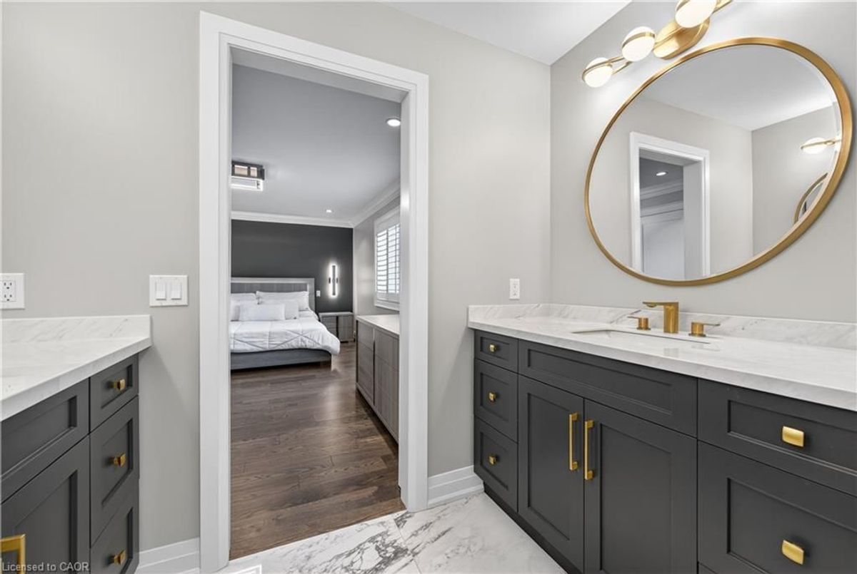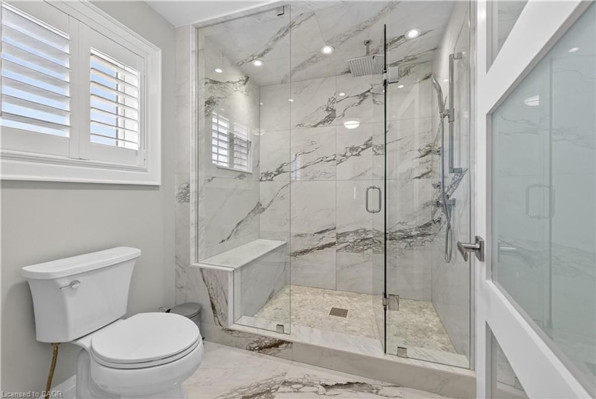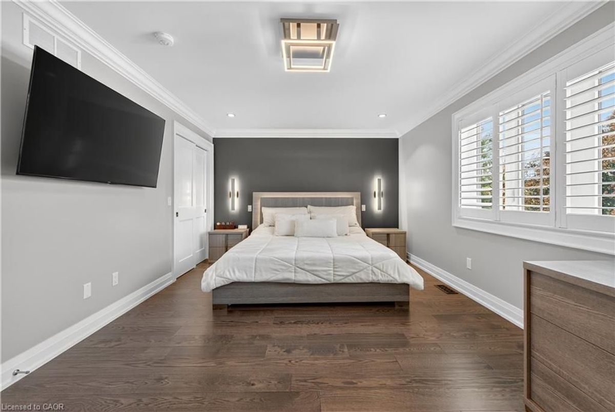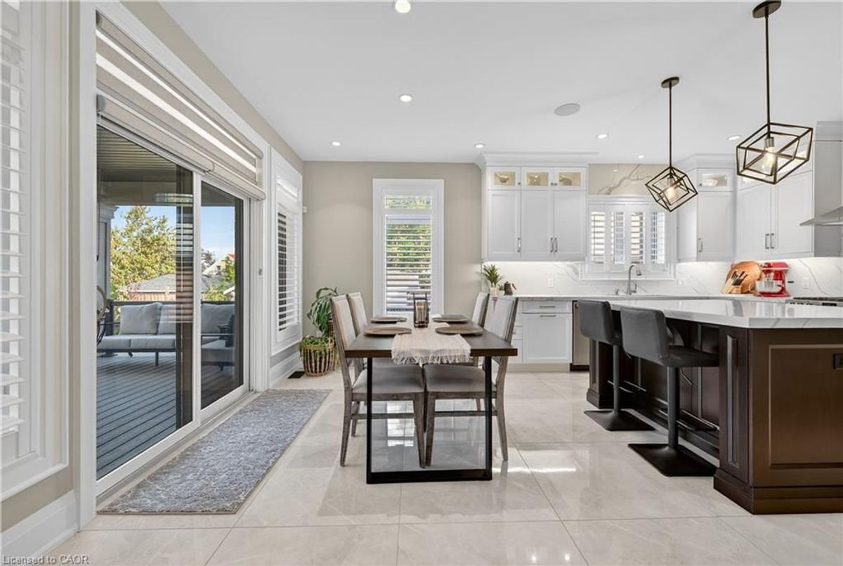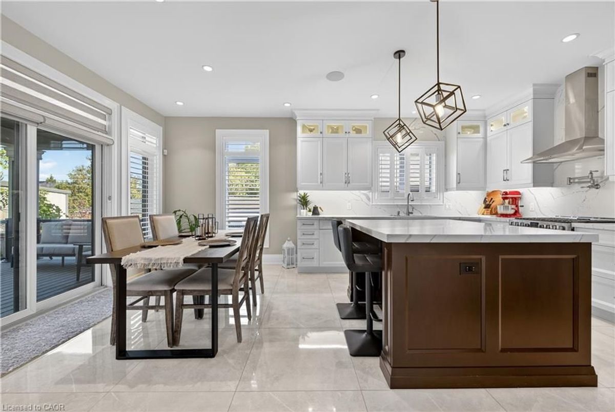 Prepare to be impressed by this meticulously crafted, fully custom 3-bedroom, 2.5-bathroom residence offering 2,531 sq ft of luxurious living on a generous 50x108 ft lot. From the moment you arrive, the home's full brick and stone façade, arched windows, and covered porch speak to the quality and pride of ownership throughout. Inside, every detail is elevated - engineered hardwood and porcelain tile span the entire home. Solid wood interior doors, coffered ceilings, pot lights (including on all 4 sides of the home's exterior), and crown moulding define each space with sophistication. The kitchen is an entertainer's dream, complete with custom cabinetry, quartz countertops, high-end appliances, in-ceiling speakers, and a spacious island. It opens effortlessly to a dining area and large living room anchored by a floor-to-ceiling stone gas fireplace and built-in wet bar. The primary suite is a sanctuary, offering a large walk-in closet with custom cabinetry and a dedicated makeup station. The ensuite bath includes a double vanity, quartz countertops, and a private water closet. Upstairs bathrooms also feature quartz surfaces and private toilet rooms for added convenience. A wide staircase enhances flow, and thoughtful extras include central vac with in-wall hose systems on every level, closet lighting throughout, and California shutters. Step outside to a covered back porch and fully fenced backyard where freshly planted cedars promise enhanced privacy in the seasons to come. The unfinished basement - with its own private side entrance and insulated subfloor - offers endless possibilities. With a double-car garage and four-car driveway, this property checks every box for luxury, comfort, and long-term livability.