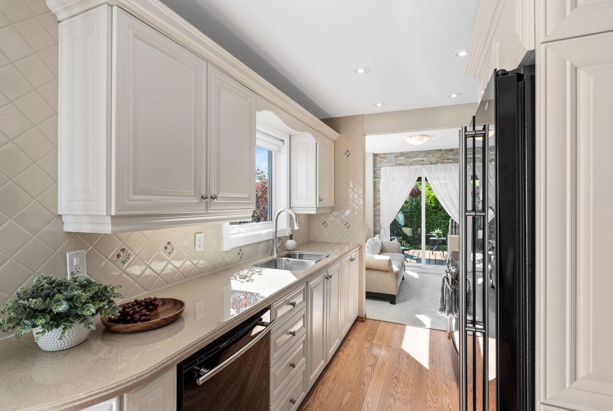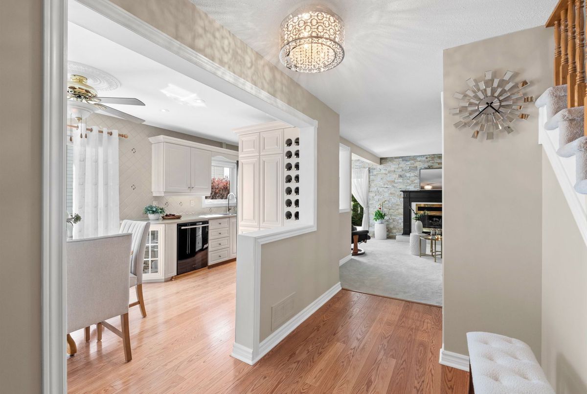 Welcome to this rare Barrhaven find! A 3-bedroom, 3-bath home with no front or rear neighbours and stylish updates throughout. Sunlight pours into the main floor thanks to added windows, while the open kitchen features solid surface counters and a sleek downdraft stove that keeps the space bright and airy. The living rooms gas fireplace and stone feature wall add warmth and style, a design touch carried throughout the home. Upstairs, the oversized primary suite includes a walk-in closet and ensuite, with two more bedrooms perfect for family or guests. The finished lower level is designed for entertaining, complete with a built-in bar, fireplace, and oversized windows. Step outside to a private backyard retreat with covered patio, gas hook-up for bbq, and direct access to walking paths. All of this just minutes to Farm Boy, schools, parks, and shopping. This home truly blends comfort, privacy, and convenience. Carpets 2024, Painted 2025, Custom Kitchen (2017), Roof approx 2016-2017, 24-hour irrevocable on offers.