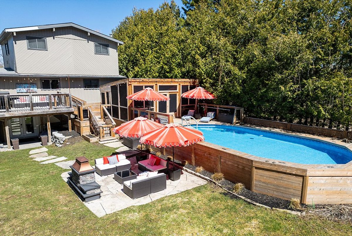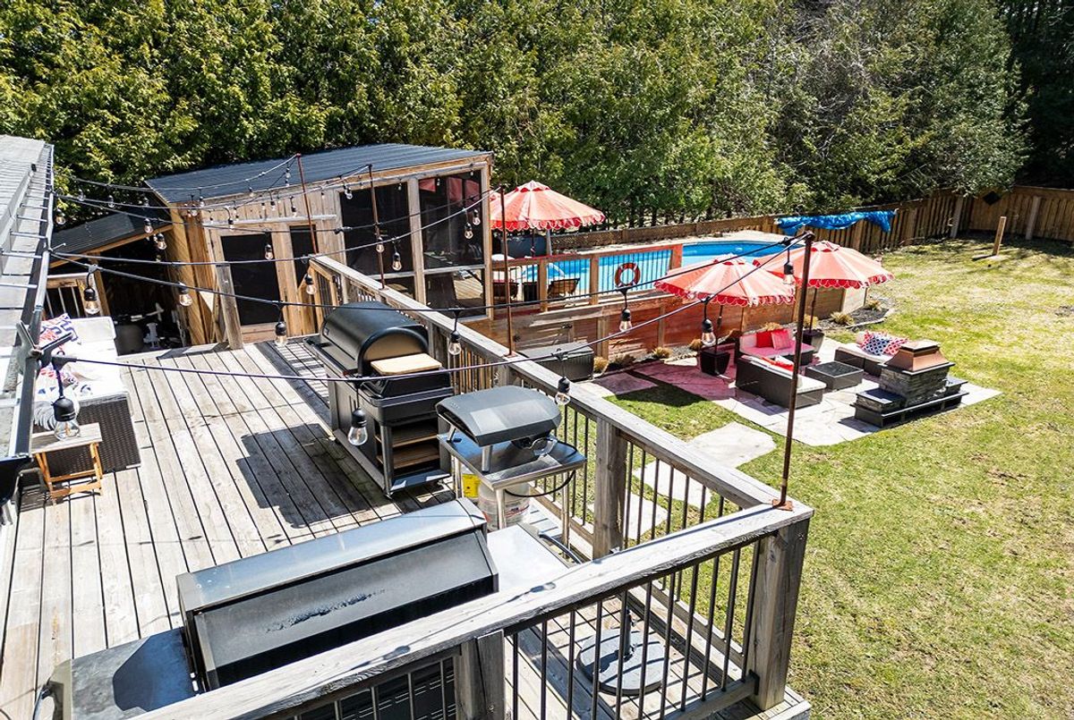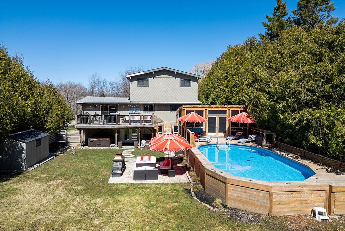 Epic Family Retreat with All the Bells & Whistles - Just Move In! Surrounded by natural beauty and peaceful woodlands, this stunning 5 bedroom retreat is the perfect blend of comfort, style, and functionality ideal for family living or unforgettable weekend escapes. Step inside and be welcomed by gleaming hardwood floors throughout, a bright and freshly updated interior, and modern bathrooms that add a touch of luxury to everyday living. The gourmet kitchen is built for both everyday meals and effortless entertaining, complete with high-end finishes and plenty of space to gather. The expansive Muskoka room offers year-round relaxation with tranquil views and abundant natural light. Enjoy summer days in the above-ground pool with full deck surround, then unwind in the sauna and outdoor hot tub, perfectly positioned for evening relaxation under the stars. A cozy fireplace anchors the living space, creating a warm and inviting atmosphere, while the private, wooded setting ensures peace and seclusion. Outdoors, a large firepit area invites connection and conversation, surrounded by the sights and sounds of nature. Located just steps from the crystal-clear waters of Georgian Bay, and only minutes to the vibrant town of Collingwood, this retreat is also close to premier ski hills, top-rated golf courses, and endless outdoor activities. This exceptional property is being offered fully furnished - just bring your suitcase and settle in. Whether you're seeking a full-time residence or a luxurious getaway, this home delivers space, privacy, and a lifestyle that feels like a permanent vacation. ...