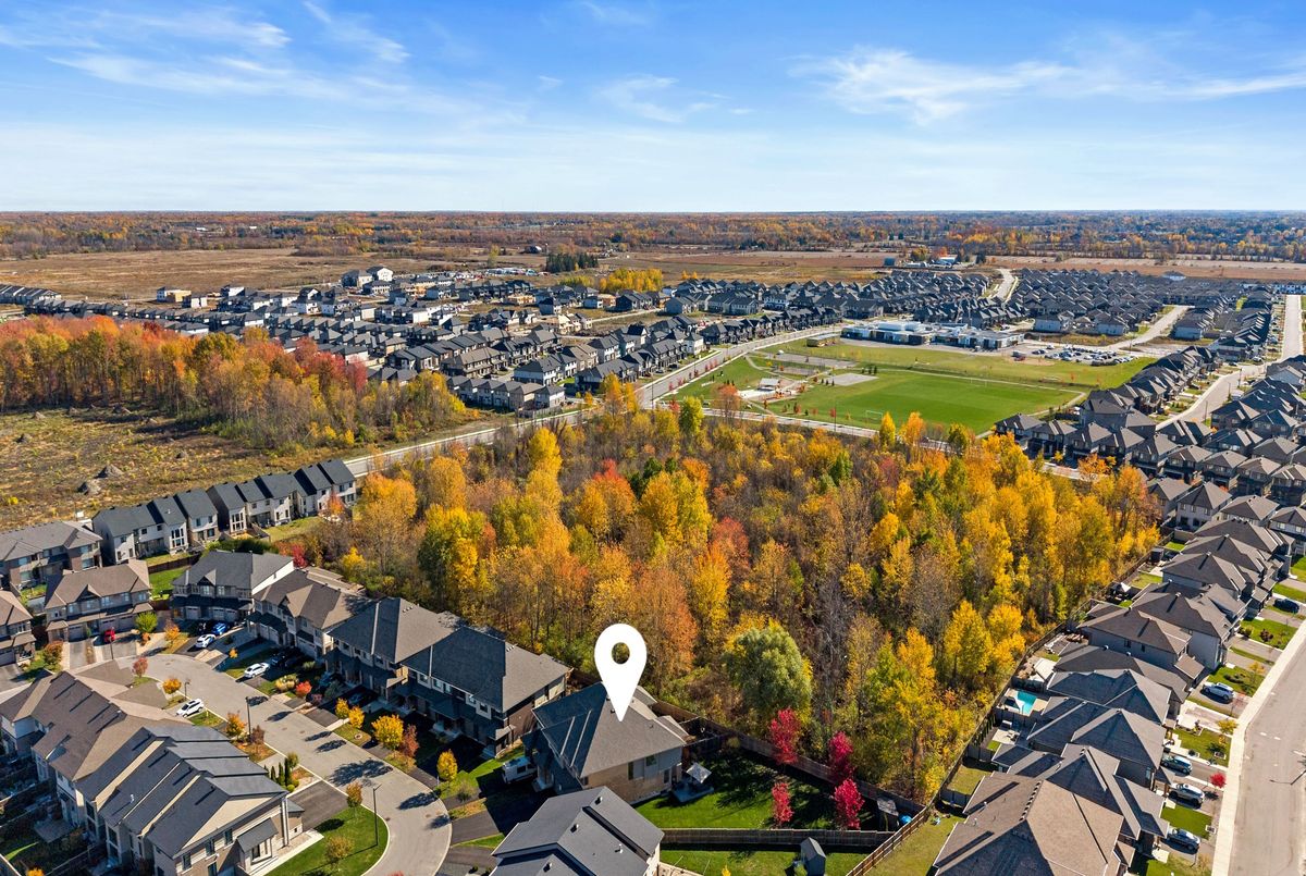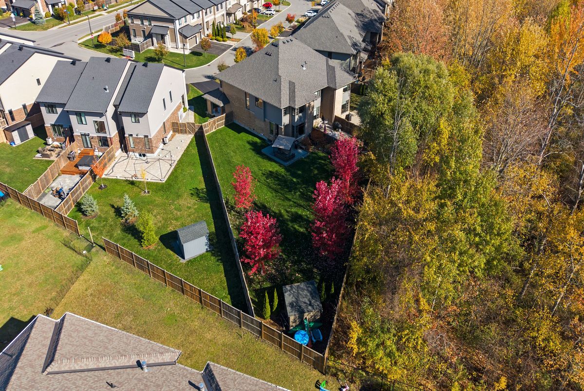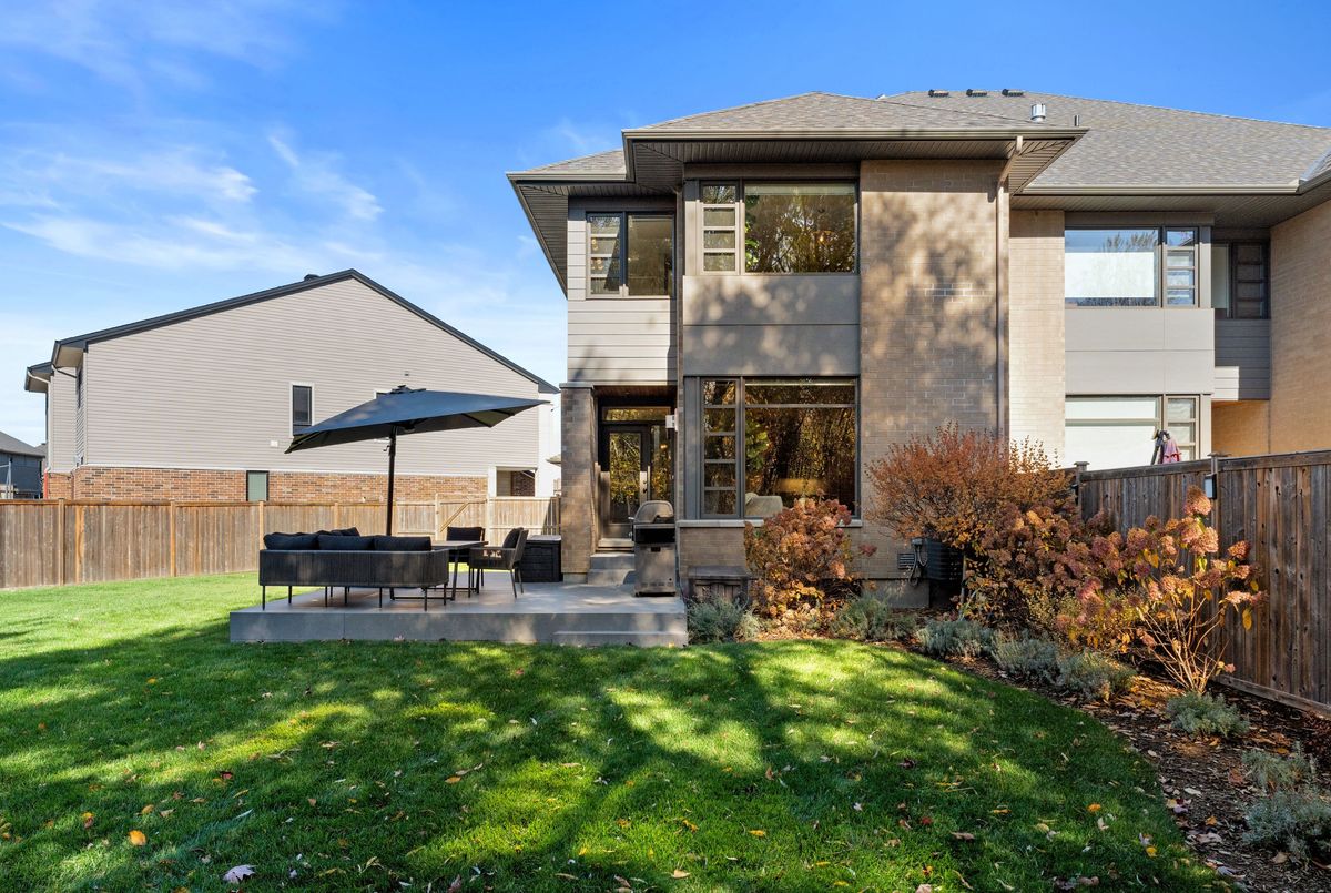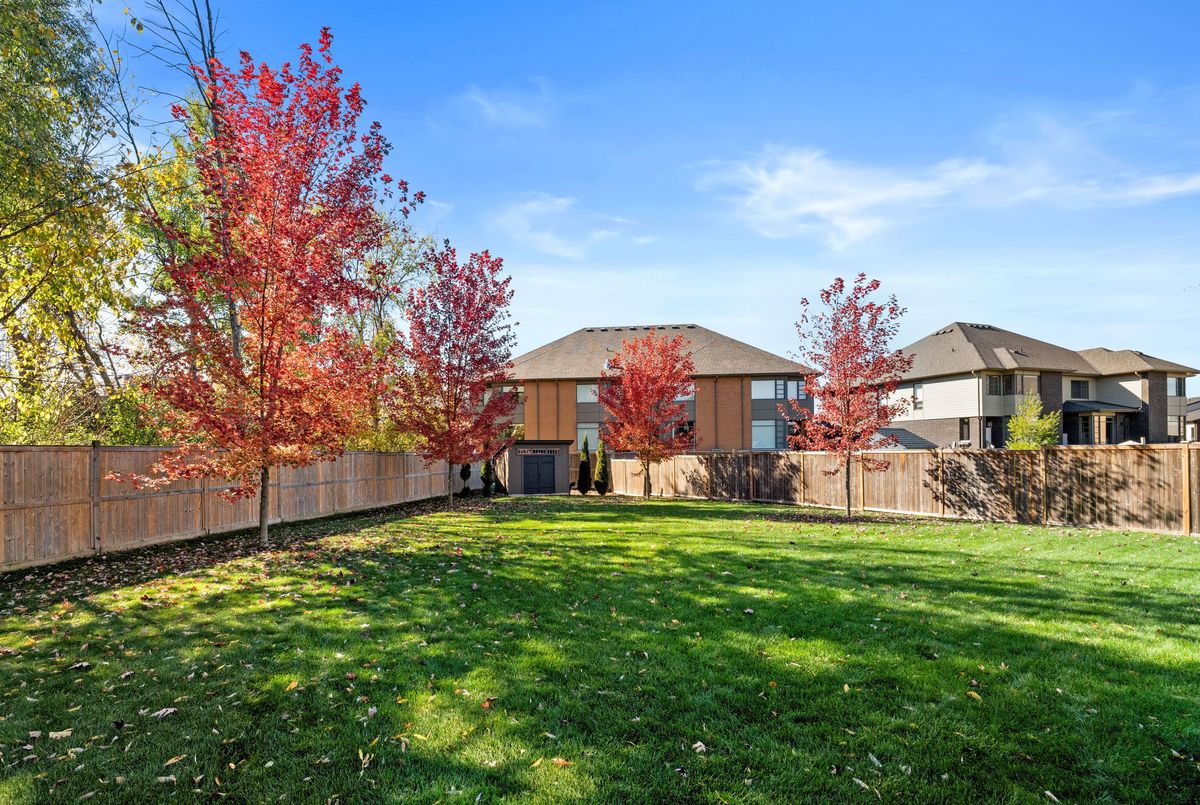 Stunning end unit townhome with one of Riverside South's largest yards, townhomes and singles alike. This showpiece Parkway End Model by HN Homes offers a spacious, smartly designed layout with over 2,500 sq. ft. of finished living space. Situated on a premium pie-shaped corner lot (valued at over 50K), the home features a fully fenced, landscaped backyard, oversized composite deck, 6-zone irrigation system, shed, and gas BBQ hookup, all backing onto mature trees with no direct rear neighbours. Welcomed by an extended wrap-around porch, step inside to the spacious tiled foyer with garage entry and a sleek powder room. The open-concept main floor impresses with 9' smooth ceilings, floor-to-ceiling windows, wire brushed oak hardwood flooring, modern glass railings, and a cozy gas fireplace. A thoughtfully designed main floor den is ideal for a home office, study nook, or play area. The chef-inspired kitchen boasts high-end stainless steel appliances including a 30" Wolf Range, granite counters, ceiling-height soft-close cabinetry, large pantry, and an 8' island seating four. The dining area fits a table for 10 and provides direct access to the backyard. Upstairs features upgraded Berber carpet with premium underpad, a second den/flex space, laundry room with built-ins, and 3 generously sized bedrooms with custom window treatments. The primary suite includes a walk-in closet with organizers and a spa-like ensuite with soaker tub, upgraded glass shower, and extended vanity. The finished basement adds excellent flexibility with in-law suite potential, rec room, ready to finish 4th bedroom, full 4-pc bath, and ample storage. Notable features: Smart thermostat & lighting, custom blinds, upgraded flooring, smooth ceilings, A/C, gas fireplace, and extended driveway for 3-car parking. Every inch of this residence has been upgraded with luxurious finishes and bespoke details, creating a refined living experience beyond compare, this is not your average townhome!
