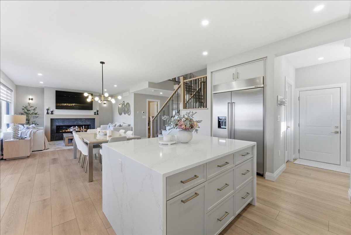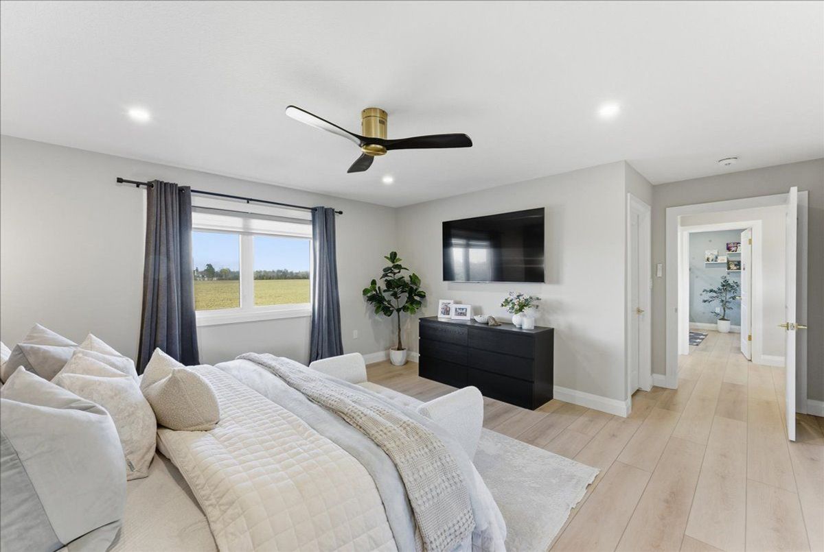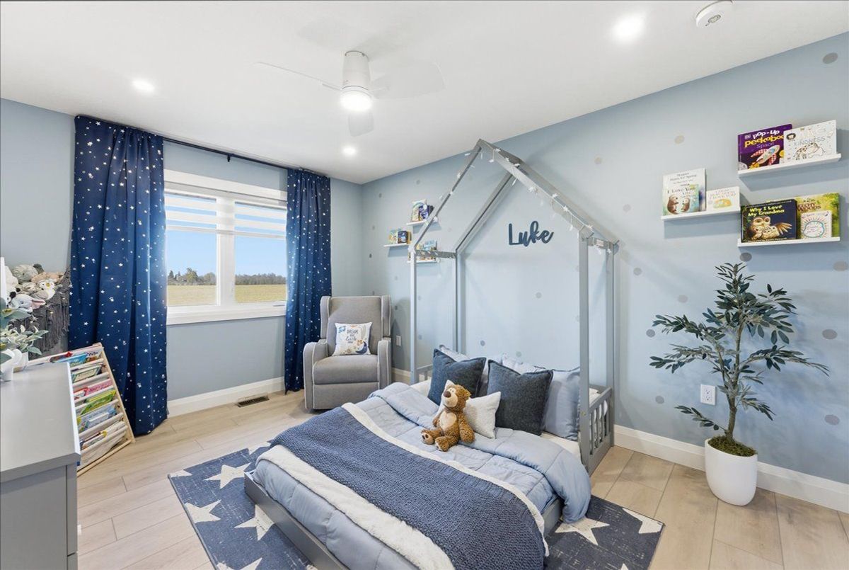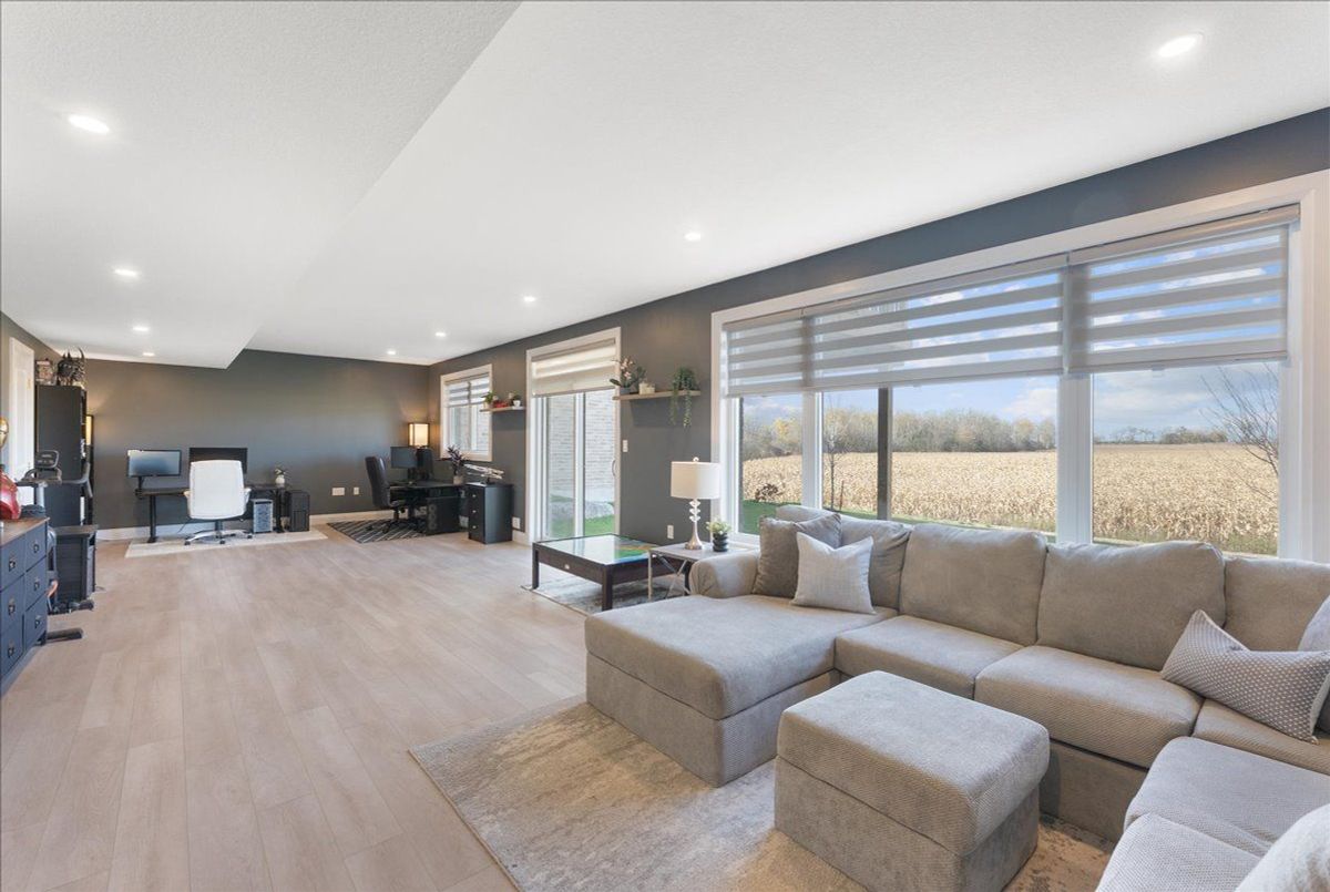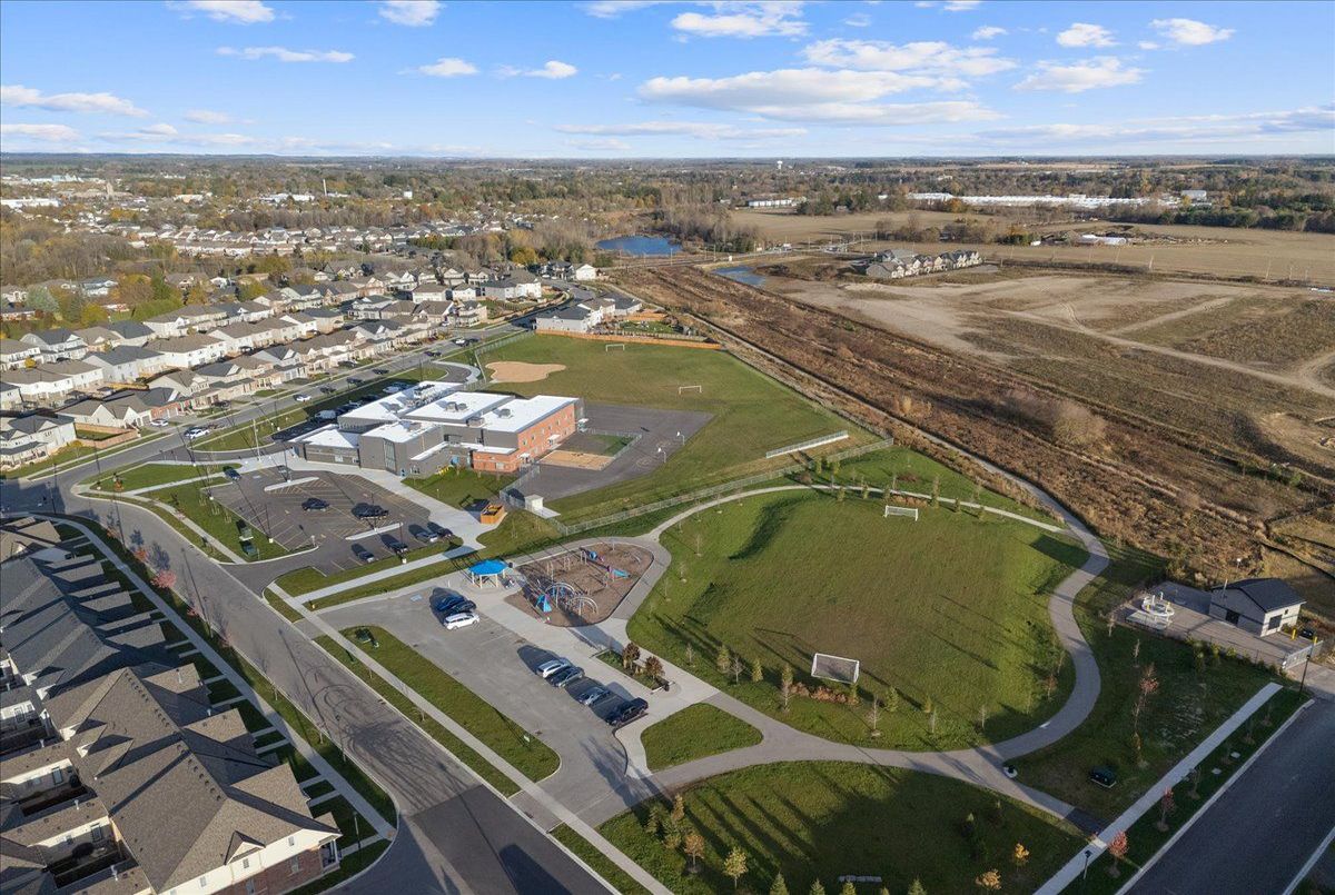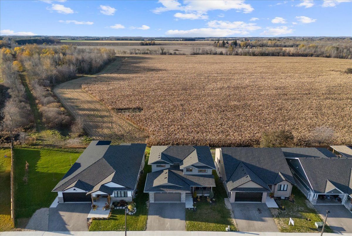 Experience modern luxury in this stunning 4-bedroom, 4-bath detached home built by Keating Construction. Just one year new, this designer residence showcases quality craftsmanship and premium upgrades throughout - truly a home where no expense has been spared. The open-concept main floor features a designer custom gas fireplace, creating a warm and stylish focal point for family gatherings. The gourmet kitchen boasts built-in appliances, induction cooktop, waterfall quartz island, and custom cabinetry with pine interiors. The spacious dining area opens to a covered porch with unobstructed views of the farmer's field - the perfect spot to enjoy breathtaking sunsets. A main floor office (or optional 4th bedroom) adds versatility for work or guests. Upstairs, the primary suite offers a peaceful retreat with a luxury 4-piece ensuite, walk-in closet, and views of the backyard. The second-floor laundry room is complete with cabinetry and countertop for added convenience. The fully finished basement adds valuable living space with a large rec room, extra bedroom, 4 piece bath and walkout to the yard. Oversized windows fill the lower level with natural light, making it feel like a main floor. Located in a family-friendly neighbourhood, steps to the future Beatty Hallow Park (with playground, multi-use pad, and half basketball court). Close to the brand new Grand River Public School, place of worship, parks and Groves Memorial Hospital - this home combines luxury living with small-town charm.