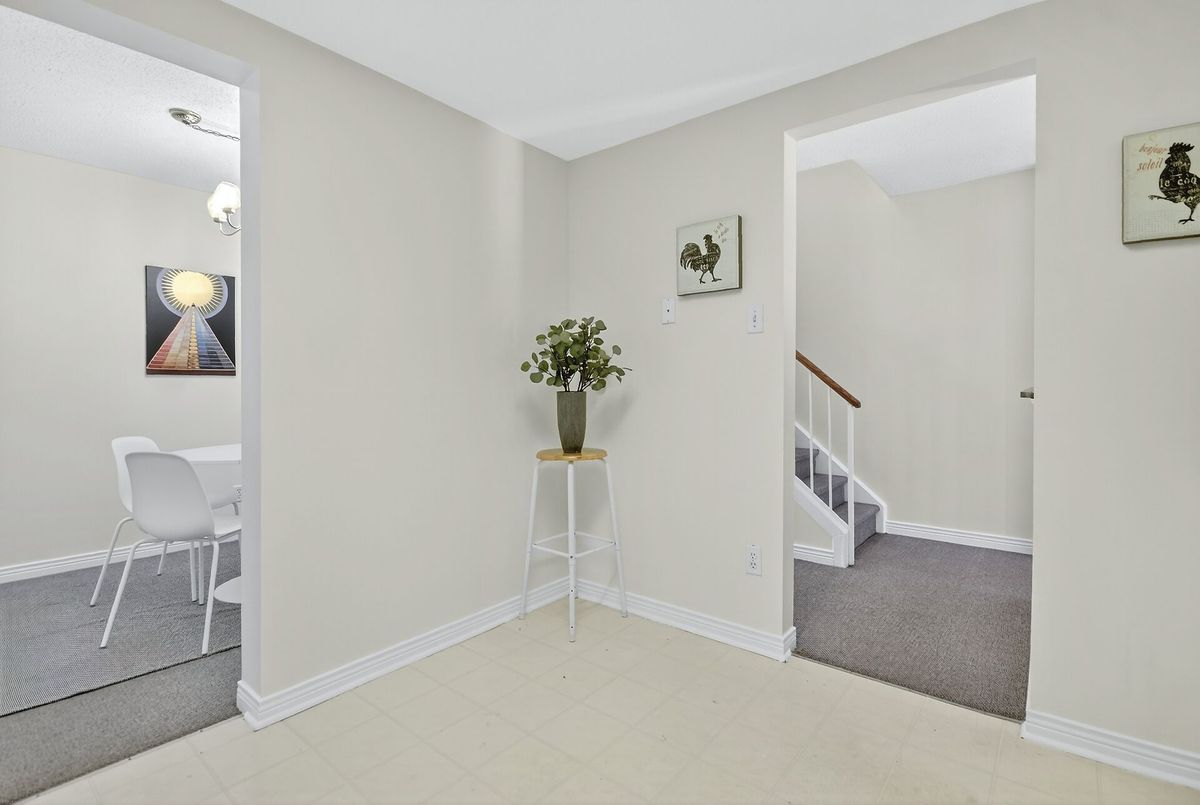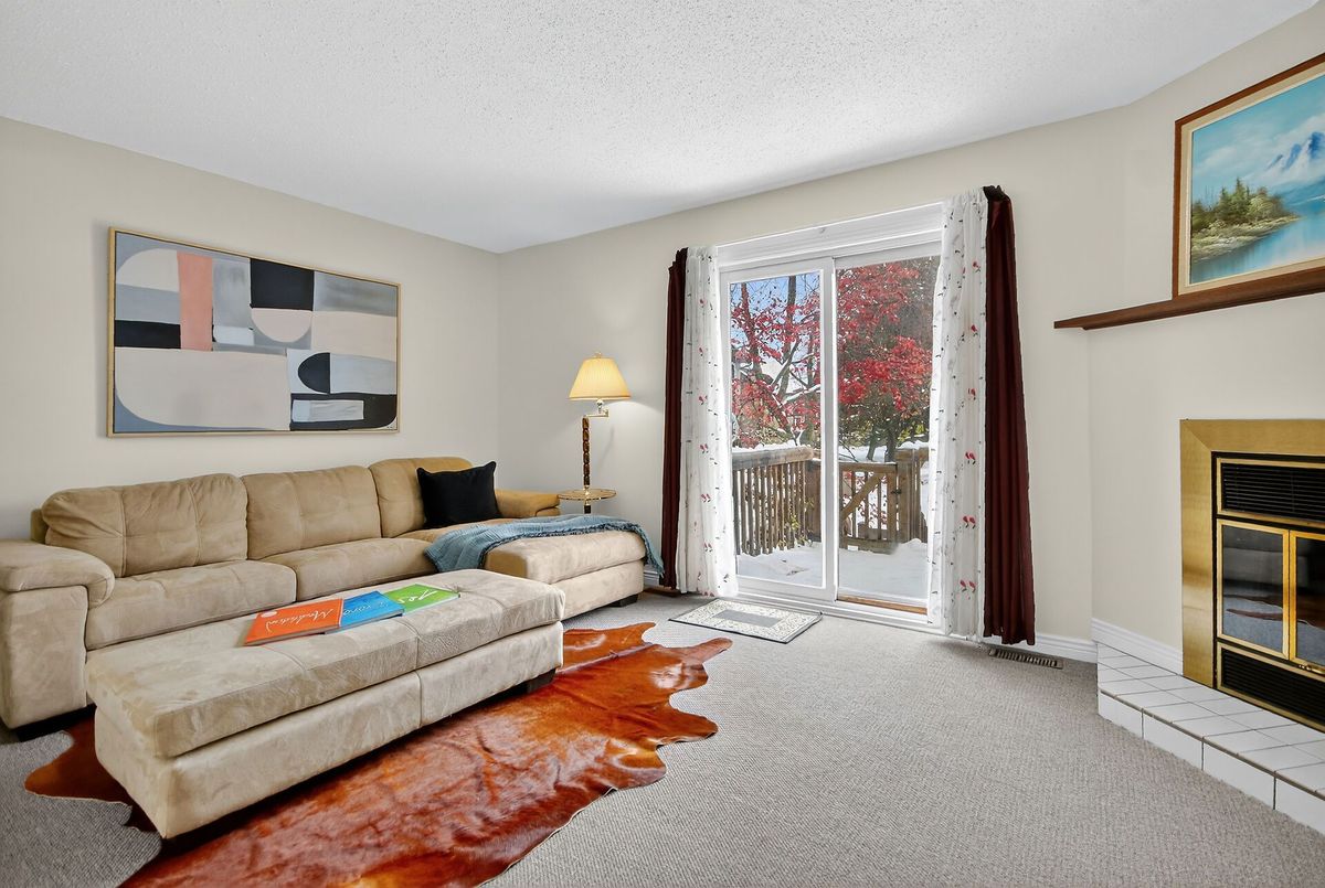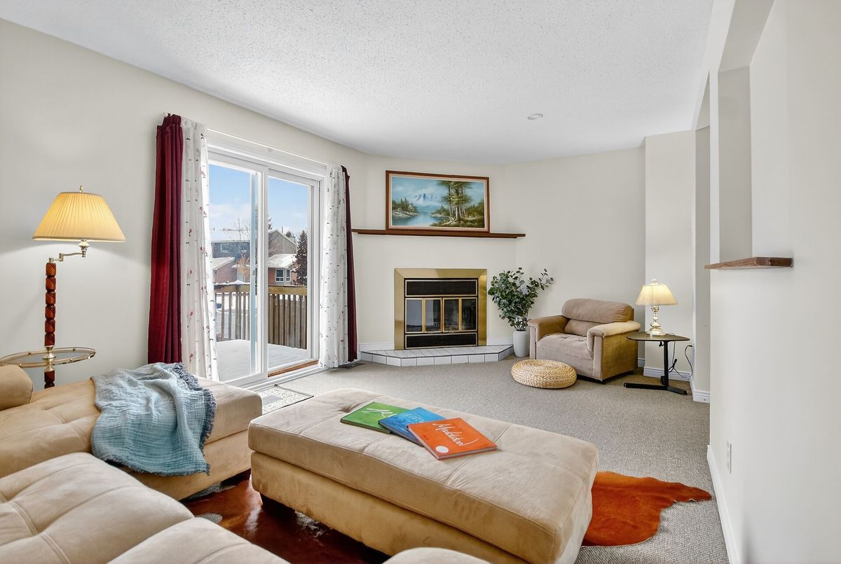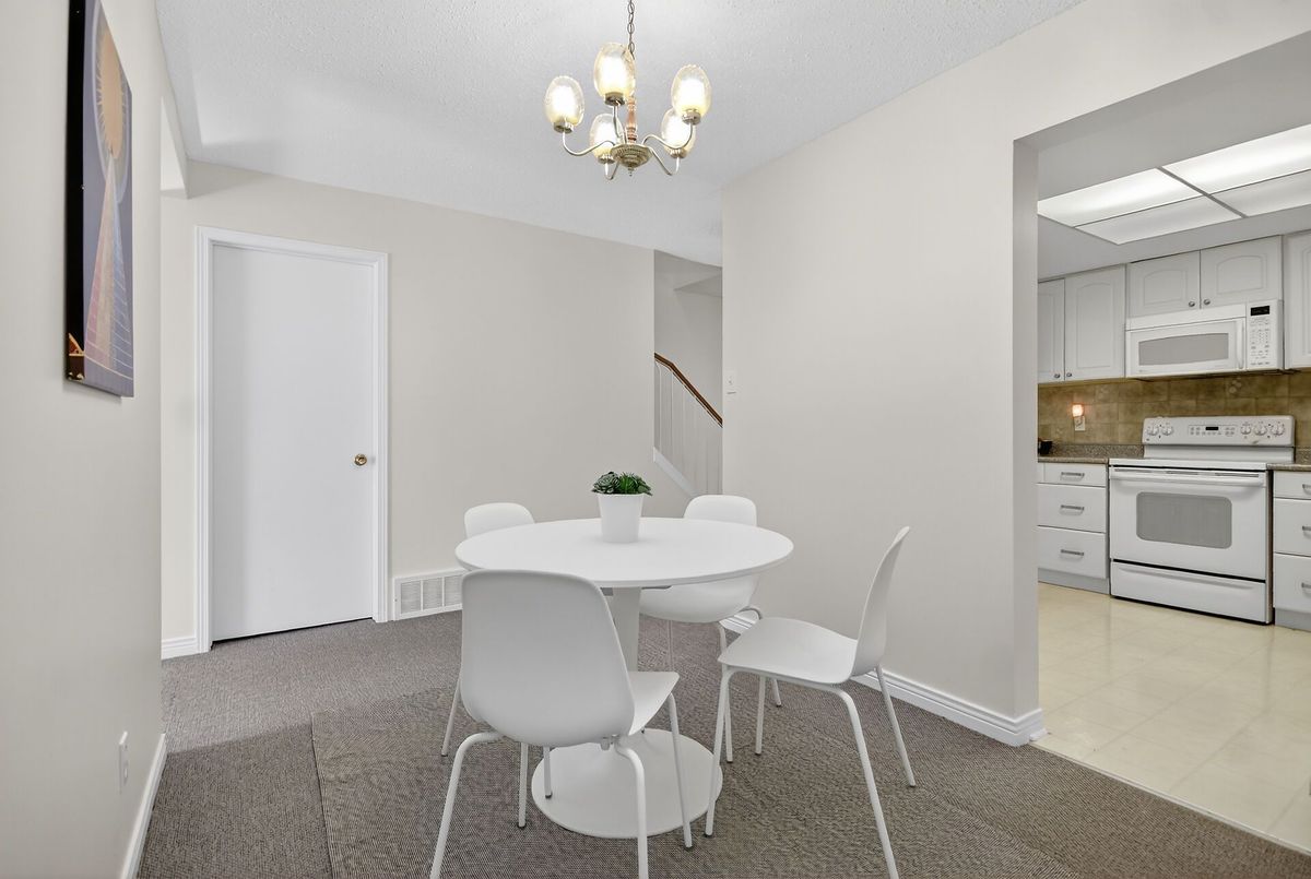 Welcome, to Greenboro! This end unit is bright and spacious, an affordable gem that has been spruced up to be move in ready for it's new family. Bathroom counters and sinks have been replaced, fully painted through-out, the quality, neutral grey shade, wall to wall carpeting is in like new condition, and has been deep cleaned. The main floor has an eat in kitchen, a separate dining room and a large living room, with a wood burning fireplace and patio doors opening to the back yard and deck. Upstairs there are three bedrooms, a main bath, as well an ensuite off the primary bedroom. Completing this ready for your family offering is an attached garage and a basement with lots of storage, laundry area, a powder room and a large bright family room.
