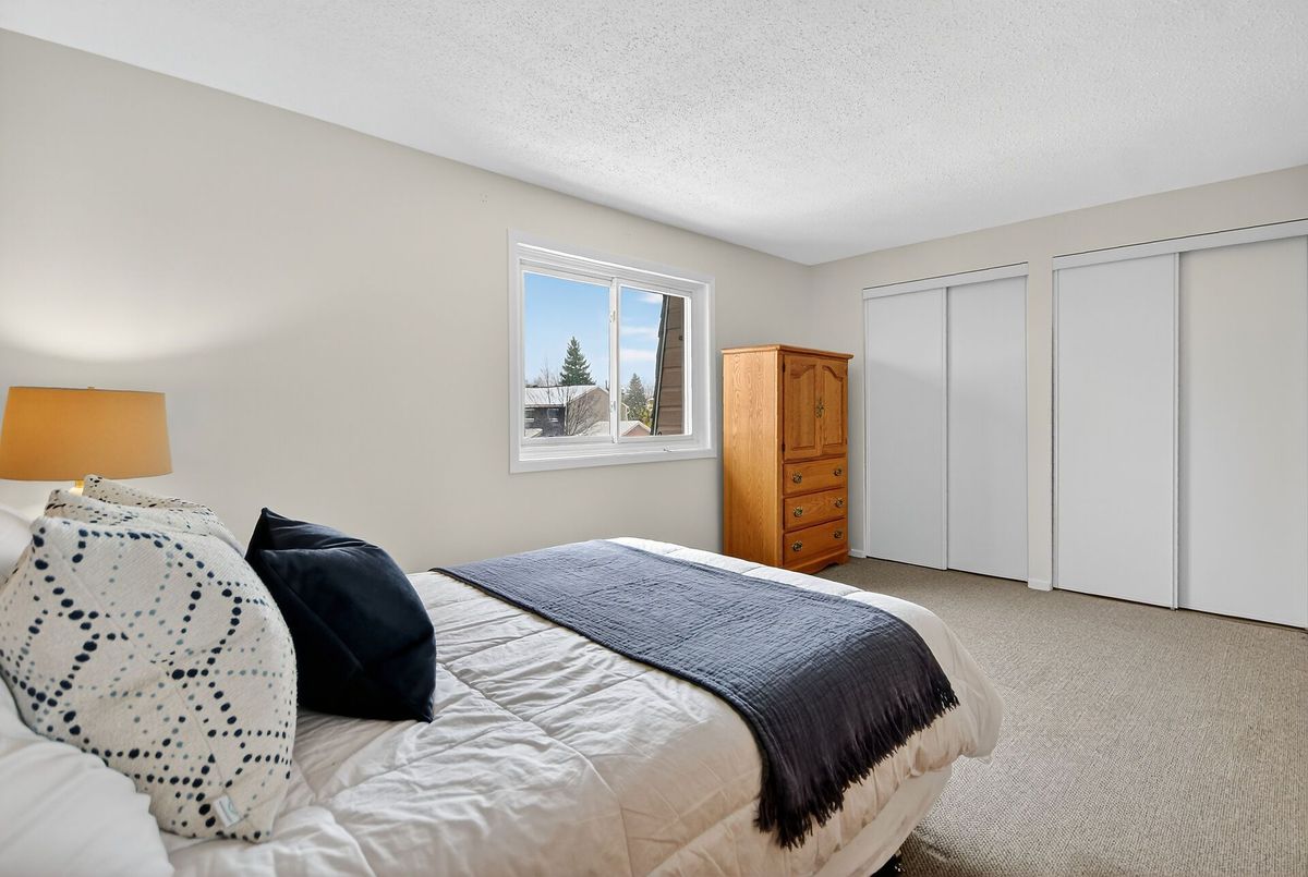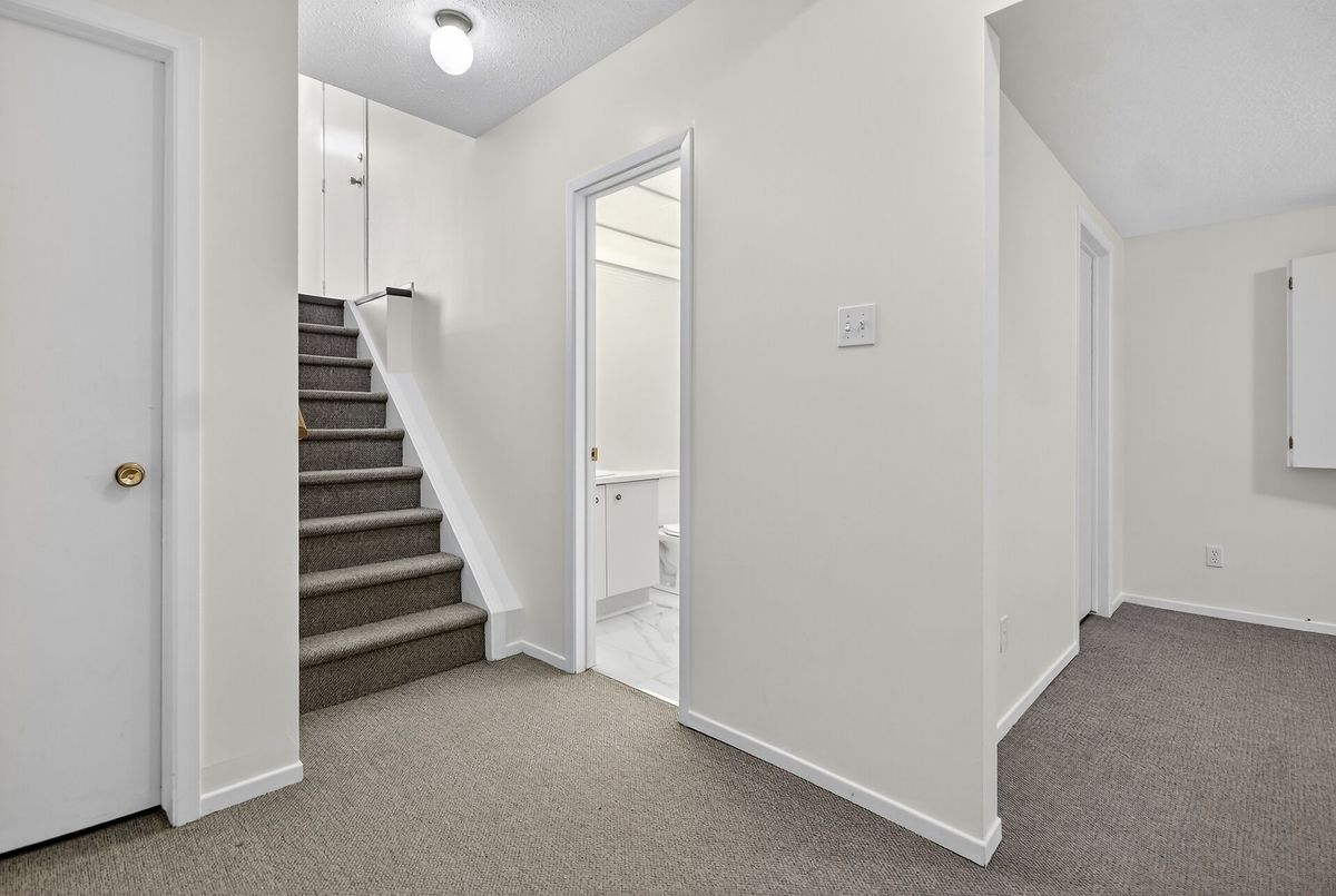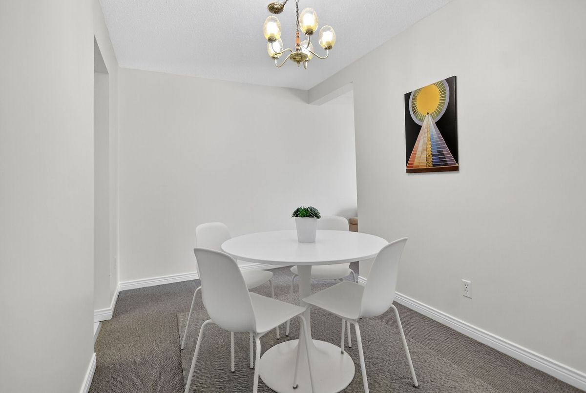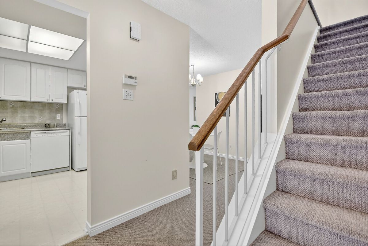 Welcome, to Greenboro! This end unit is bright and spacious, an affordable gem that has been spruced up to be move in ready for it's new family. Bathroom counters and sinks have been replaced, fully painted through-out, the quality, neutral grey shade, wall to wall carpeting is in like new condition, and has been deep cleaned. The main floor has an eat in kitchen, a separate dining room and a large living room, with a wood burning fireplace and patio doors opening to the back yard and deck. Upstairs there are three bedrooms, a main bath, as well an ensuite off the primary bedroom. Completing this ready for your family offering is an attached garage and a basement with lots of storage, laundry area, a powder room and a large bright family room.