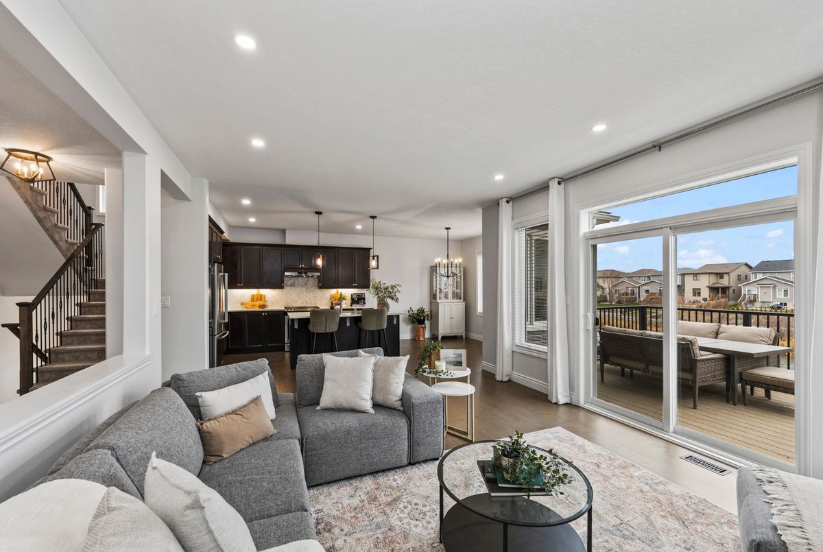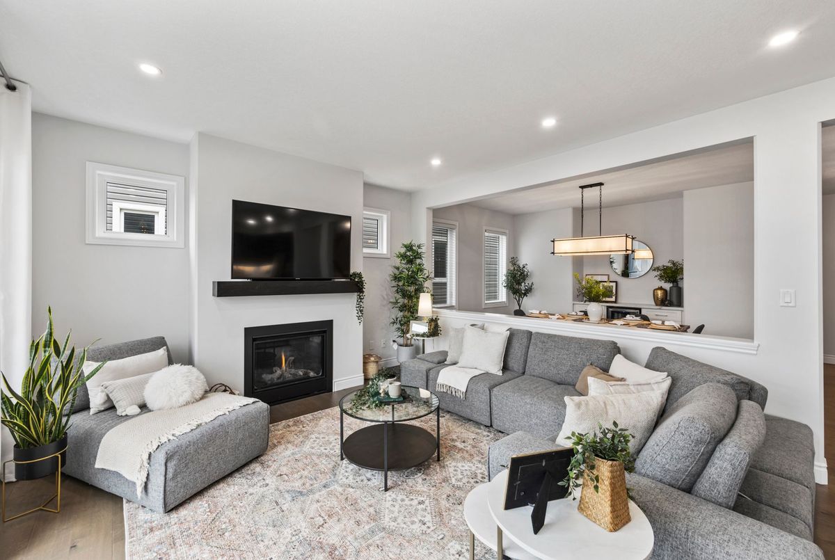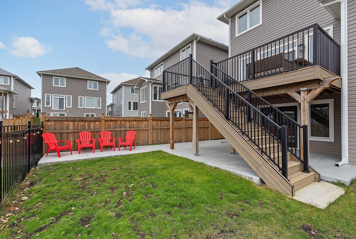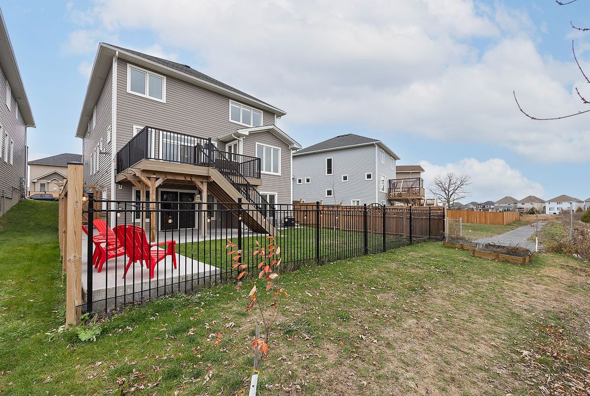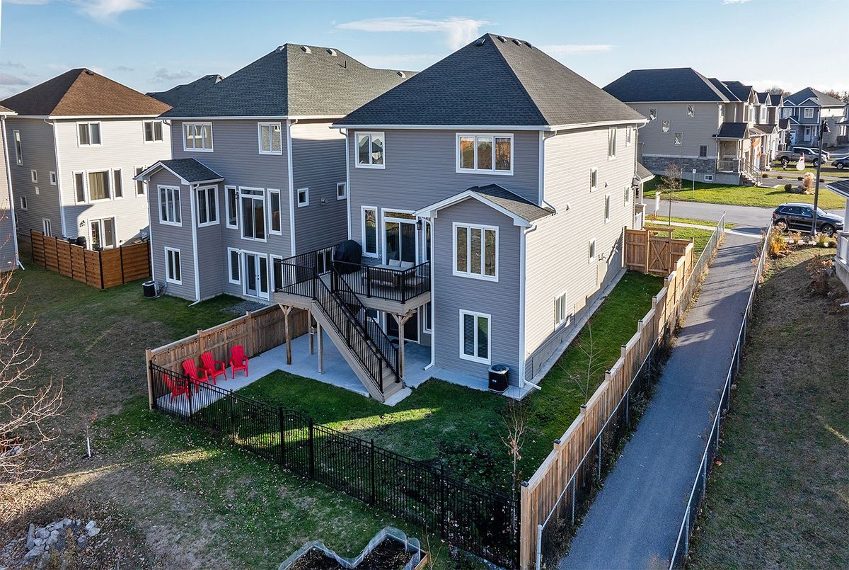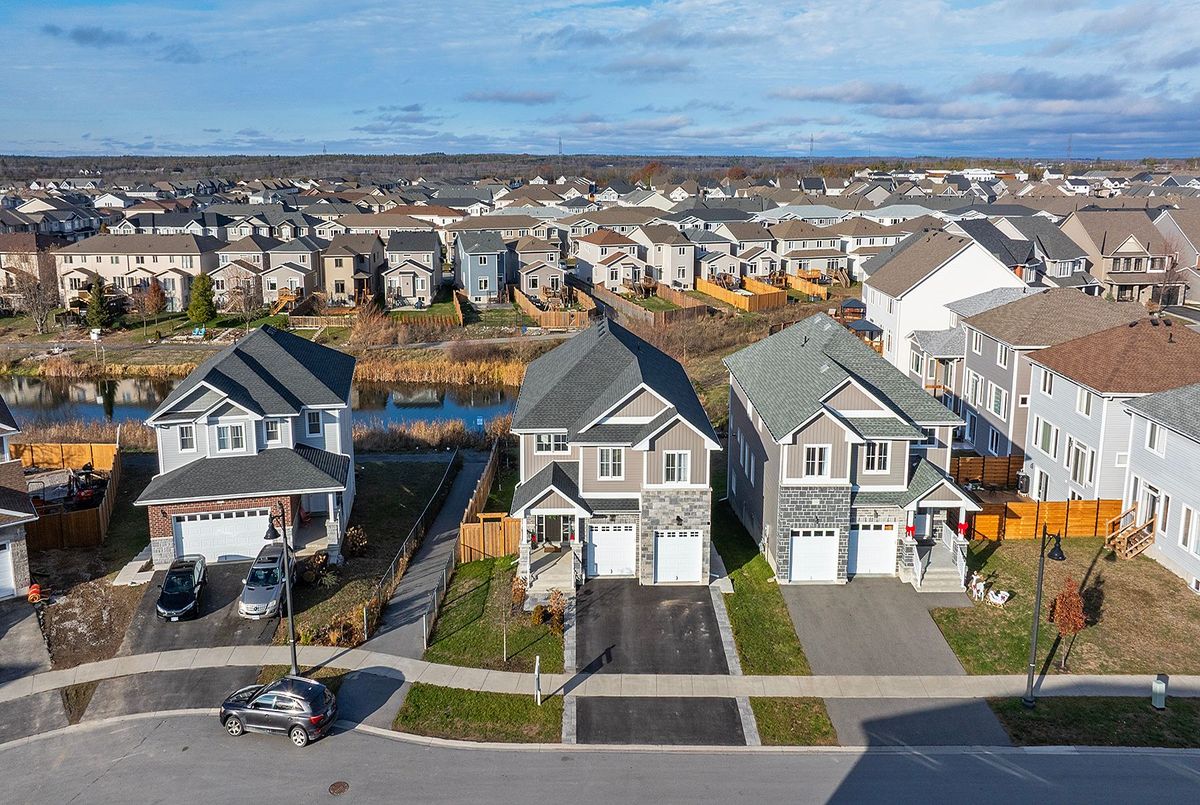 This stunningly upgraded two-storey home offers a thoughtfully designed floor plan and beautiful, high-end finishes that are sure to impress! Step through the front door into a bright, spacious foyer featuring a neutral and elegant palette. The open-concept main level includes a welcoming family room with a cozy gas fireplace, a stylish dining area with a custom servery bar, and a functional kitchen that overlooks tranquil pond views. Upstairs, the spectacular primary suite boasts two walk-in closets and a spa-like ensuite with a soaker tub, glass shower, and large windows that fill the space with natural light. Three additional bedrooms and a full bath complete this level-ideal for family living. The finished lower level adds even more versatility with a large rec room, a fifth bedroom, an office or gym area, a third full bath, and a full kitchen-perfect for guests or in-law potential. Walk out to the fully fenced yard featuring a concrete patio and a concrete walkway wrapping around the home for easy access and a clean, polished look. With over 3,800 sq. ft. of finished living space, a composite deck, pot lights, a gas stove, interlock walkways, and a covered front porch, this home combines comfort, luxury, and functionality. Truly a property you'll be proud to call your own!