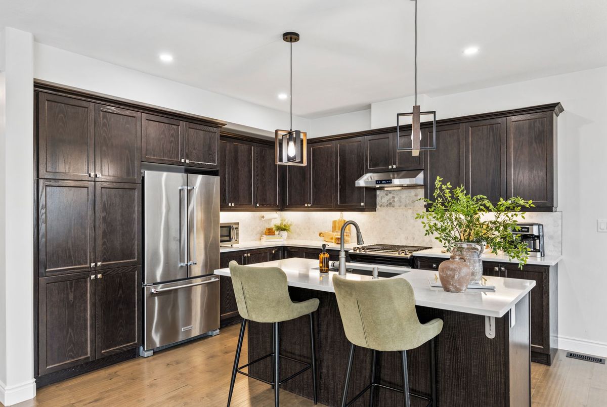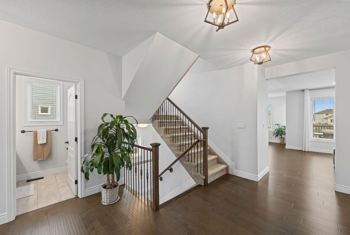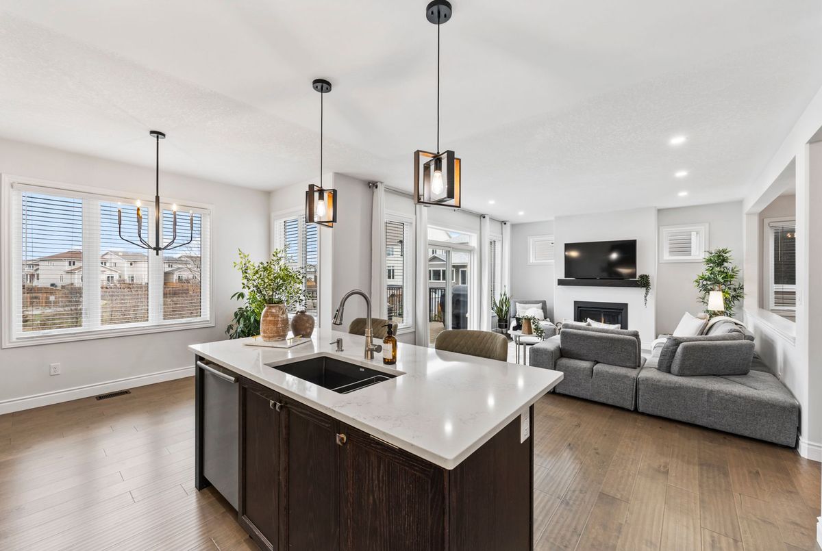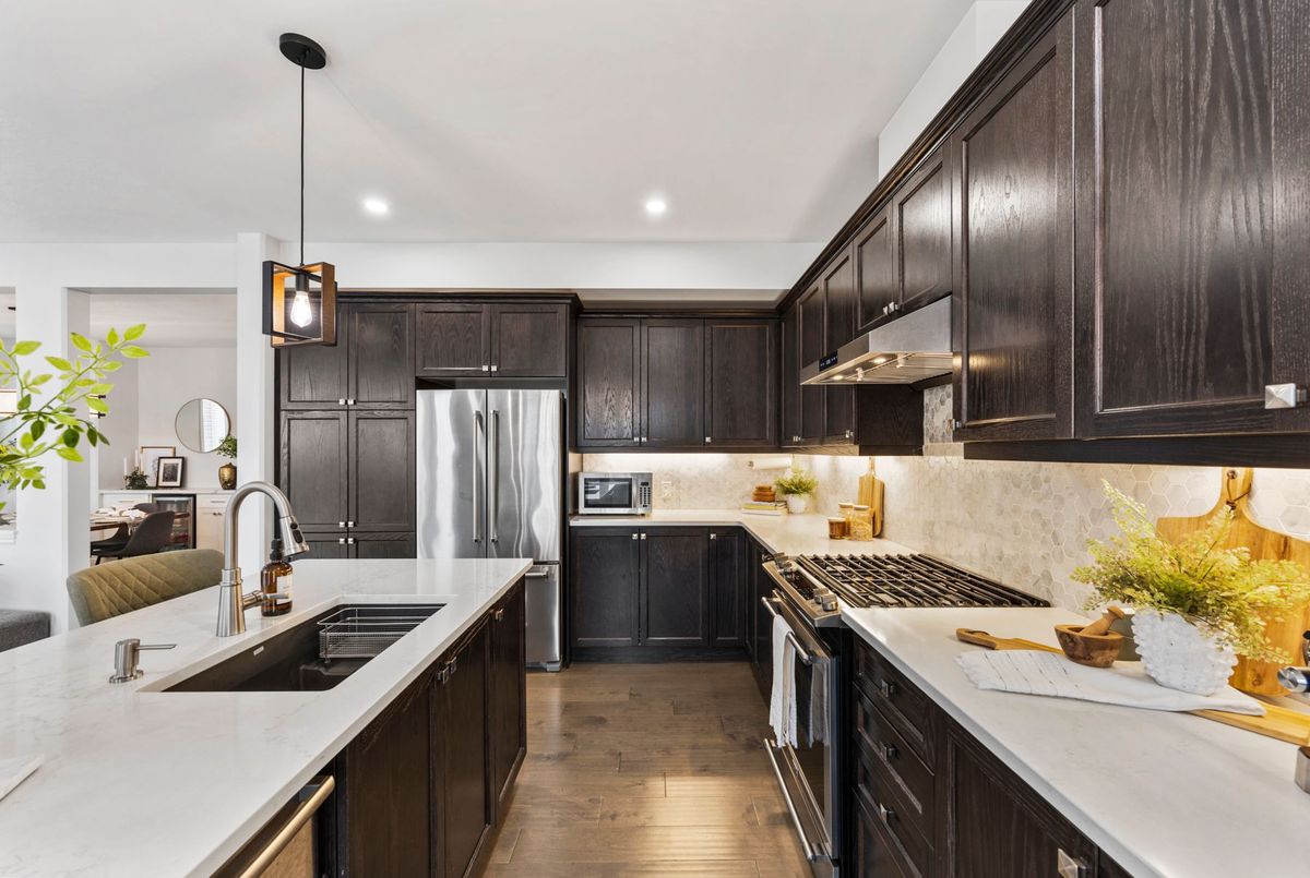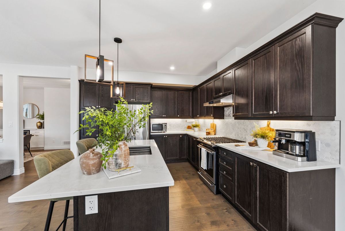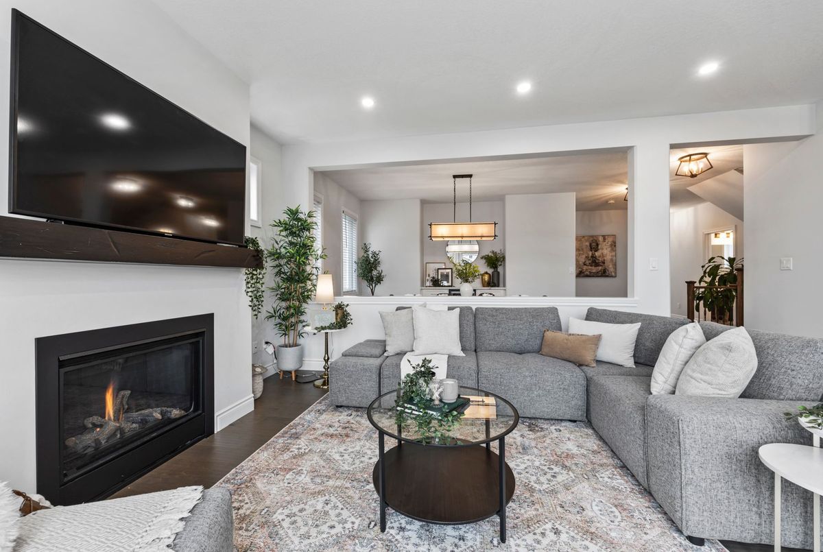 This stunningly upgraded two-storey home offers a thoughtfully designed floor plan and beautiful, high-end finishes that are sure to impress! Step through the front door into a bright, spacious foyer featuring a neutral and elegant palette. The open-concept main level includes a welcoming family room with a cozy gas fireplace, a stylish dining area with a custom servery bar, and a functional kitchen that overlooks tranquil pond views. Upstairs, the spectacular primary suite boasts two walk-in closets and a spa-like ensuite with a soaker tub, glass shower, and large windows that fill the space with natural light. Three additional bedrooms and a full bath complete this level-ideal for family living. The finished lower level adds even more versatility with a large rec room, a fifth bedroom, an office or gym area, a third full bath, and a full kitchen-perfect for guests or in-law potential. Walk out to the fully fenced yard featuring a concrete patio and a concrete walkway wrapping around the home for easy access and a clean, polished look. With over 3,800 sq. ft. of finished living space, a composite deck, pot lights, a gas stove, interlock walkways, and a covered front porch, this home combines comfort, luxury, and functionality. Truly a property you'll be proud to call your own!