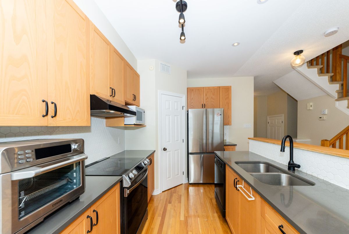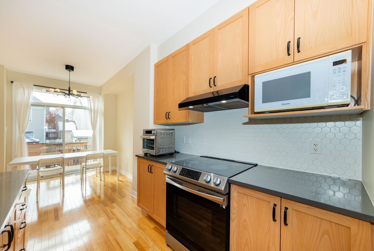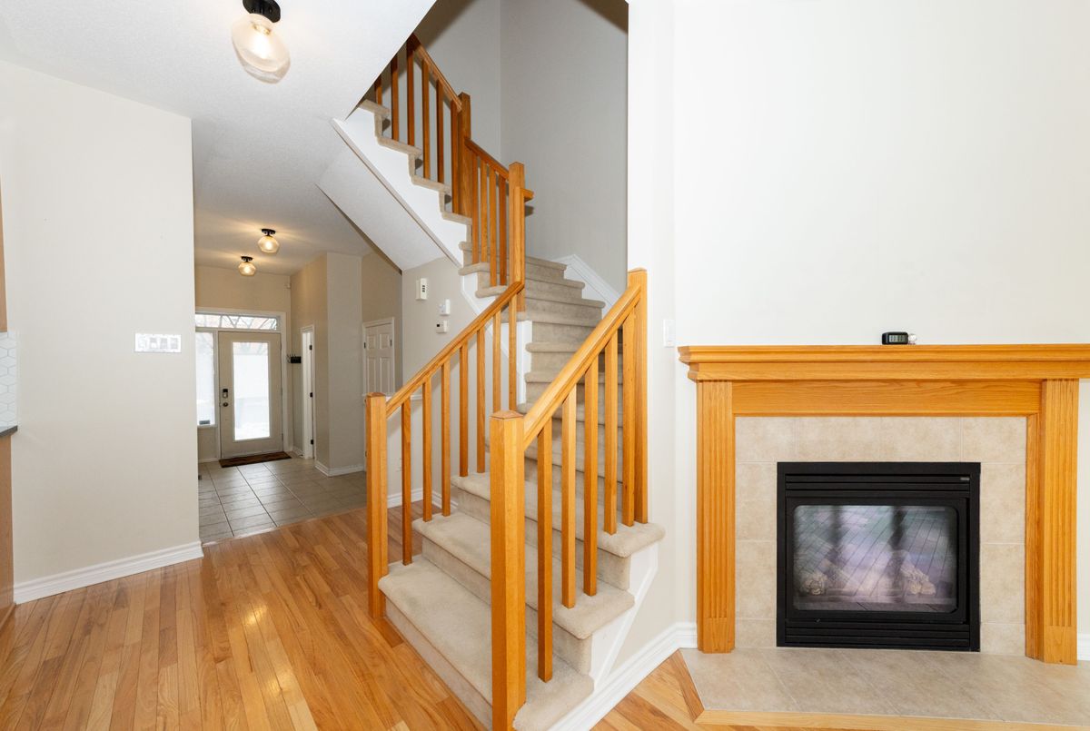 Welcome to this Tamarack town-home (Aberdeen model) in sought-after Barrhaven. This home seamlessly combines style, and functionality with three bedrooms and two and a half bathrooms. The main floor boasts a warm foyer, hardwood and ceramic flooring, a spacious dining and living area with a cozy gas fireplace, and a bright, functional kitchen with stainless steel appliances and pantry. The second floor features a primary suite with a walk-in closet and ensuite, along with two well-proportioned bedrooms and a full bathroom. The lower level offers a modern space for recreation, exercise, or entertainment, with ample storage. Outside, the fully fenced and beautifully landscaped yard provides a low-maintenance oasis for entertaining and family BBQs. Conveniently located near parks, schools, and transit, this town-home is a fantastic opportunity to join a welcoming, family-friendly community