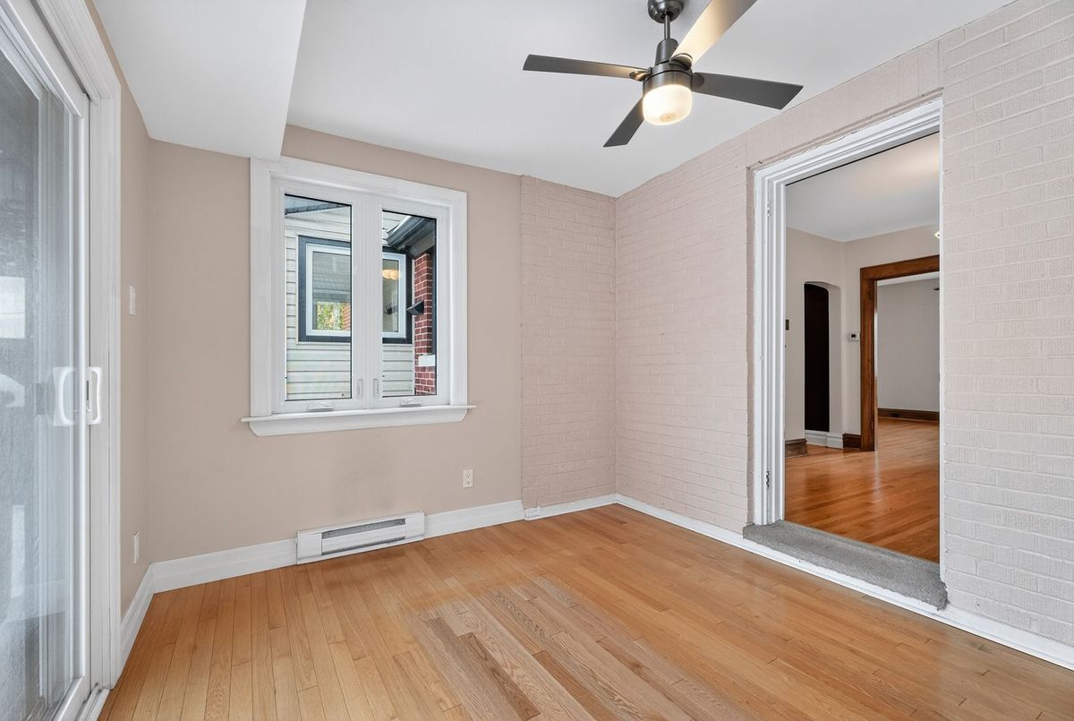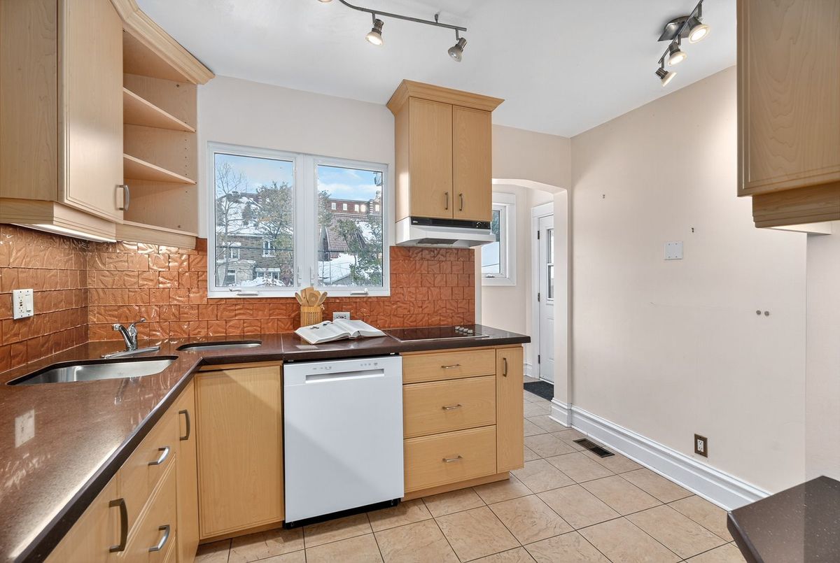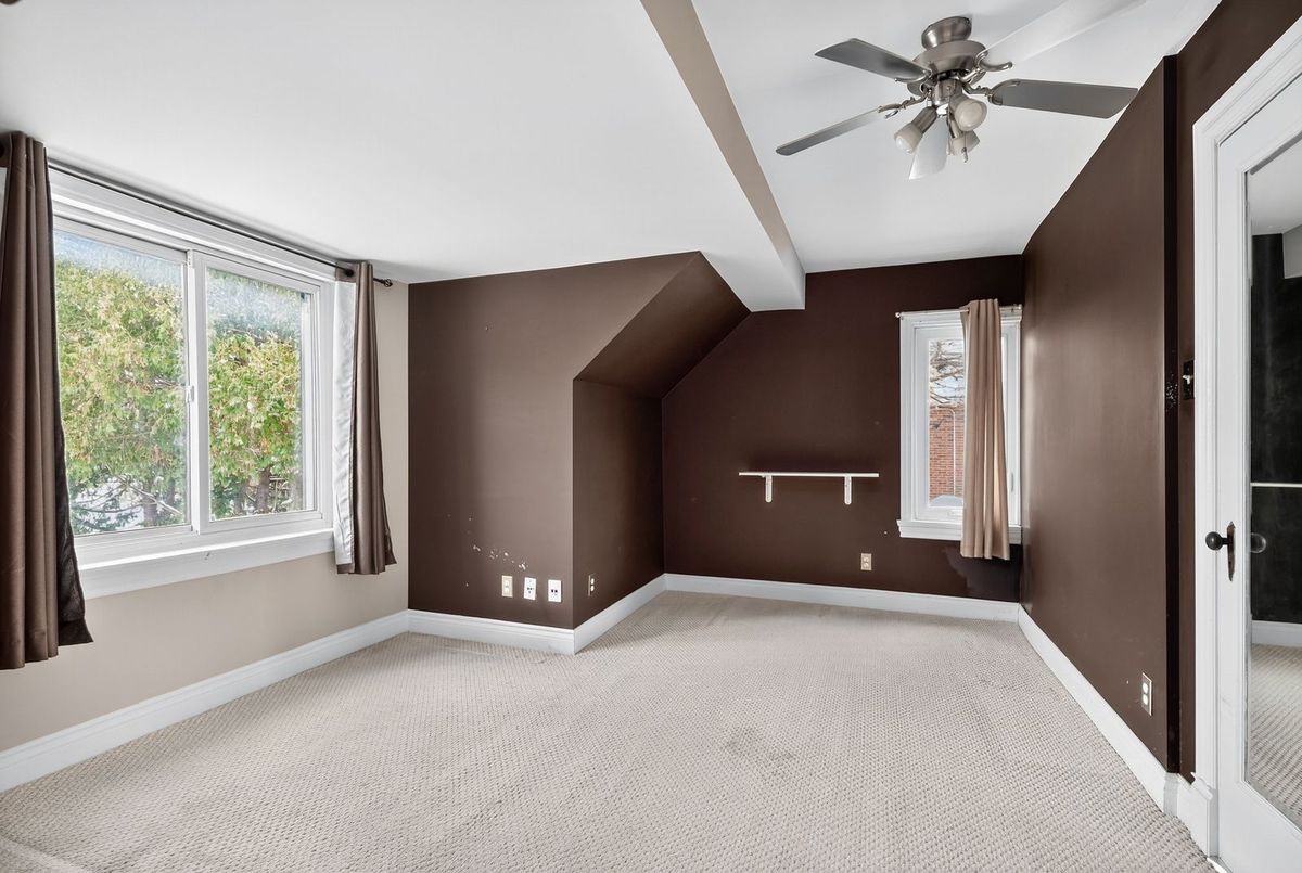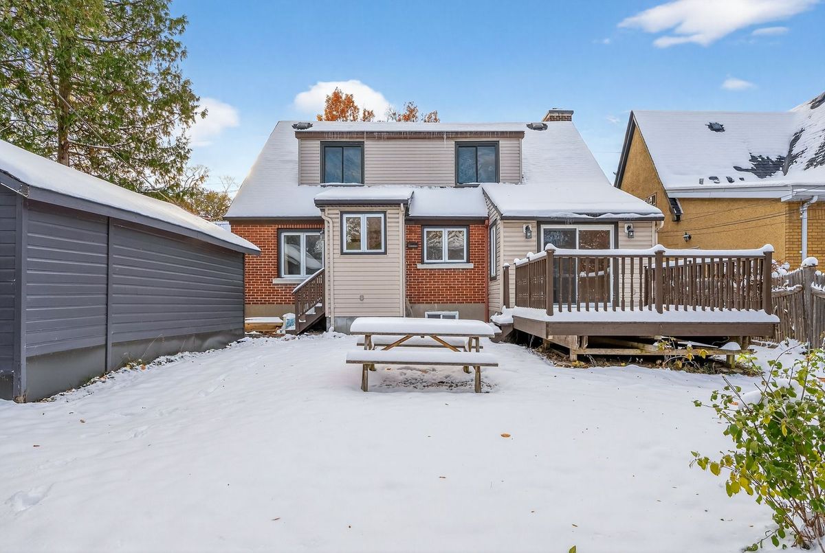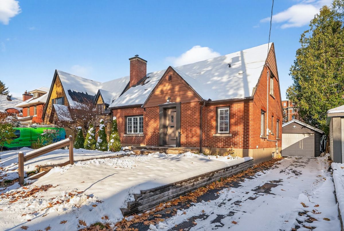 Beautiful 1932 red-brick home in the heart of the Civic Hospital neighbourhood. Filled with natural light and original charm, this spacious residence offers surprising versatility across three levels. A bright living room with gas fireplace and built-ins opens to a generous kitchen with warm cabinetry and a pass-through to the dining room. The sunroom leads to a large rear terrace and private yard-rare for the area. Two main-floor bedrooms share a full vintage-style bath. Upstairs, two expansive loft rooms create exceptional flexibility: a dreamy primary suite with full bath, guest space, office, or studio. The lower level adds a huge rec room with built-ins, workshop, laundry room, and third full bath. With a detached garage, abundant storage, and outstanding walkability to the Civic Hospital and Wellington West, this home blends historic character with modern comfort in one of Ottawa's most desirable communities.