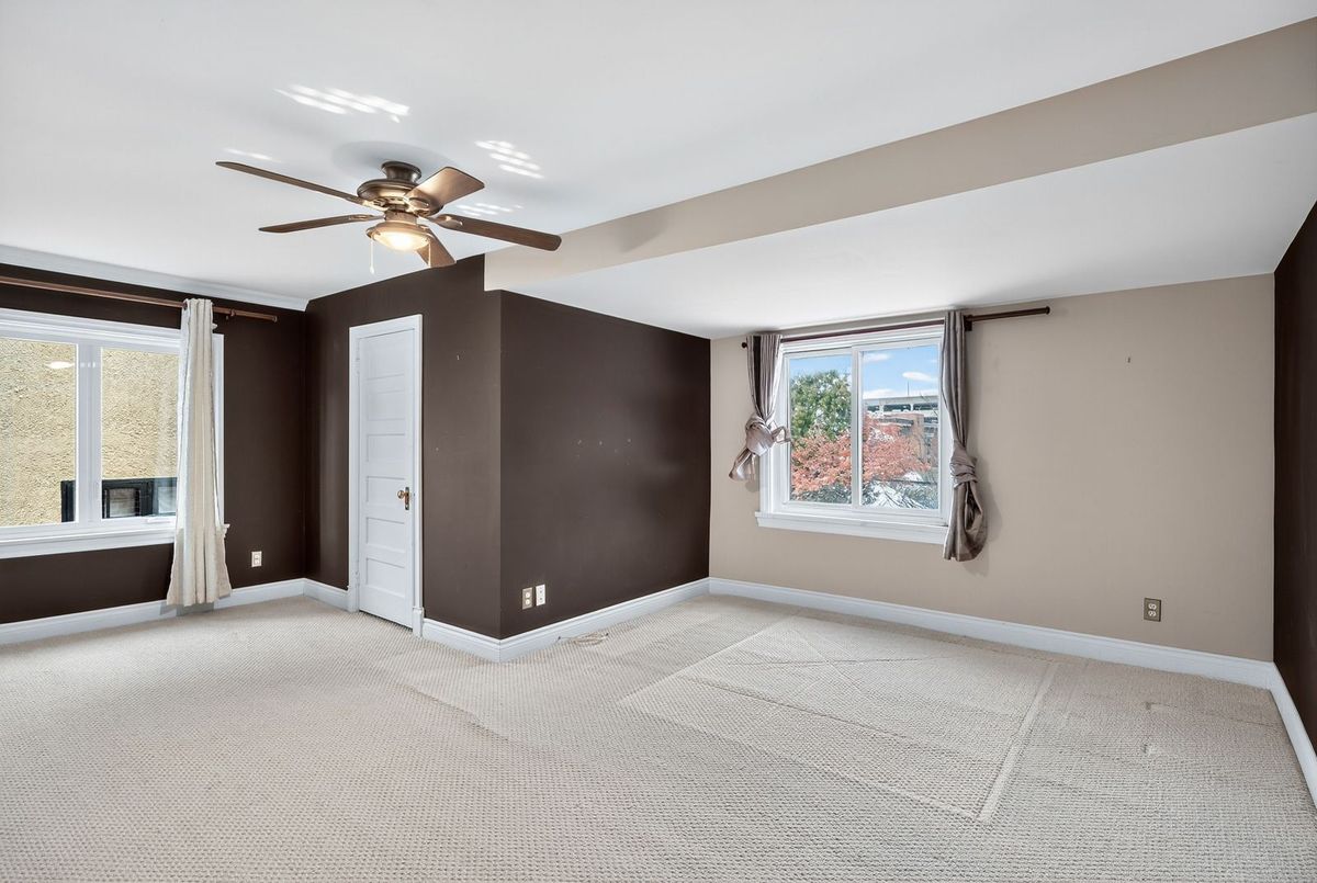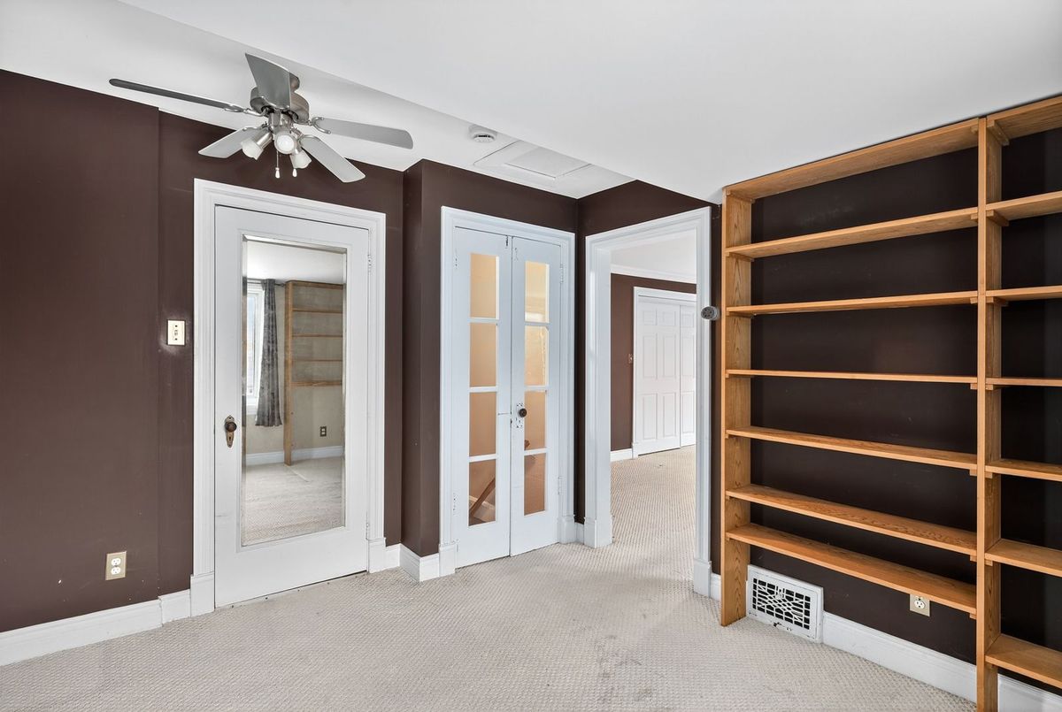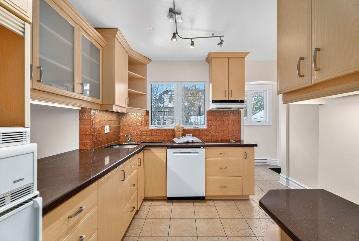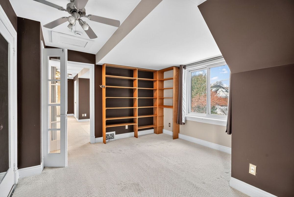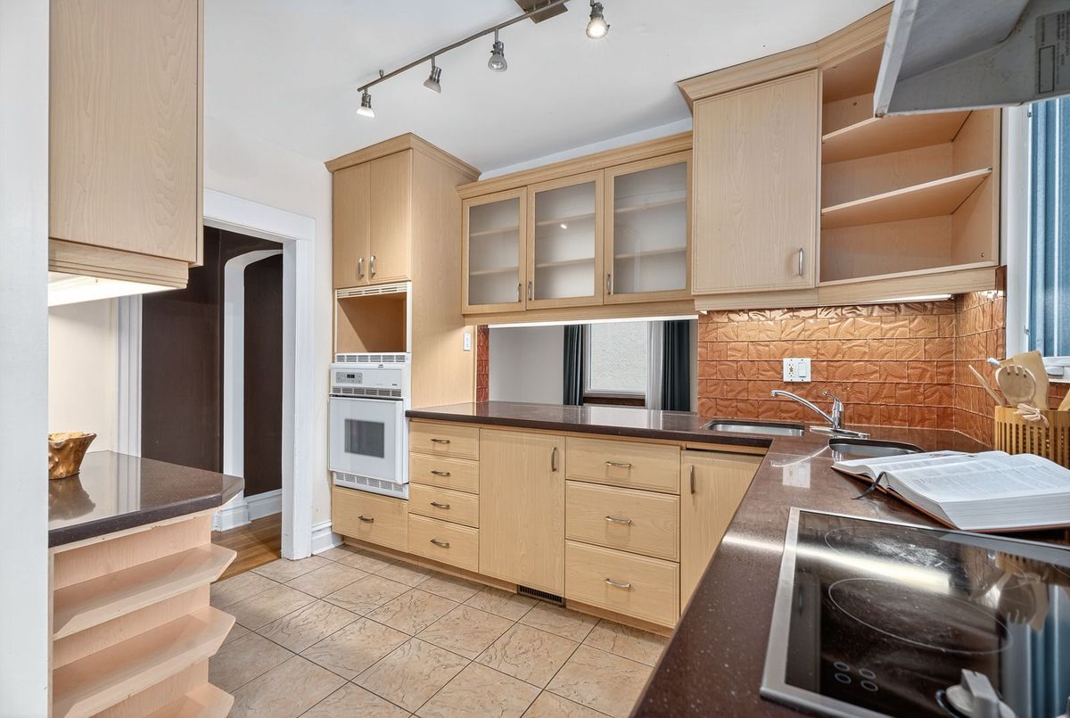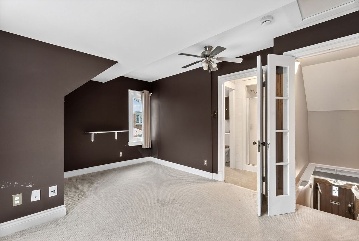 Beautiful 1932 red-brick home in the heart of the Civic Hospital neighbourhood. Filled with natural light and original charm, this spacious residence offers surprising versatility across three levels. A bright living room with gas fireplace and built-ins opens to a generous kitchen with warm cabinetry and a pass-through to the dining room. The sunroom leads to a large rear terrace and private yard-rare for the area. Two main-floor bedrooms share a full vintage-style bath. Upstairs, two expansive loft rooms create exceptional flexibility: a dreamy primary suite with full bath, guest space, office, or studio. The lower level adds a huge rec room with built-ins, workshop, laundry room, and third full bath. With a detached garage, abundant storage, and outstanding walkability to the Civic Hospital and Wellington West, this home blends historic character with modern comfort in one of Ottawa's most desirable communities.
