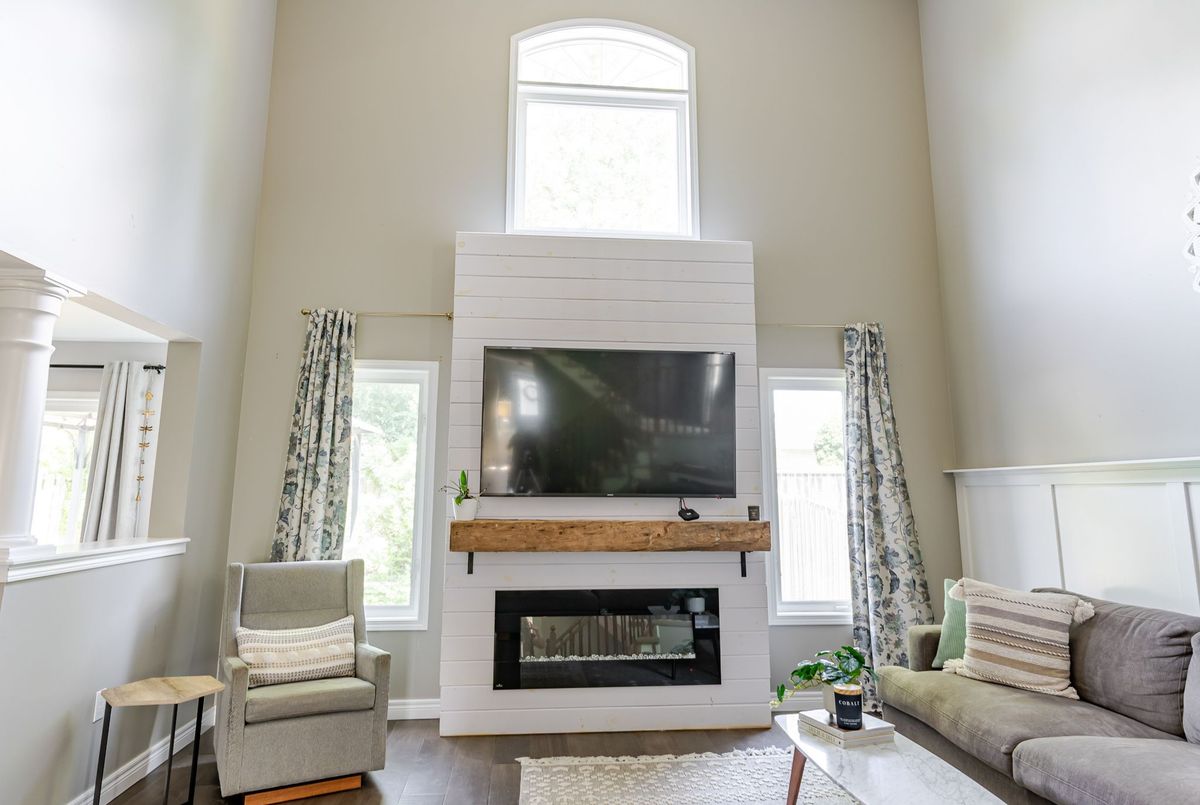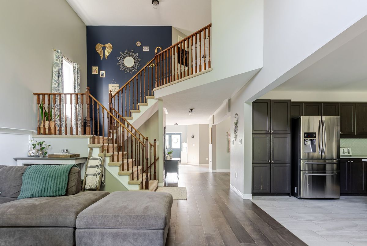 Welcome to this spacious and beautifully maintained 2-storey home, perfectly situated in Peterborough's desirable West End. Located in a sought-after school district and family-friendly neighbourhood, this home offers over 2,400 square feet of well-designed living space - ideal for growing families and entertainers alike. Step inside the bright and welcoming foyer, offering ample space for coats, shoes, and the daily comings and goings of busy family life. New hardwood floors run throughout the main level, adding warmth and elegance to the open-concept layout. A formal dining area provides space for hosting, while the heart of the home - a stunning great room with soaring cathedral ceilings flows seamlessly into the modern kitchen. Featuring a central island, sleek finishes, and a second dining area, this kitchen invites gathering and everyday connection. Step through sliding doors to the back deck, extending your living space outdoors and making entertaining a breeze. A convenient powder room is thoughtfully located between the main and lower levels. Upstairs, you'll find four generous bedrooms, including a spacious primary retreat with a walk-in closet and luxurious 5-piece ensuite complete with a large soaking tub. An additional 4-piece bath serves the remaining bedrooms, offering comfort and convenience for children or guests. A loft-style hallway overlooks the great room below, adding architectural interest and natural light. The full, unspoiled basement provides excellent storage and the opportunity to customize the space to suit your needs, whether you envision a rec room, home gym, or in-law suite. The framing and bathroom rough-in are already done! This is a move-in-ready home in an unbeatable location - don't miss your chance to make it yours.