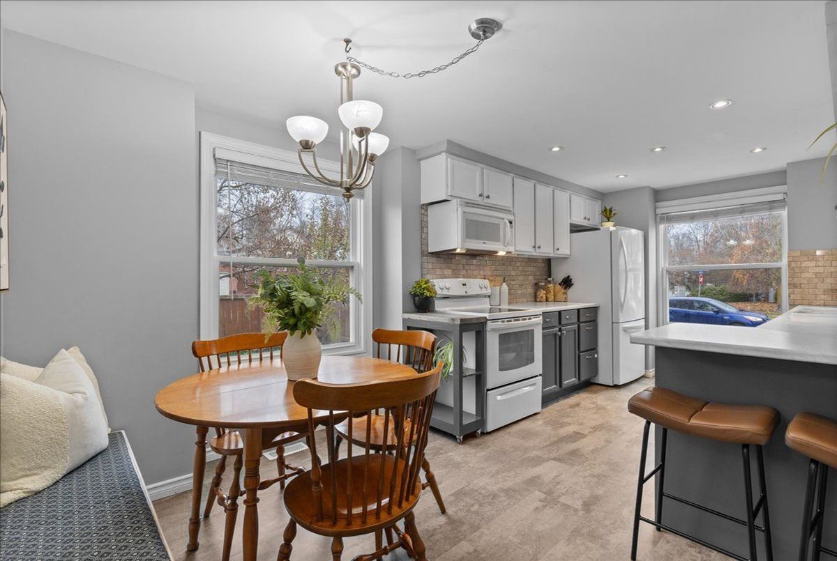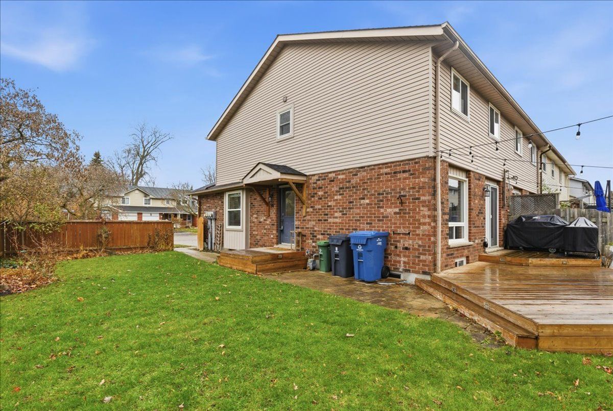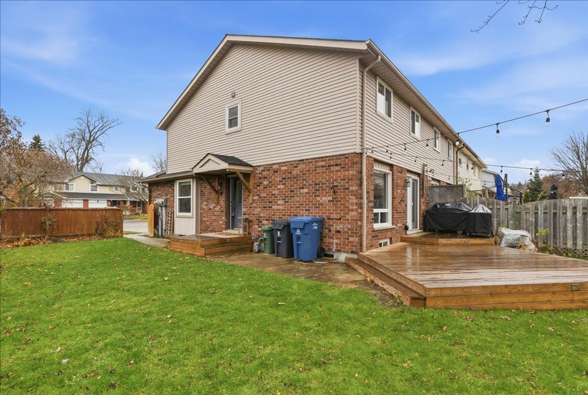 Welcome to the Willow area of Guelph, where community, convenience, and comfort all meet. This Bright end-unit freehold townhome is steps to parks, trails, top-rated schools, and almost every amenity, plus quick access to the Hanlon Parkway for easy commuting. This home is flooded with natural light and features an eat-in kitchen, spacious living and dining areas, and walkout to a massive deck overlooking the huge fully fenced yard. Rare for a townhome and perfect for entertaining. Upstairs you'll find 3 bedrooms and a full bath. The fully finished basement offers extra living space and a second full bathroom. Ideal for guests or a teen retreat. With a double driveway, single attached garage, and a prime end-unit lot, this is an incredible starter home in one of Guelph's most loved neighbourhoods. Don't miss your chance.