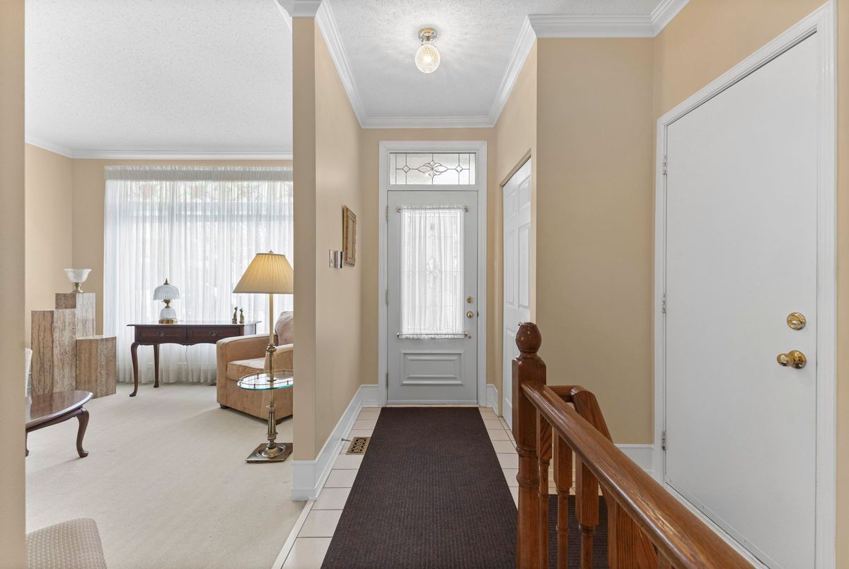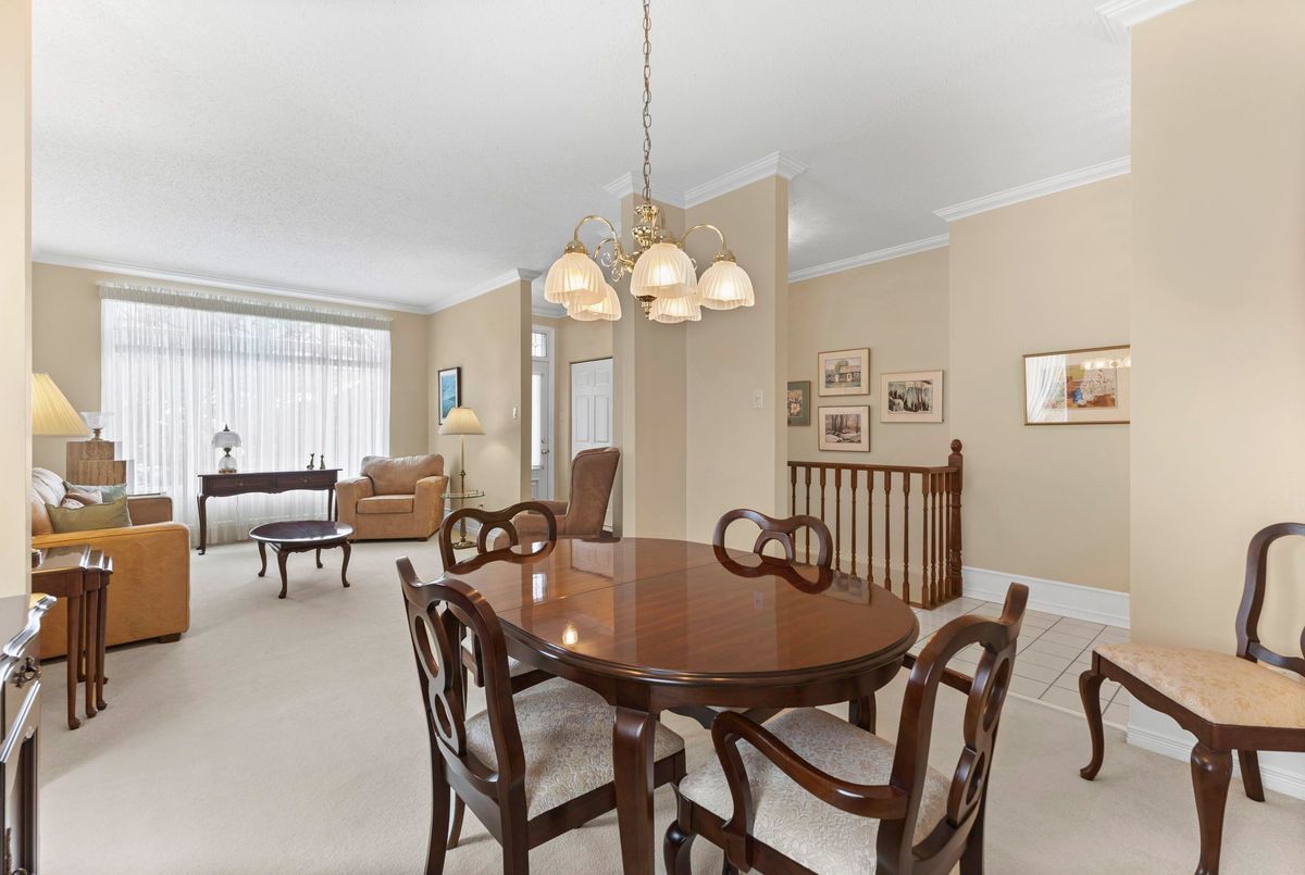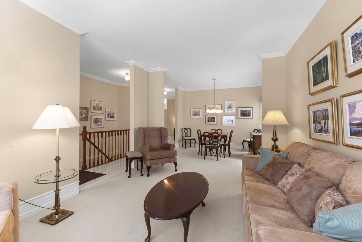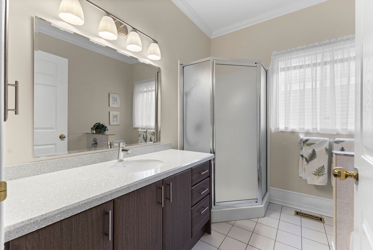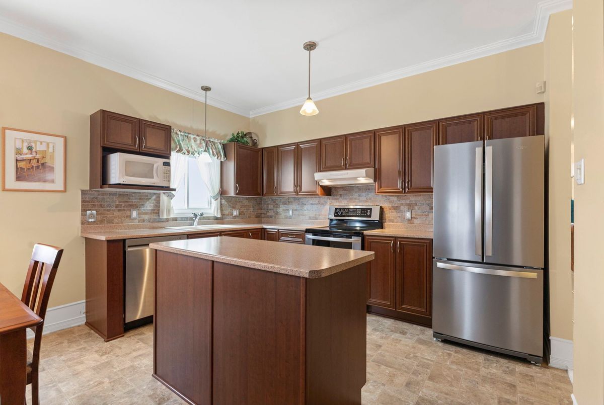 Tucked away on a quiet crescent in the highly sought-after community of Chapel Hill, this very lightly lived-in bungalow offers a rare combination of comfort, privacy, and turnkey living. The crescent itself is surrounded by mature wooded space, creating a peaceful setting with minimal through traffic and a strong sense of privacy throughout the street. Proudly owned and meticulously maintained by the original owners, the home is exceptionally clean and move-in ready. The main floor features 9-foot ceilings throughout, abundant natural light, and large windows that create a bright, welcoming atmosphere. The kitchen is both functional and well appointed with quality cabinetry, an extended pantry, and a convenient eat-in area. The family room showcases hardwood flooring, a cozy gas fireplace, and large patio doors that lead to a fiberglass deck, perfect for enjoying the outdoors. A well-placed, well-lit dining room and a sun-filled living room with a large window offer comfortable spaces for entertaining or relaxing, while the inviting foyer includes a built-in closet. Two bedrooms and two full bathrooms complete the main level, along with access to an oversized single-car garage. The lower level is impressively bright thanks to larger windows and offers three versatile flex spaces, including a rec room, TV room, and an additional recreation area, along with a furnace room providing extra storage and a separate full bathroom.A thoughtfully designed and beautifully maintained bungalow in an exceptional Chapel Hill location.
