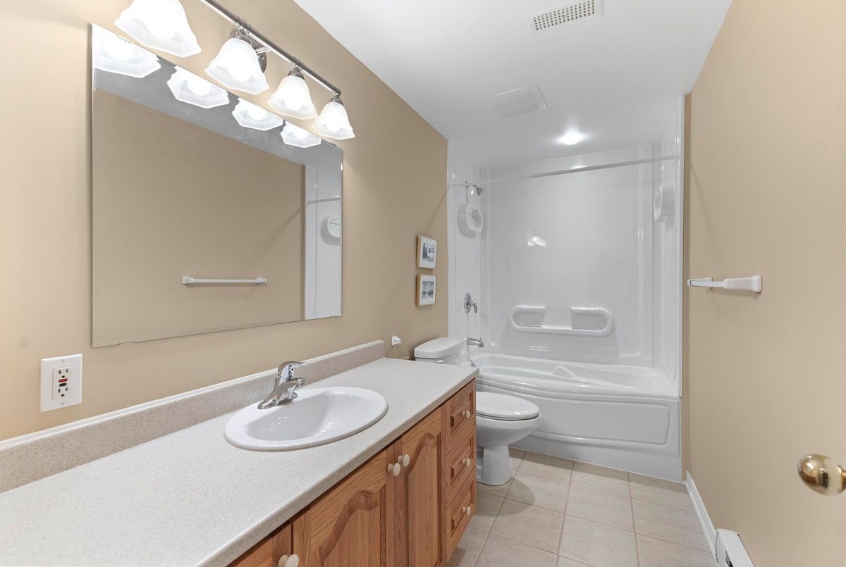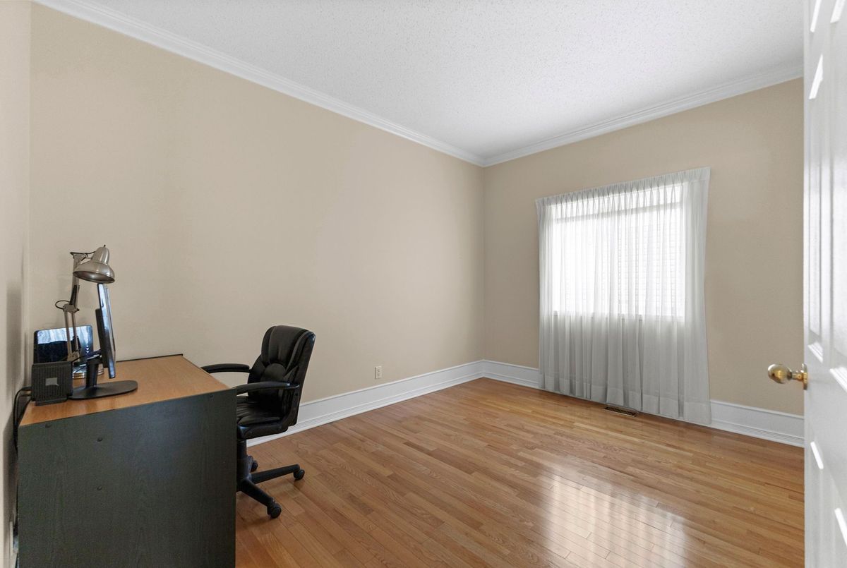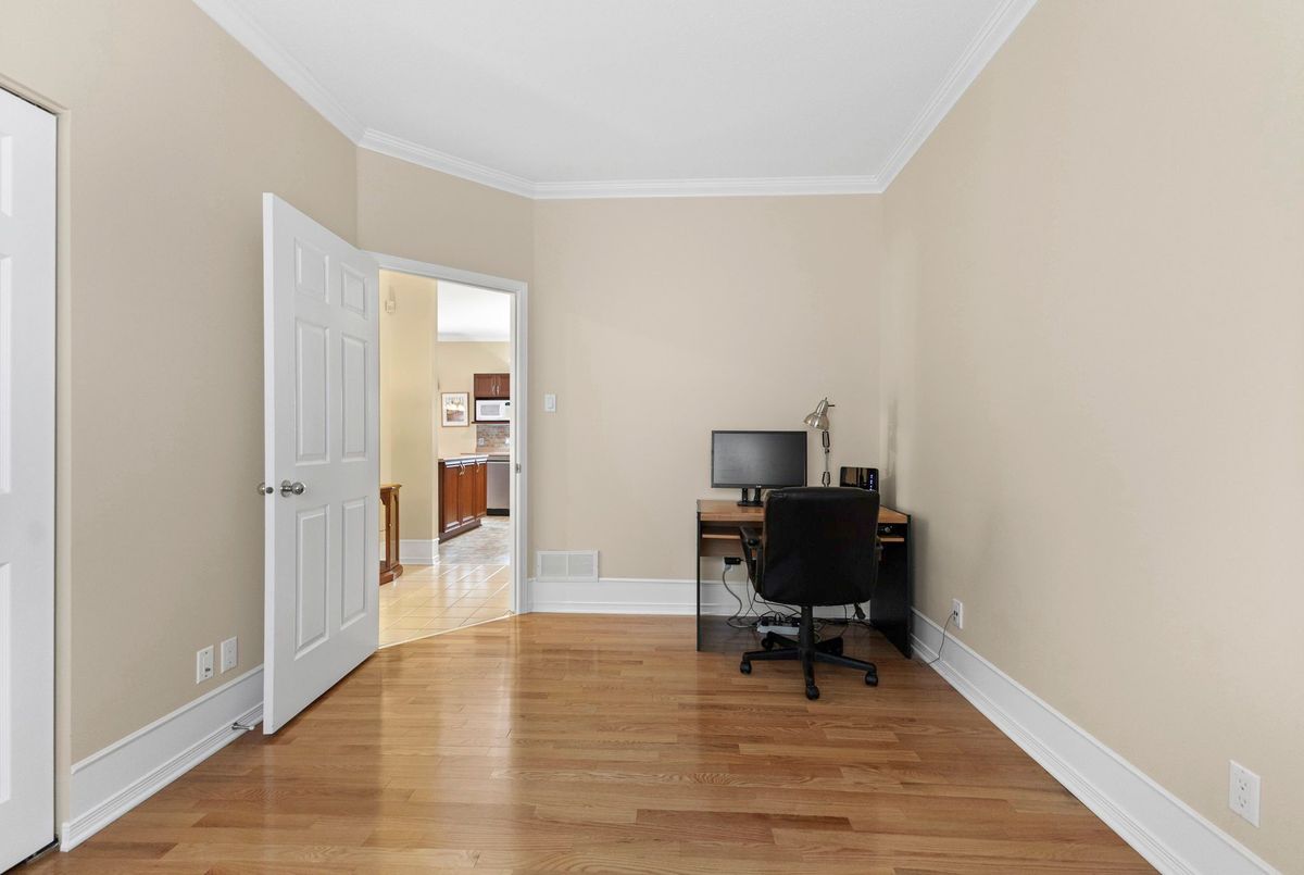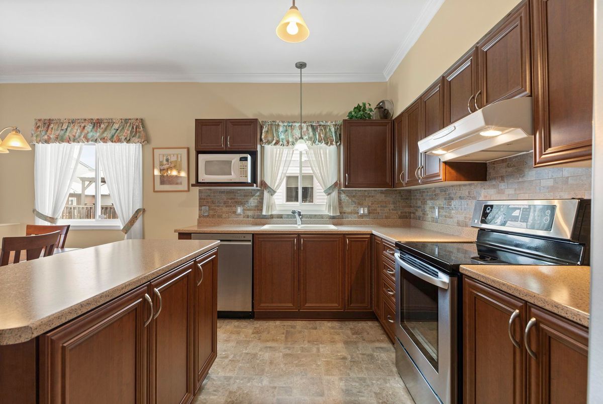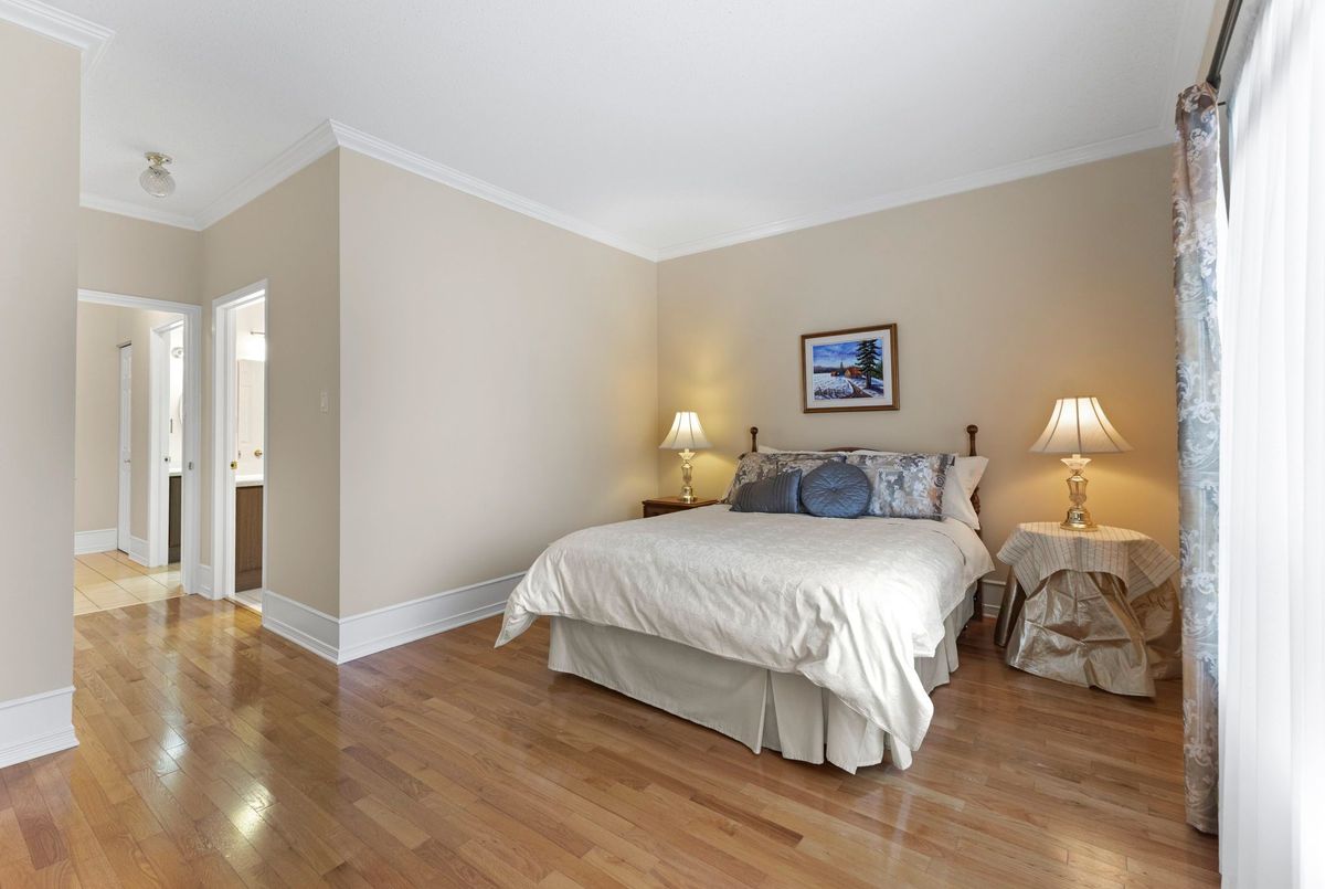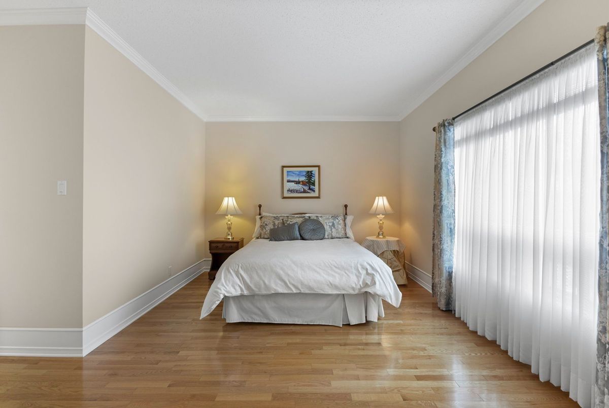 Tucked away on a quiet crescent in the highly sought-after community of Chapel Hill, this very lightly lived-in bungalow offers a rare combination of comfort, privacy, and turnkey living. The crescent itself is surrounded by mature wooded space, creating a peaceful setting with minimal through traffic and a strong sense of privacy throughout the street. Proudly owned and meticulously maintained by the original owners, the home is exceptionally clean and move-in ready. The main floor features 9-foot ceilings throughout, abundant natural light, and large windows that create a bright, welcoming atmosphere. The kitchen is both functional and well appointed with quality cabinetry, an extended pantry, and a convenient eat-in area. The family room showcases hardwood flooring, a cozy gas fireplace, and large patio doors that lead to a fiberglass deck, perfect for enjoying the outdoors. A well-placed, well-lit dining room and a sun-filled living room with a large window offer comfortable spaces for entertaining or relaxing, while the inviting foyer includes a built-in closet. Two bedrooms and two full bathrooms complete the main level, along with access to an oversized single-car garage. The lower level is impressively bright thanks to larger windows and offers three versatile flex spaces, including a rec room, TV room, and an additional recreation area, along with a furnace room providing extra storage and a separate full bathroom.A thoughtfully designed and beautifully maintained bungalow in an exceptional Chapel Hill location.