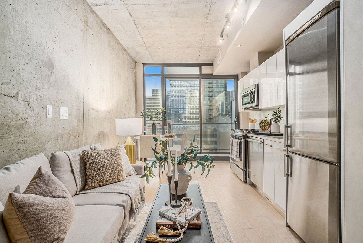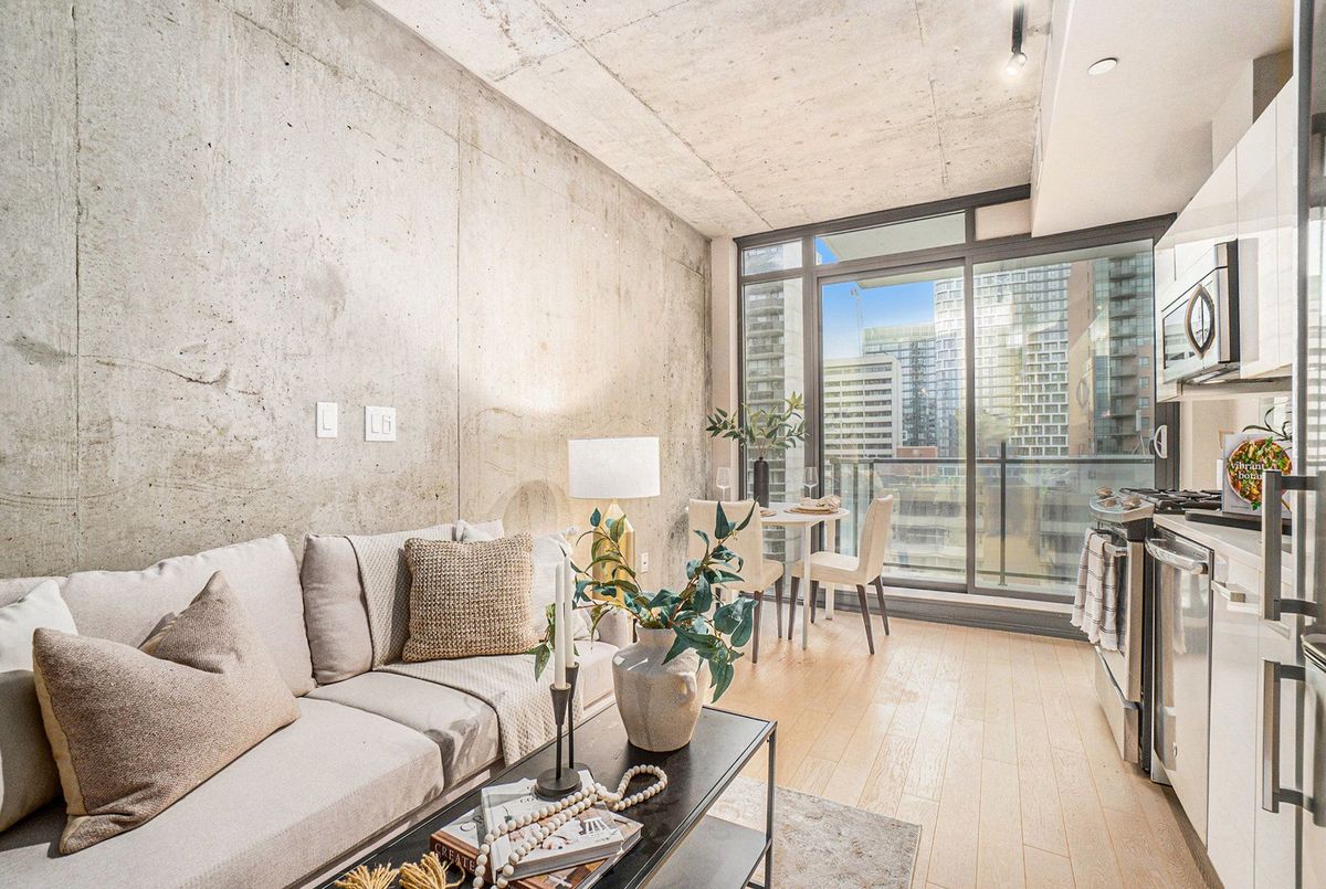Welcome to Gotham, one of Ottawa's most striking and contemporary condominiums, designed by Lamb Development Corporation. This sophisticated studio suite combines sleek modern finishes with an unbeatable downtown location - perfect for professionals, investors, or anyone seeking a vibrant urban lifestyle. The unit offers a bright open-concept layout with floor-to-ceiling windows, hardwood flooring, and 9ft exposed concrete ceilings that create a modern, loft-inspired aesthetic. Step outside to your private balcony, perfect for relaxing with city views. Residents of Gotham enjoy premium amenities, including 24-hour concierge service, a stylish party room with full kitchen and outdoor terrace, BBQ area, and bike storage. Located in the heart of Centretown, Gotham places you steps from Lyon LRT Station, Parliament Hill, LeBreton Flats, and the Rideau Canal. Enjoy Ottawa's best cafés, restaurants, and shops within walking distance, along with excellent walk, bike, and transit scores. This well-managed building blends architectural style with urban convenience - offering the perfect balance between downtown energy and private retreat. Whether as a first home or investment, this studio delivers modern design, lasting value, and an unbeatable location in the heart of Ottawa. *426sqft + 43 sqft balcony