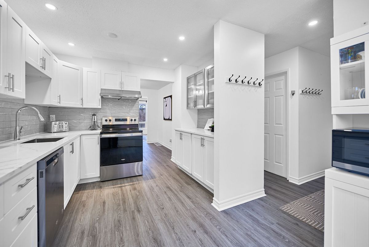 Affordable and priced to sell! Stunning and Rarely Offered NEWLY RENOVATED condo townhouse located in Windsor Park Village, set in a quiet yet central location just off Uplands Drive and Hunt Club Road. Freshly Painted throughout, Excellent privacy with NO BACK neighbours. Step inside to discover a thoughtfully designed layout with carpet-free living on both the main and second levels. The open and welcoming foyer leads to a hallway featuring a built-in floating console, which can be used as a home office or workspace if needed. Continue into the spacious and sun-filled great room, enhanced by large windows, pot lights, and stylish light fixtures, creating an ideal space for both relaxing and entertaining. The adjacent dining area provides a perfect setting for family meals and gatherings. The heart of the home is the chef-inspired kitchen, complete with quartz countertops, elegant white cabinetry, a subway tile backsplash, high-end appliances, and a cozy breakfast area overlooking the front yard. An open connection to the dining room further enhances the home's functionality and flow. The second level offers three well-sized bedrooms and a newly updated, stylish four-piece bathroom featuring double sinks and a spa-like glass shower. Needing additional living space? The Fully Finished lower level provides a comfortable solution with pot lights, new insulation, new drywall, and plush carpeting, ideal for family entertaining. This level also includes extra storage space and a laundry area. Enjoy outdoor living in the fully fenced private backyard with patio stones, perfect for relaxing or hosting guests. Conveniently located within walking distance to multiple parks and tennis courts. Central Location: easy access to the Uplands LRT station, Airport Parkway with a quick 15-minute commute to downtown, South Keys shopping just 5-minute away, and a wide selection of restaurants and entertainment options. Excellent opportunity for first-time home buyers or investors.