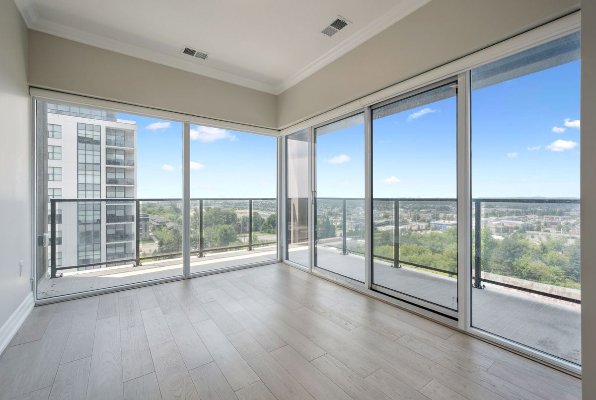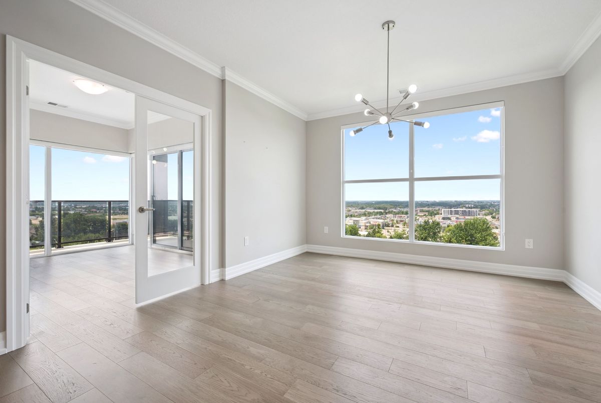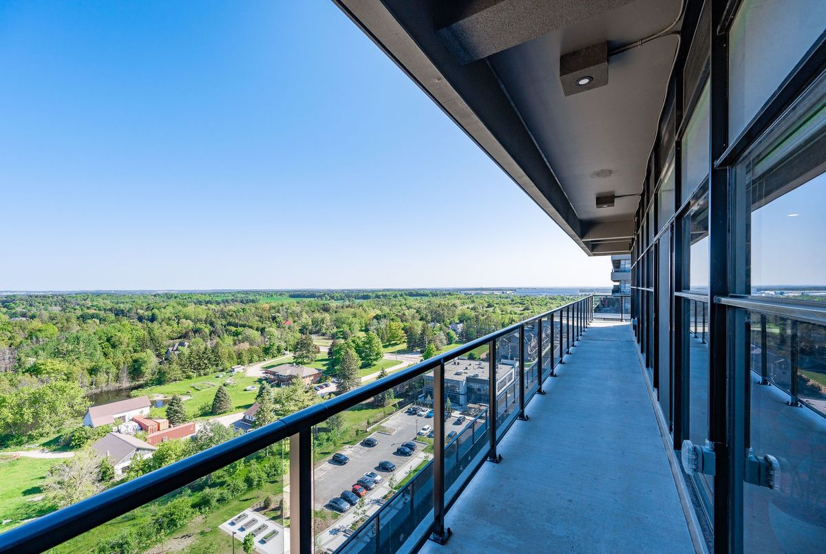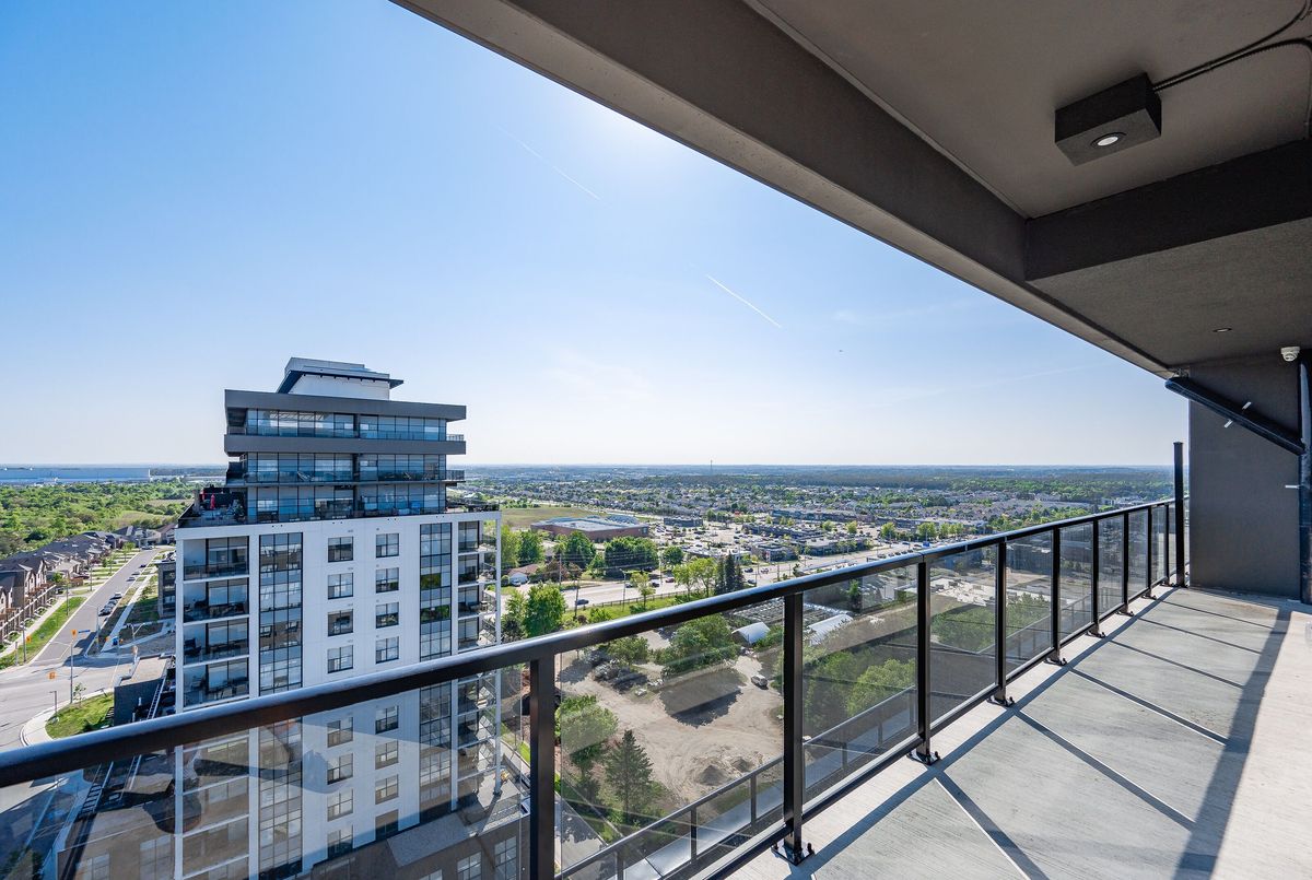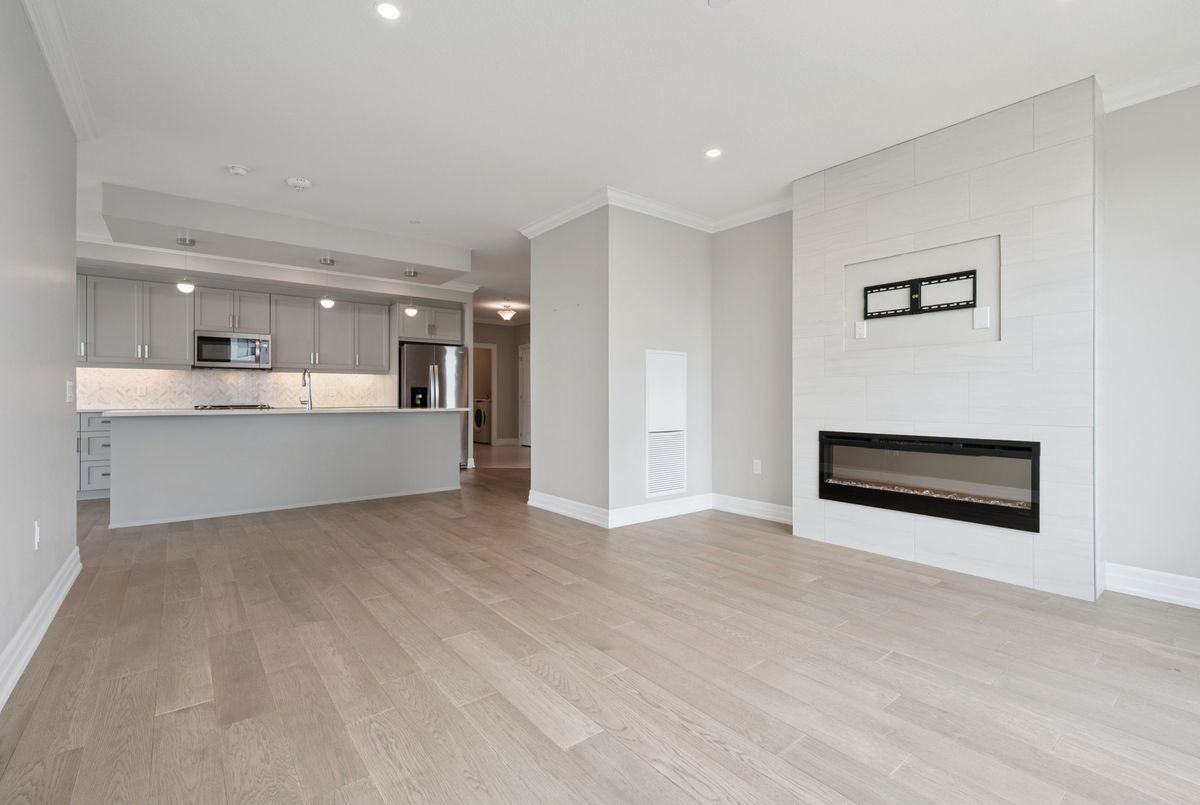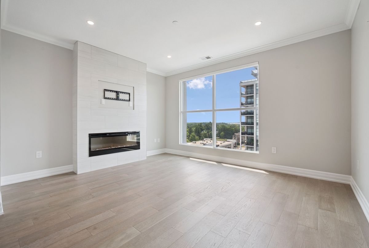 This expansive 1,650 square foot corner suite boasts one of the top layouts, featuring 2 bedrooms, 2 bathrooms, a spacious den, plus a 133 square foot wrap-around balcony. Built in 2022, this upscale suite blends functionality with high-end design, offering an open-concept floor plan, tall ceilings, abundant natural light, and BREATHTAKING NORTHWEST PANORAMIC VIEWS. The grand Primary easily accommodates a king-size bed and includes a large walk-in closet. The upgraded ensuite offers quartz counters, marble backsplash, heated floors and a glass walk-in shower. The open concept kitchen showcases a grand quartz island breakfast bar with stylish pendants, marble backsplash, stainless steel appliances, and ample storage space. Flowing seamlessly into the bright living and dining areas, you'll feel at home with an upgraded tiled fireplace, elegant cove detailing, and massive windows that create a warm, welcoming environment. The open den/sunroom is framed by upgraded glass French doors and window surround, providing an inspiring workspace or breakfast nook with stunning views. The second bedroom is generously sized, and the main 4-pc bathroom features quartz countertops and a tub. Additional highlights include a spacious in-suite laundry room, underground parking, and a large storage locker. Residents of this exclusive building enjoy premium amenities, including a modern gym, a luxurious Sky Lounge with a kitchen, a billiards room, an outdoor terrace, a golf simulation room with a bar, a fully equipped guest suite, and ample visitor parking. Enjoy a lifestyle of luxury, convenience, and sophistication, with easy access to the 401 and a wealth of dining, shopping, and entertainment options just steps away! With Tower 3 starting in the mid-900K price range, don't miss this rare opportunity. Need more than one parking spot? There are *ADDITIONAL UNDERGROUND PARKING SPOTS FOR SALE* through the builder!