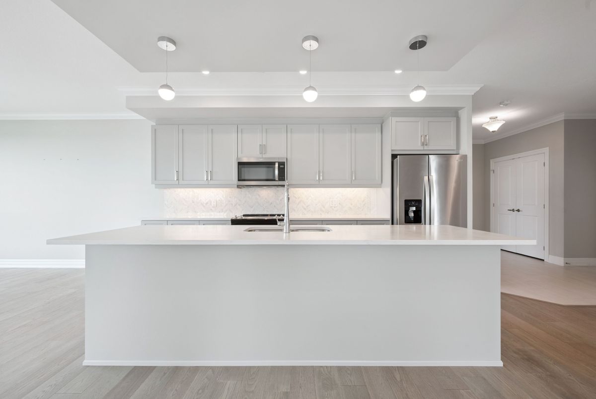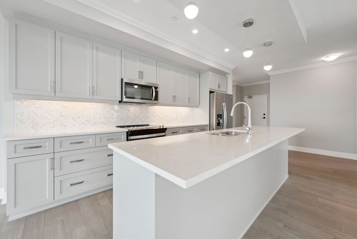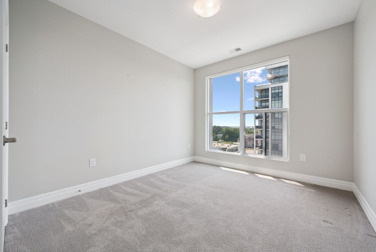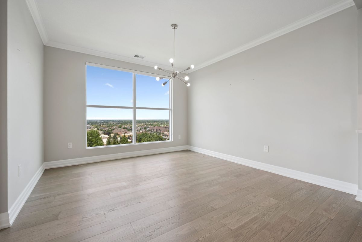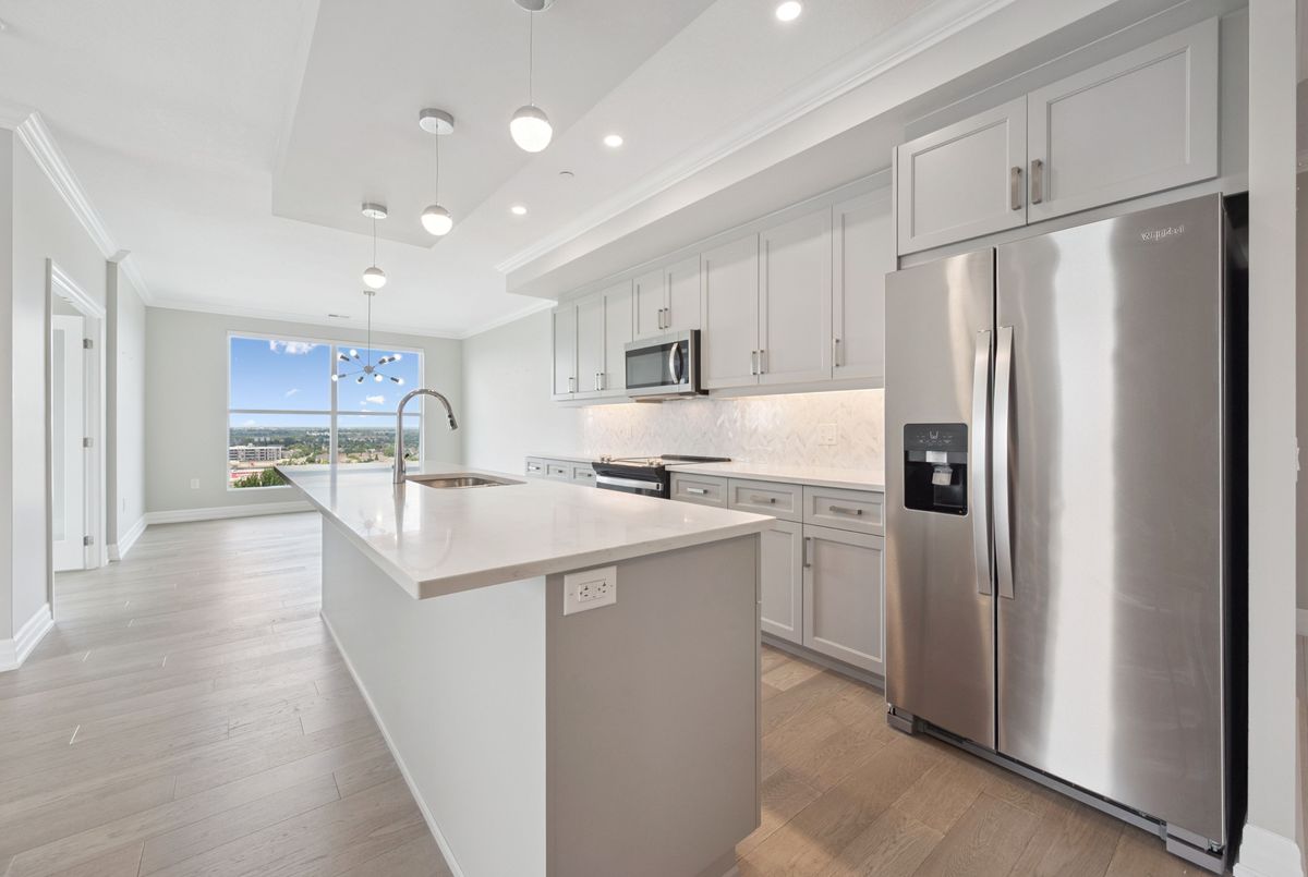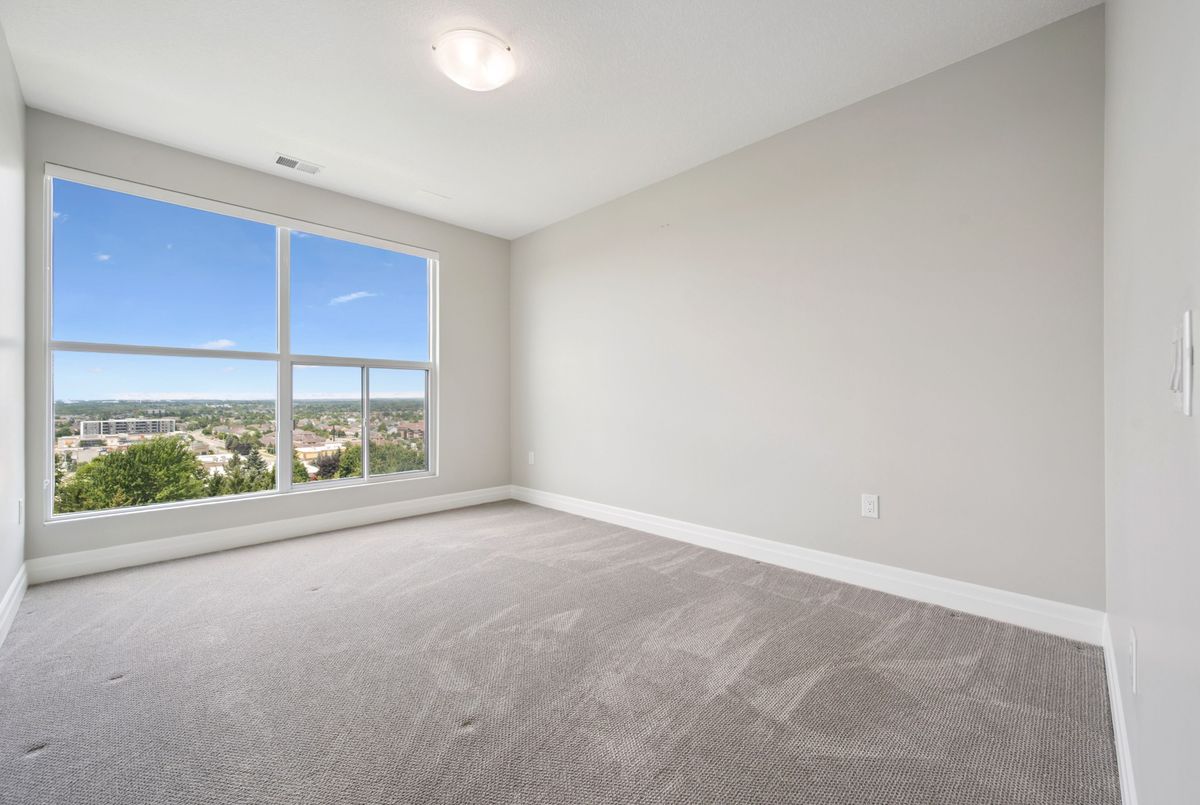 This expansive 1,650 square foot corner suite boasts one of the top layouts, featuring 2 bedrooms, 2 bathrooms, a spacious den, plus a 133 square foot wrap-around balcony. Built in 2022, this upscale suite blends functionality with high-end design, offering an open-concept floor plan, tall ceilings, abundant natural light, and BREATHTAKING NORTHWEST PANORAMIC VIEWS. The grand Primary easily accommodates a king-size bed and includes a large walk-in closet. The upgraded ensuite offers quartz counters, marble backsplash, heated floors and a glass walk-in shower. The open concept kitchen showcases a grand quartz island breakfast bar with stylish pendants, marble backsplash, stainless steel appliances, and ample storage space. Flowing seamlessly into the bright living and dining areas, you'll feel at home with an upgraded tiled fireplace, elegant cove detailing, and massive windows that create a warm, welcoming environment. The open den/sunroom is framed by upgraded glass French doors and window surround, providing an inspiring workspace or breakfast nook with stunning views. The second bedroom is generously sized, and the main 4-pc bathroom features quartz countertops and a tub. Additional highlights include a spacious in-suite laundry room, underground parking, and a large storage locker. Residents of this exclusive building enjoy premium amenities, including a modern gym, a luxurious Sky Lounge with a kitchen, a billiards room, an outdoor terrace, a golf simulation room with a bar, a fully equipped guest suite, and ample visitor parking. Enjoy a lifestyle of luxury, convenience, and sophistication, with easy access to the 401 and a wealth of dining, shopping, and entertainment options just steps away! With Tower 3 starting in the mid-900K price range, don't miss this rare opportunity. Need more than one parking spot? There are *ADDITIONAL UNDERGROUND PARKING SPOTS FOR SALE* through the builder!